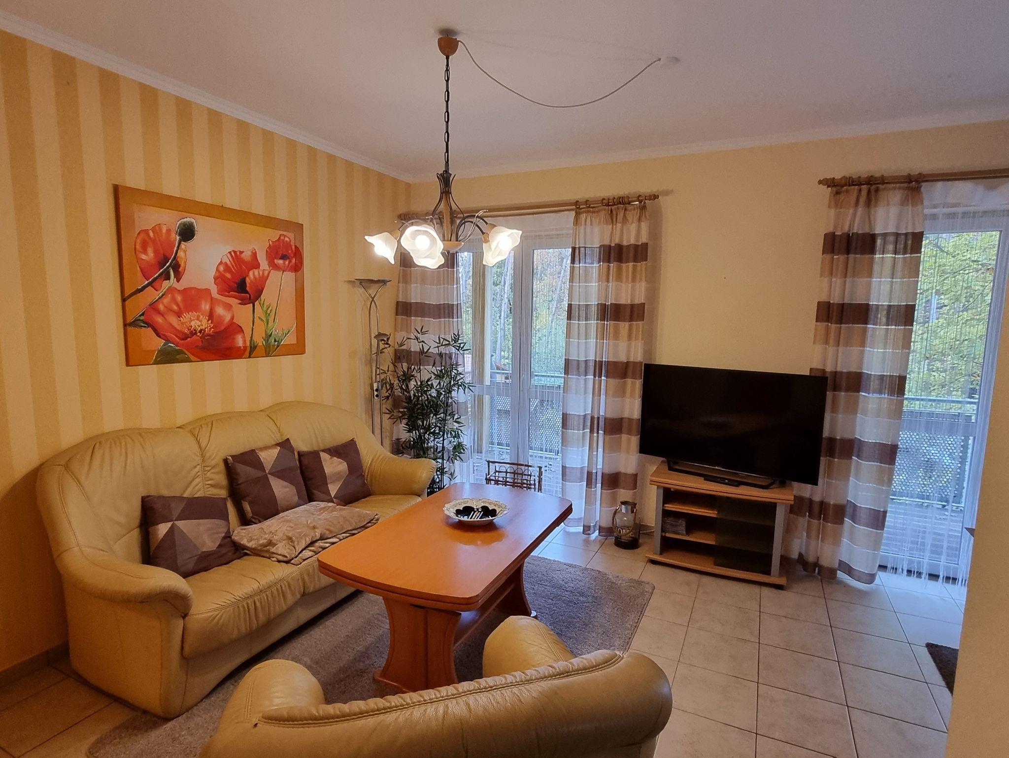 2-Zimmer Apartment in Zempin nur 150m vom schönen Sandstrand entfernt. Wir vermieten ganzjährig für 2 Personen im ausgesprochen ruhigen Seebad Zempin, auf der Sonneninsel Usedom an der Ostsee, mit 60m² Wohnfläche und großem überdachten Balkon. Aus allen 2 Zimmern haben sie einen herrlichen Blick in den Dünenwald. Zur Wohnung gehört ein PKW-Stellpatz. Auf dem Grundstück befindet sich ein Gemeinschaftsgrillplatz und ein gemeinschaftlicher Waschrraum mit Waschmaschine und Trockner (gegen Gebühr). Es handelt sich um eine Nichtraucherwohnung.
