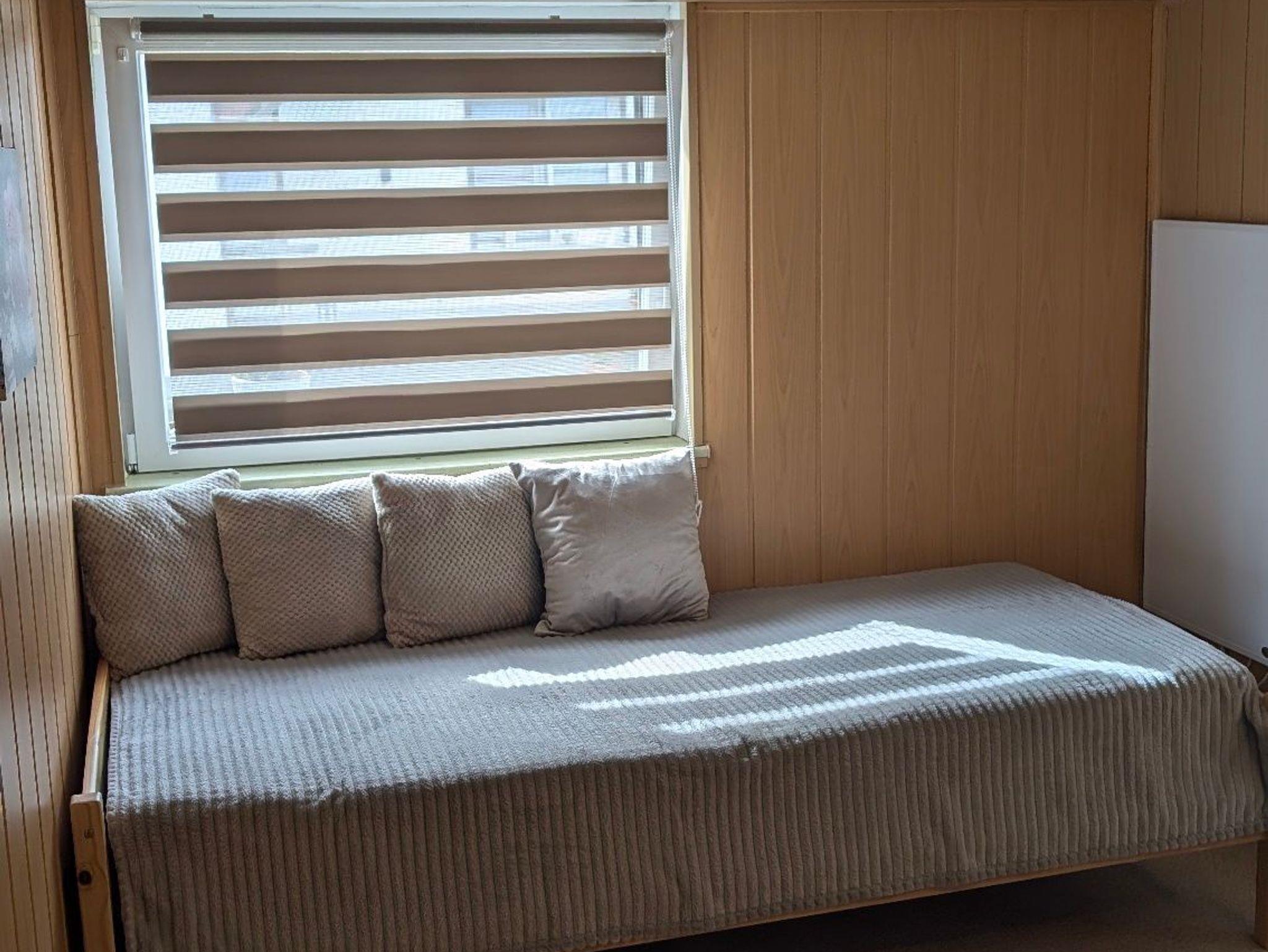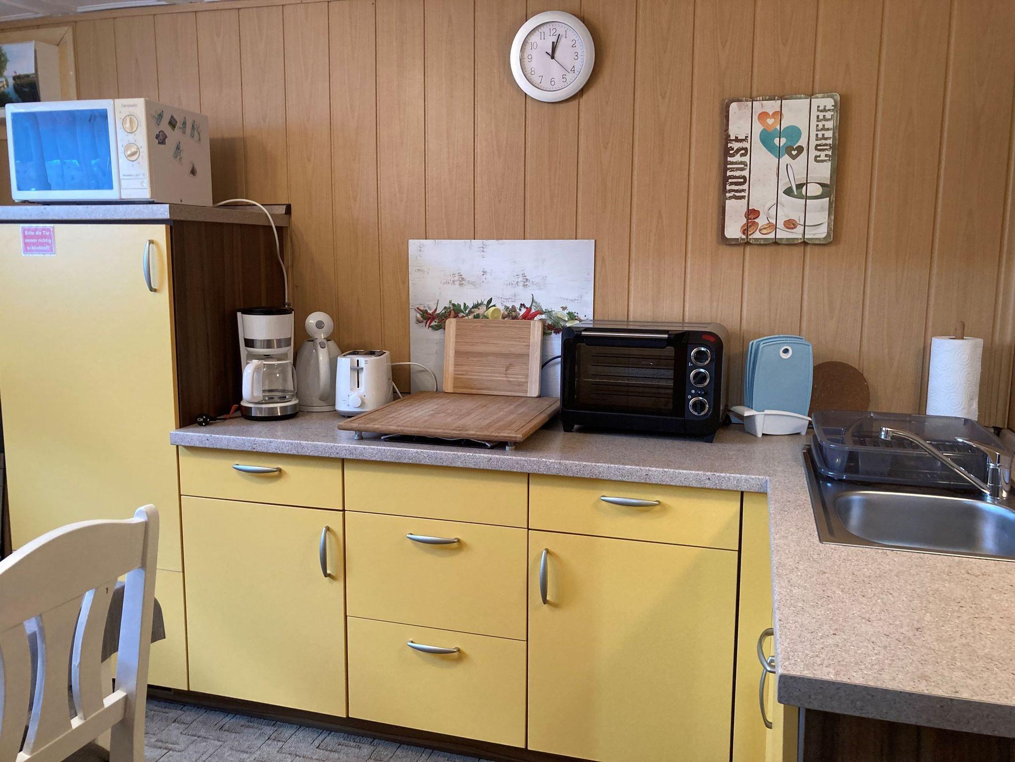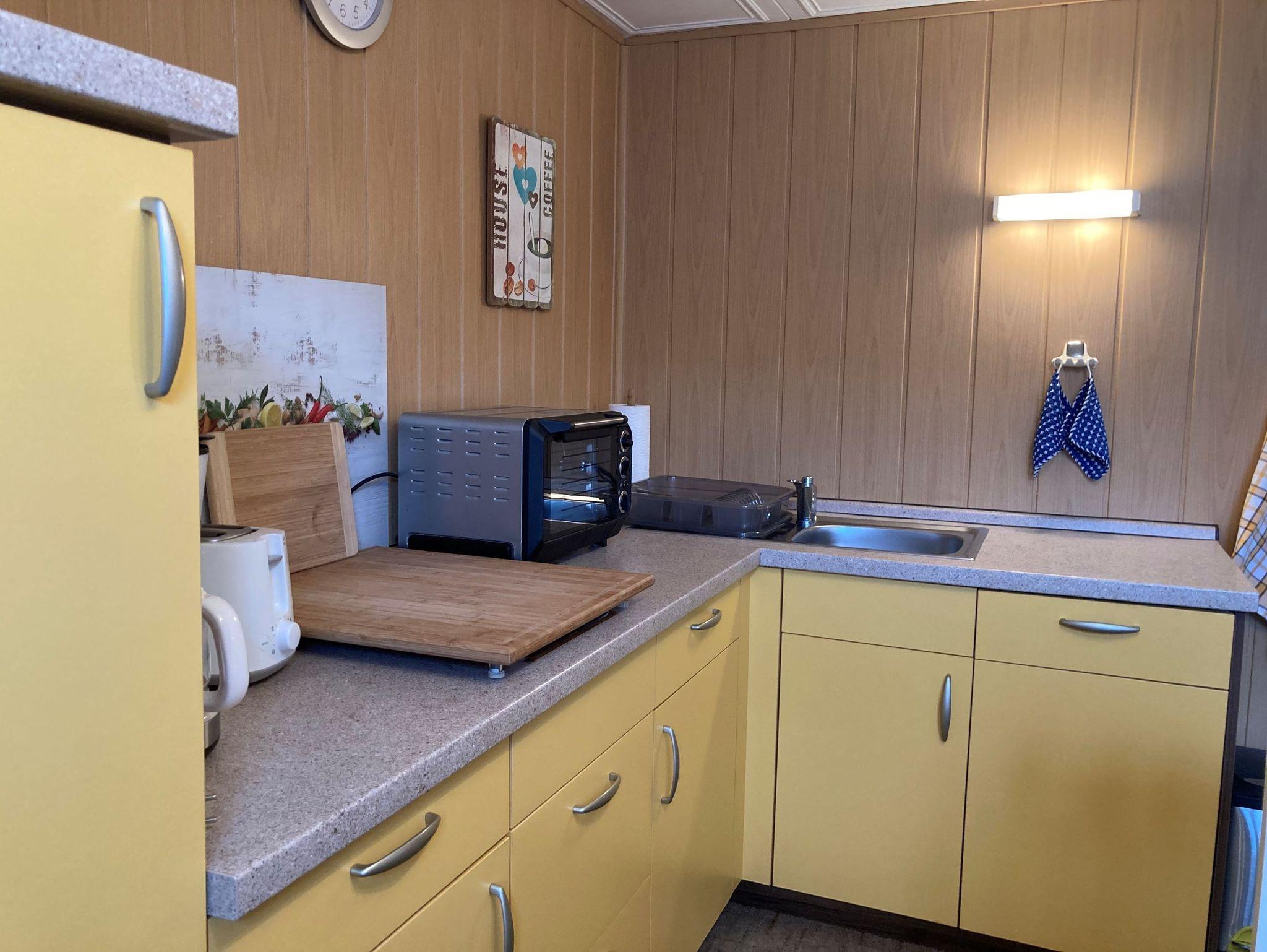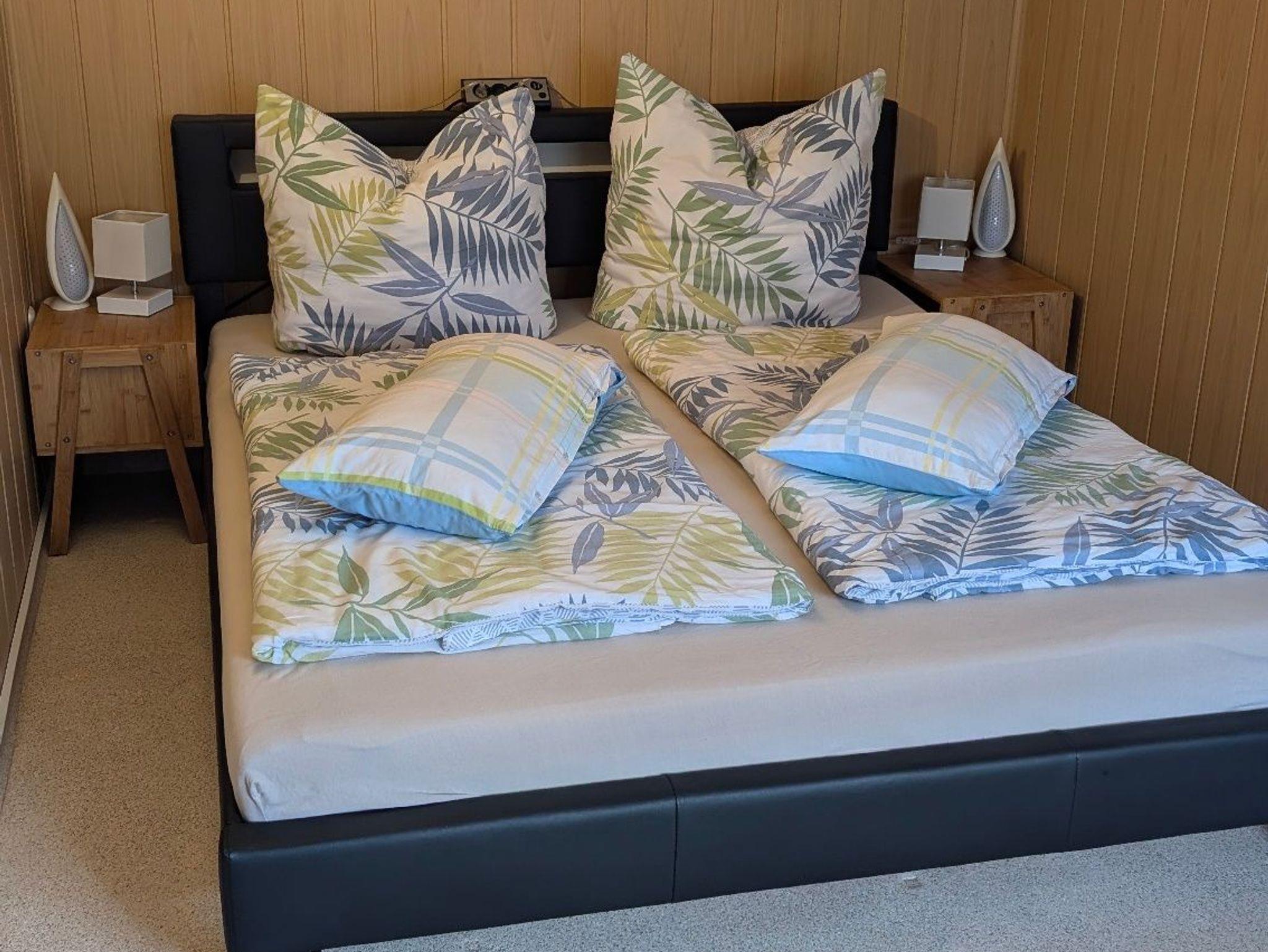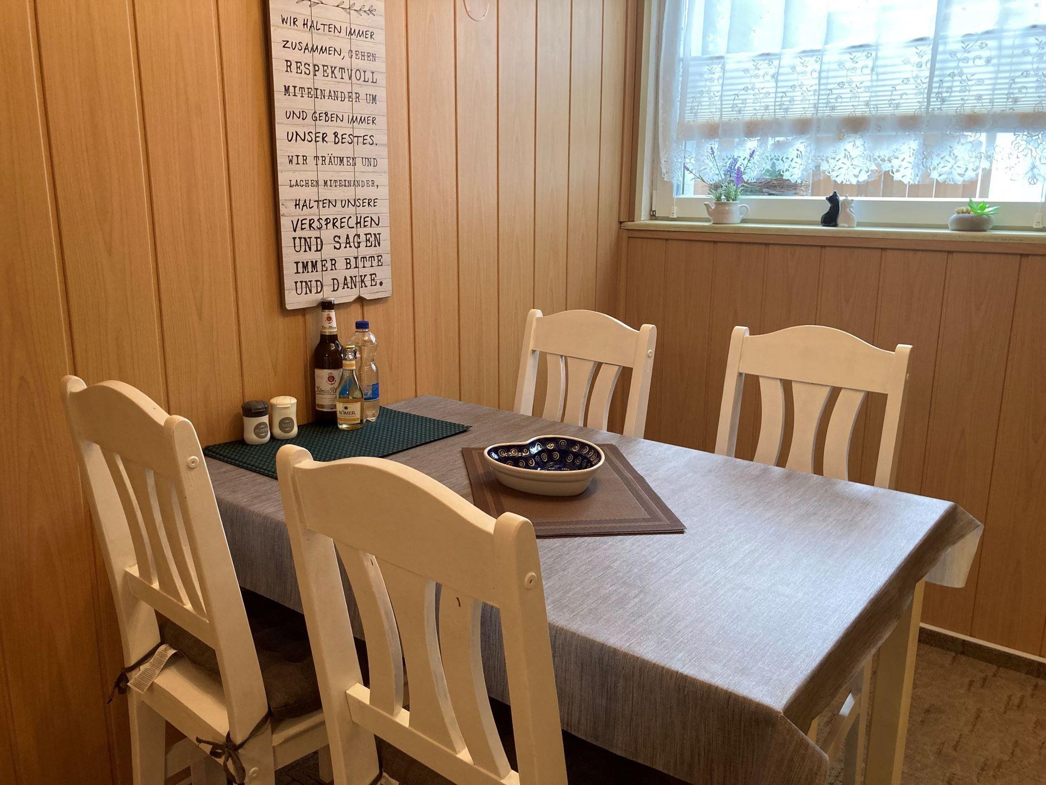 Die Ferienwohnung besteht aus einem Wohnzimmer mit Smart TV, Internetradio, einer gemütliche Couchecke mit Sessel. Das Schlafzimmer ist mit Doppelbett und einer Liege zur Aufbettung für ein Kind (nach Absprache) ausgestattet. Die Deckenhöhe beträgt im Schlafzimmer 2m. Die separate Küche bietet reichlich Platz am Esstisch mit 4 Stühlen. Die Eckküche verfügt über einen Kühlschrank nit Gefrierfach, Spülmaschine, 2 Plattenherd, Minibackofen und Mikrowelle. Eine Kaffeemaschine, Toaster und ein Wasserkocher gehören ebenfalls zur Küchenausstattung.