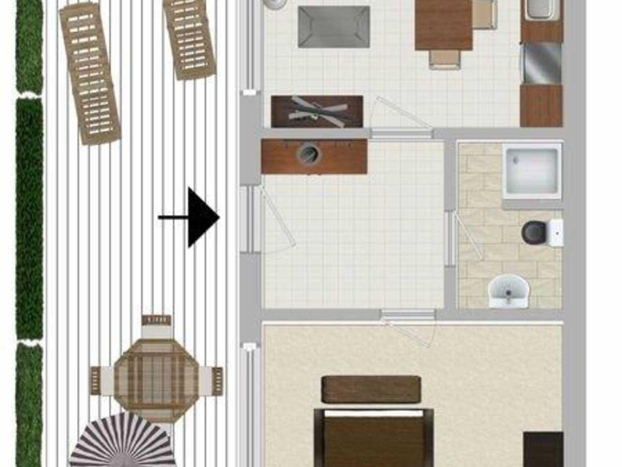 In unserem liebevoll eingerichteten Ferienbungalow, mit eigenem kleinen Grundstück, können Sie unbeschwerte Urlaubstage genießen. Der Wohnbereich ist mit einer gemütlichen Couch, einem Couchtisch und natürlich mit Flachbild TV ausgestattet. Im angrenzenden Essbereich befindet sich der Esstisch mit Stühlen. Die Einbauküche verfügt über einen 4 Plattenherd mit Glaskeramikkochfeld, Spülmaschine, Kühlschrank mit Gefrierfach, einer Spüle und Geschirr. Das Schlafzimmer mit Doppelbett (ca. 1,80m x 2,00,m) und Vinylfussbodenbelag verfügt ebenfalls über einen Flachbild TV und einem großzügigen Kleiderschrank. Alle anderen Räume sind gefliest und als Highlight genießen Sie die Fußbodenheizung im gesamten Bungalow. Die bodengleiche Dusche im Badezimmer bietet weiteren Komfort.