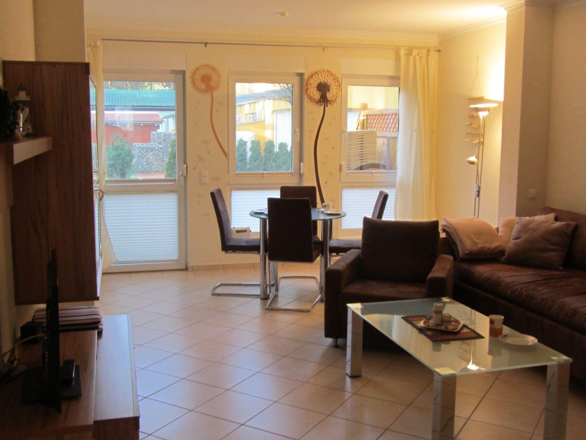 Moderne Erdgeschoßwohnung mit großer Terrasse, eigener Gartenanteil von 44m² und PKW Stellplatz. Die Wohnung ist modern eingerichtet mit Fußbodenheizung, TV, Terrassenmöbel, Einbauküche mit Ceranherd, Backofen, Tiefkühlfach, Gläser, Besteck und Geschirr. Für die kleinen Gäste steht ein Kinderreisebett und ein Hochstuhl kostenfrei zur Verfügung.