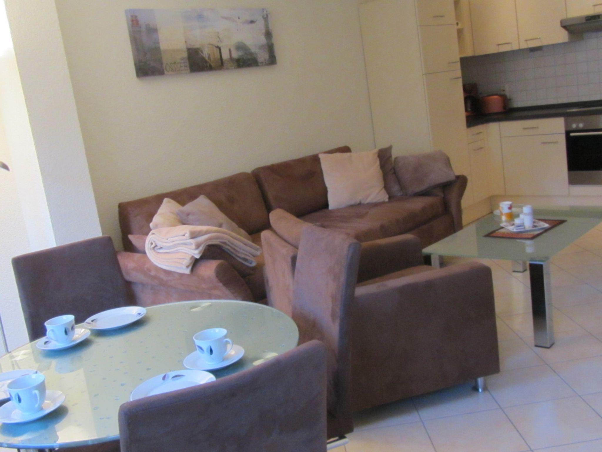 Im Wohnzimmer gibt es ein Schlafsofa für die dritte Person.