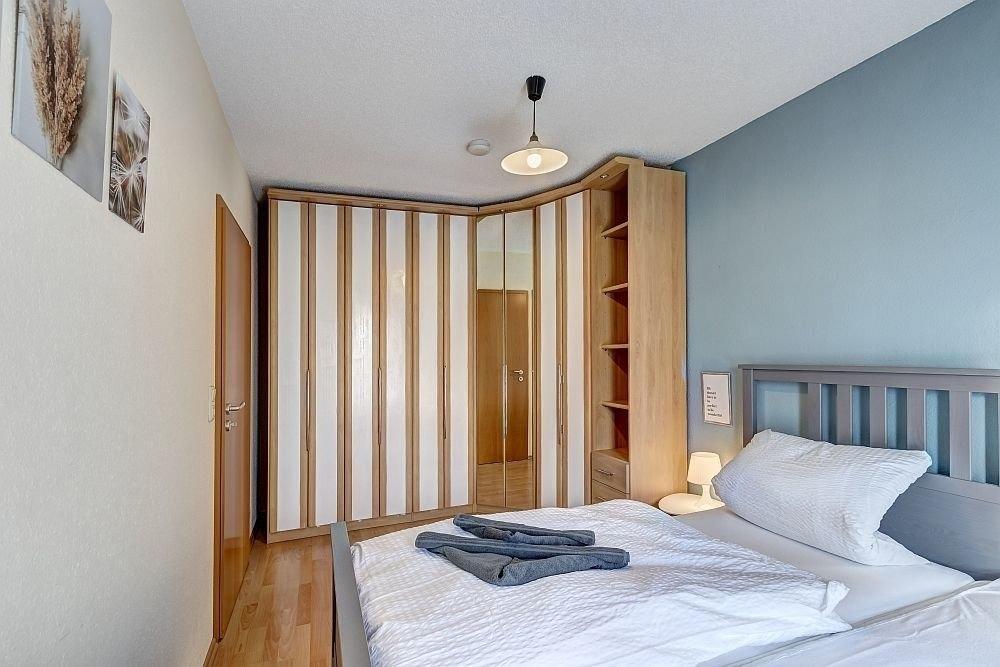 Komfortabel eingerichtet. 58 qm. Abschließbarer separater Fahrradraum. Gratis WLAN, Kinderreisebett/-hochstuhl. Waschmaschine im Bad. Stellplatz direkt am Haus.