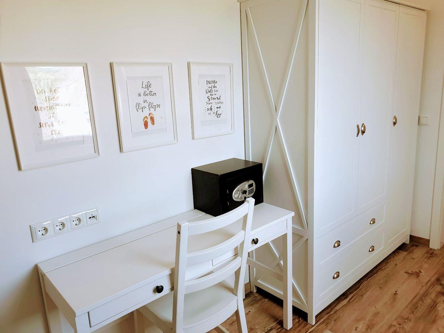 - 1 Schlafzimmer mit einem 180x200 Boxspringbett und Arbeitsplatz mit LAN-Anschluss, TV