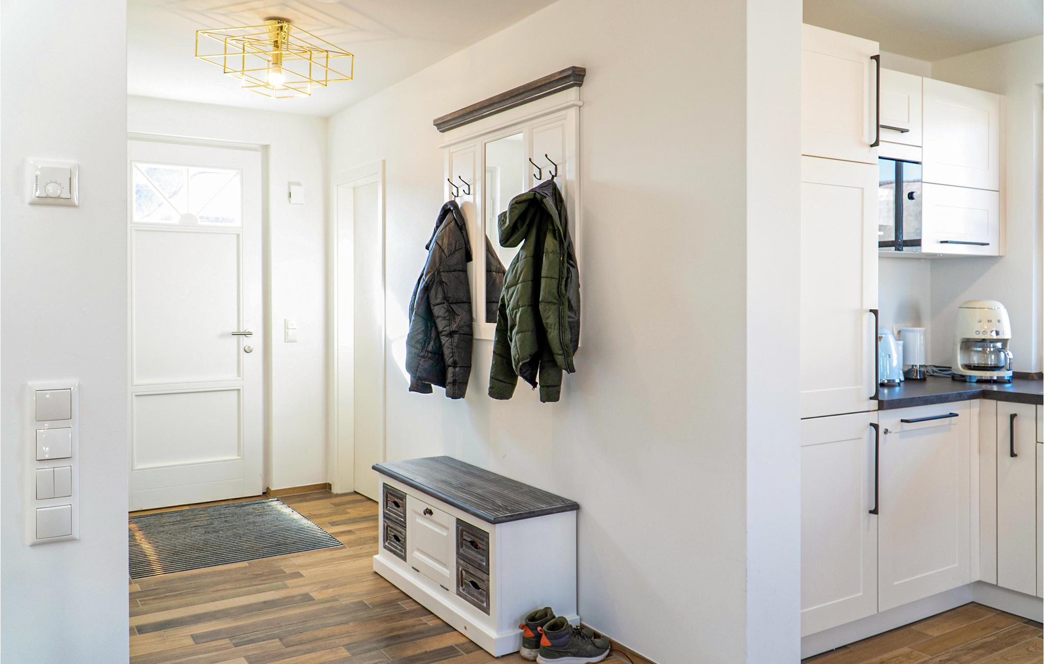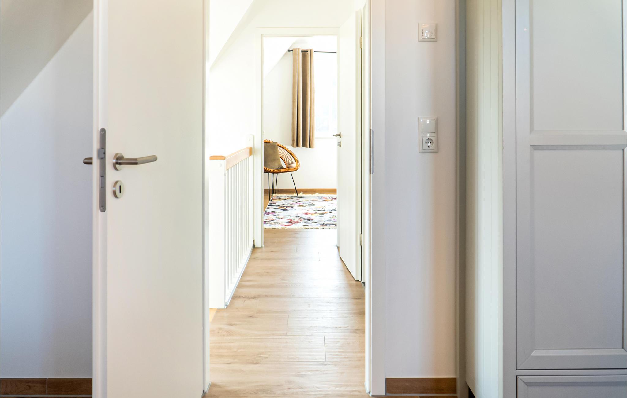 Ihr hochwertig eingerichtetes Ferienhaus liegt in Zierow nahe Wismar und bietet ausreichend Platz für bis zu 6 Personen. Das Badezimmer verfügt über Dusche und Sauna, für Ihren Komfort im urlaub steht eine Waschmaschine zur Verfügung. Der exklusiv und geschmackvoll eingerichtete Wohnraum mit offener Küche ist ein gemütlicher Treffpunkt für die ganze Familie. Hier befinden sich zwei weitere Schlafplätze auf dem Schlafsofa. Im Obergeschoss befinden sich die beiden Schlafräume und das geräumige Duschbad.