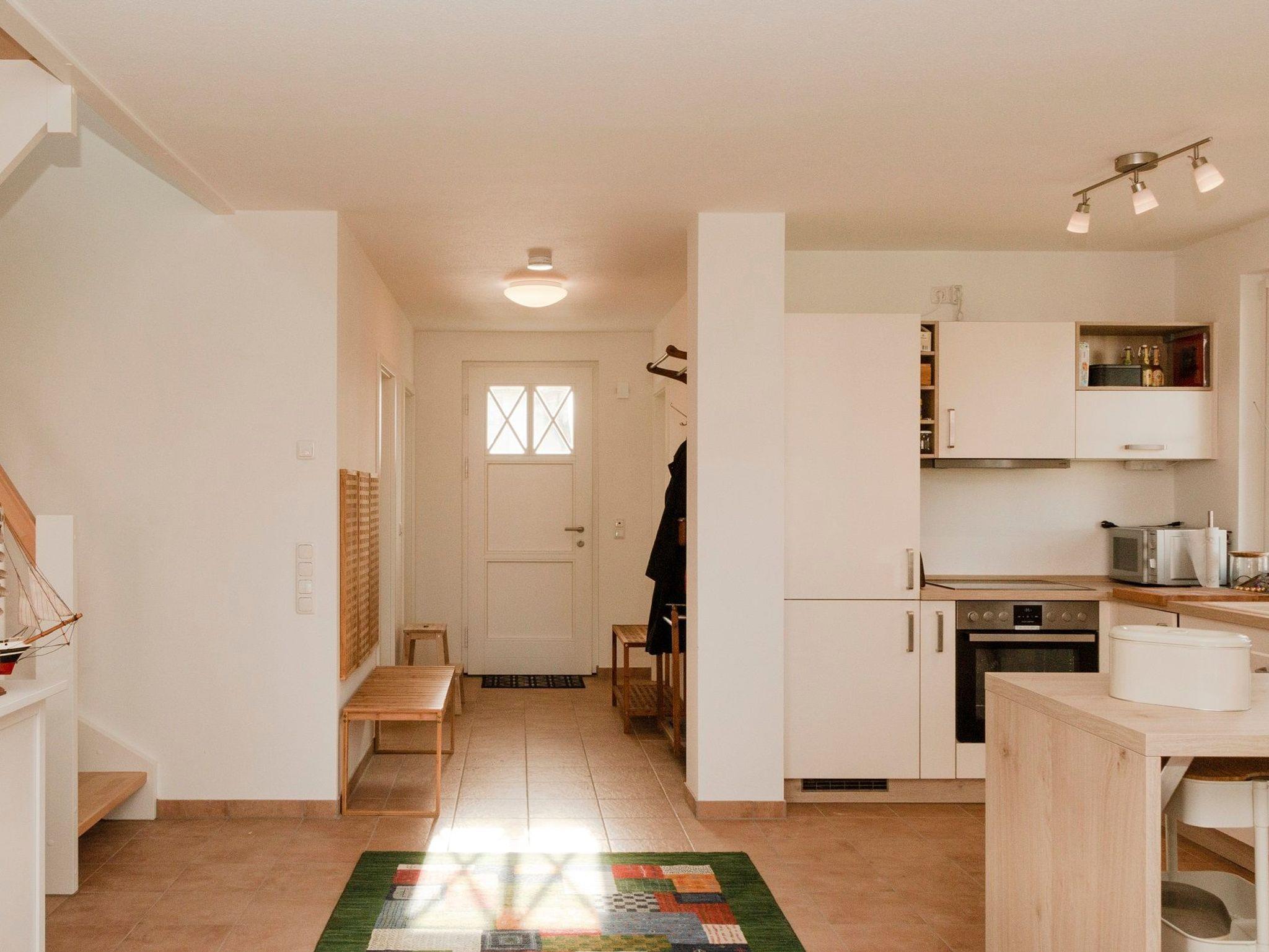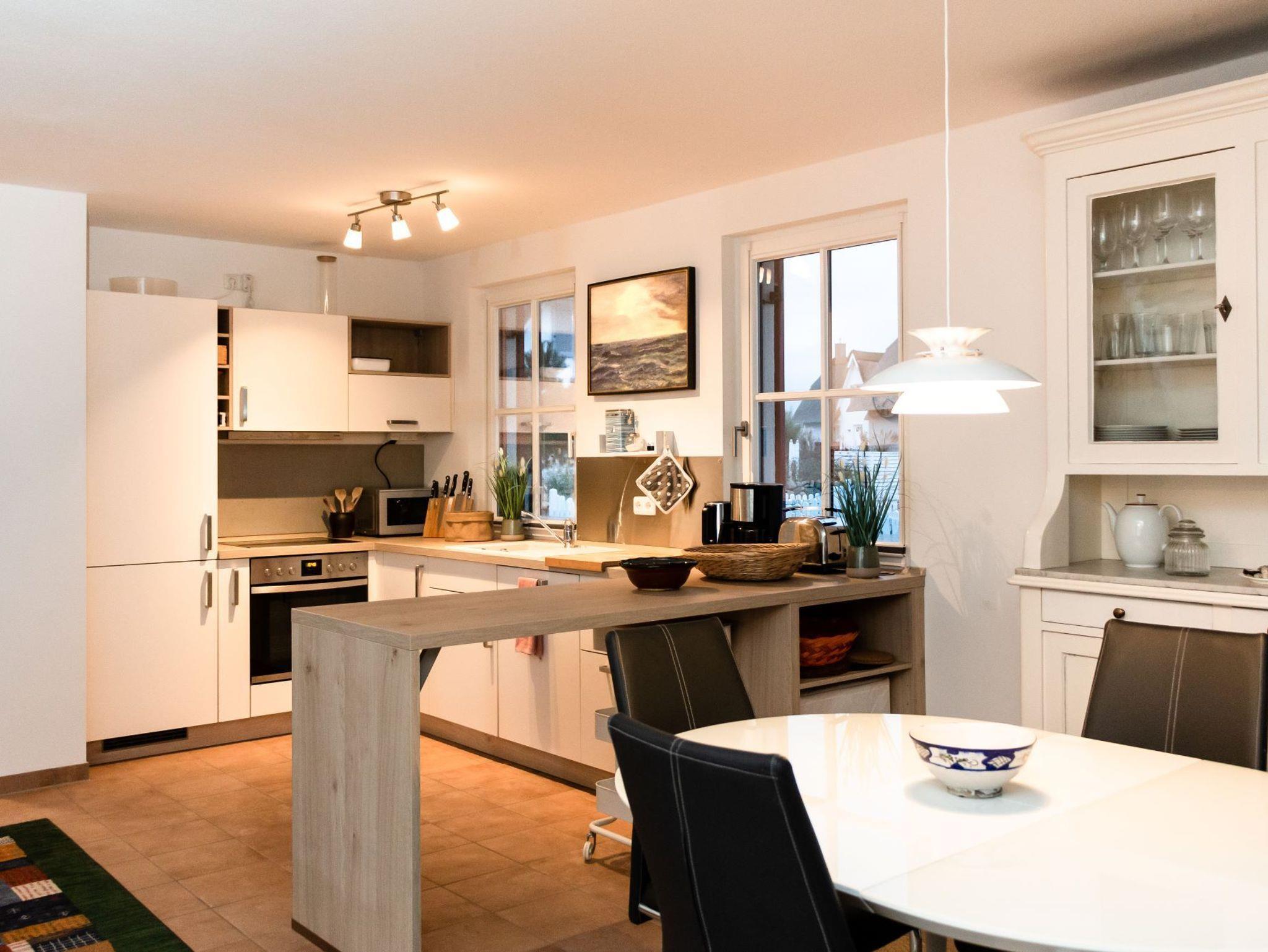 Die moderne, offene Küche ist voll ausgestattet, sodass du alles findest, was du für gemeinsame Kochabende brauchst. Um den Abwasch danach kümmert sich der Geschirrspüler.