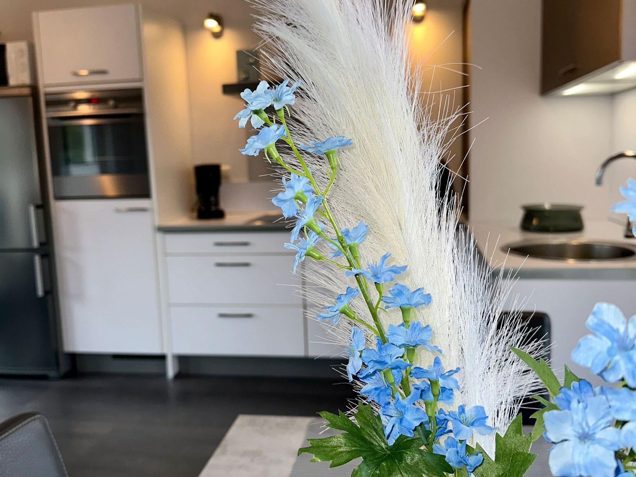 - separate Küche ausgestattet u.a. mit Geschirrspüler, Backofen, Ceranfeld, Kaffeemaschine, Geschirr, Besteck, Gläser, Kühlschrank, Mikrowelle ua.