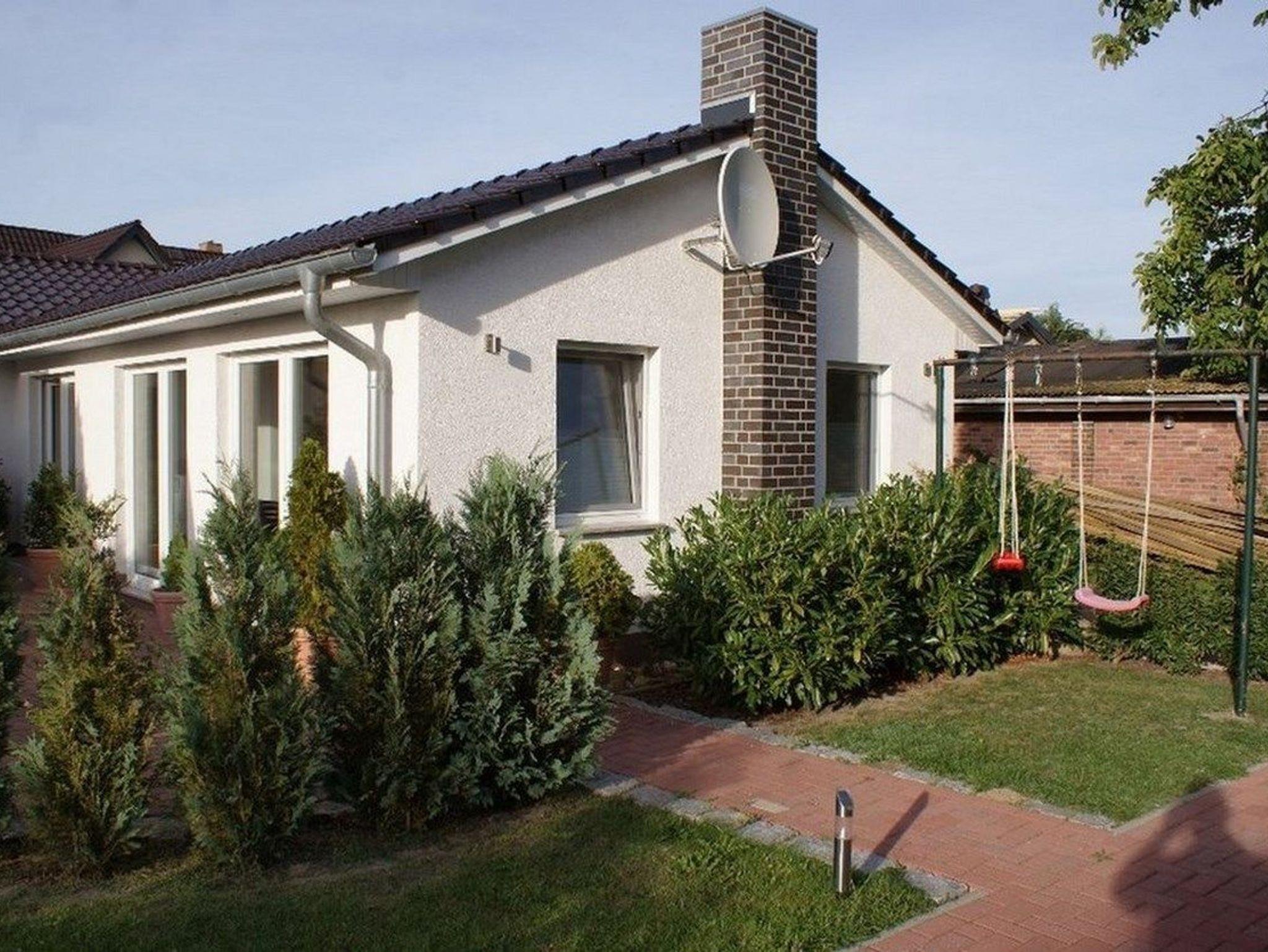 Gemütliches Ferienhaus Schlossblick in Zierow, nur 800 m vom Ostseestrand entfernt, mit großer Terrasse und Spielwiese.