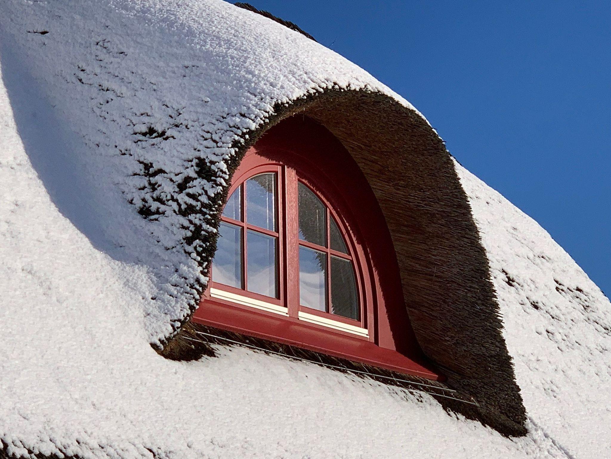 Im Obergeschoss verbringen Sie im Schlafzimmer mit Doppel-Boxspringbett unter dem „atmenden Reetdach“ erholsame Nächte und finden in der kuscheligen Lounge-Koje weitere Ruhe- bzw. Schlaf-Möglichkeiten. Ein großzügiges Vollbad mit Dusche und einer Badewanne mit Blick auf das Reetdachdorf De Poeler Drift komplettiert das Wellness Vergnügen. Die Zimmer bieten durch maßgefertigte Einbaumöbel ausreichend Stauraum für persönliche Dinge und können durch Plissees, Vorhänge und Fensterläden abgedunkelt werden.
