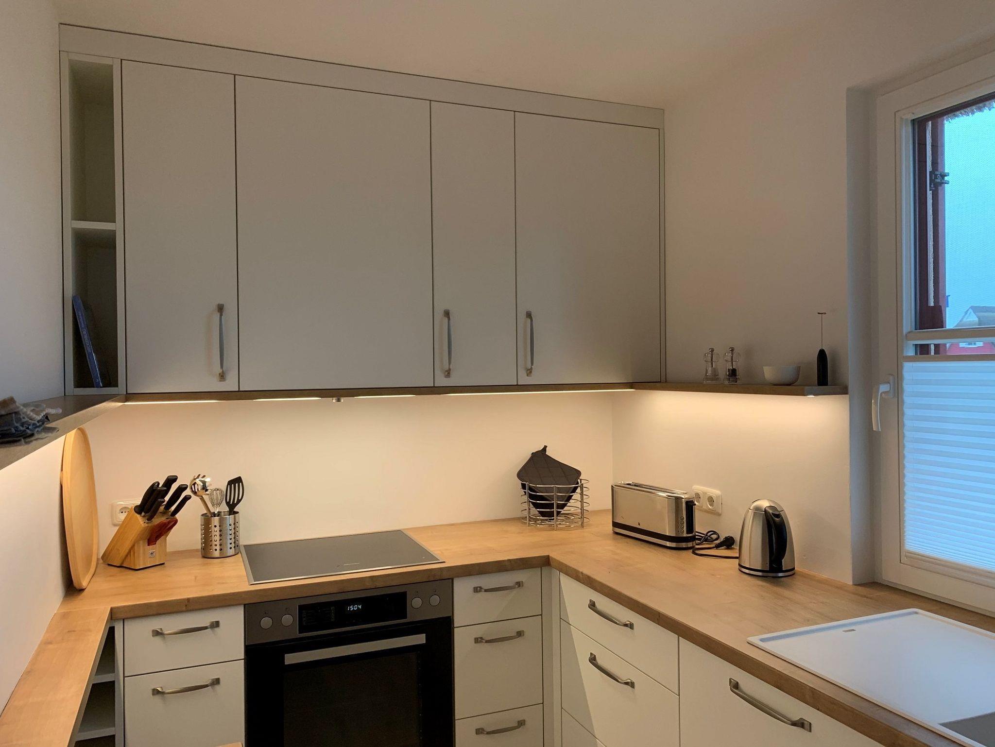 Das Erdgeschoss bietet einen Eingangsbereich mit Garderobe und massiver Sitzbank, einen Essplatz für 4-5 Personen und einen Wohnbereich mit Kaminofen, Bücherecke, TV und Musikanlage. Außerdem finden Sie hier eine separate, voll ausgestattete Küche, einen Hauswirtschaftsraum mit Waschmaschine und eine kleine Sauna mit Wellness-Dusche.