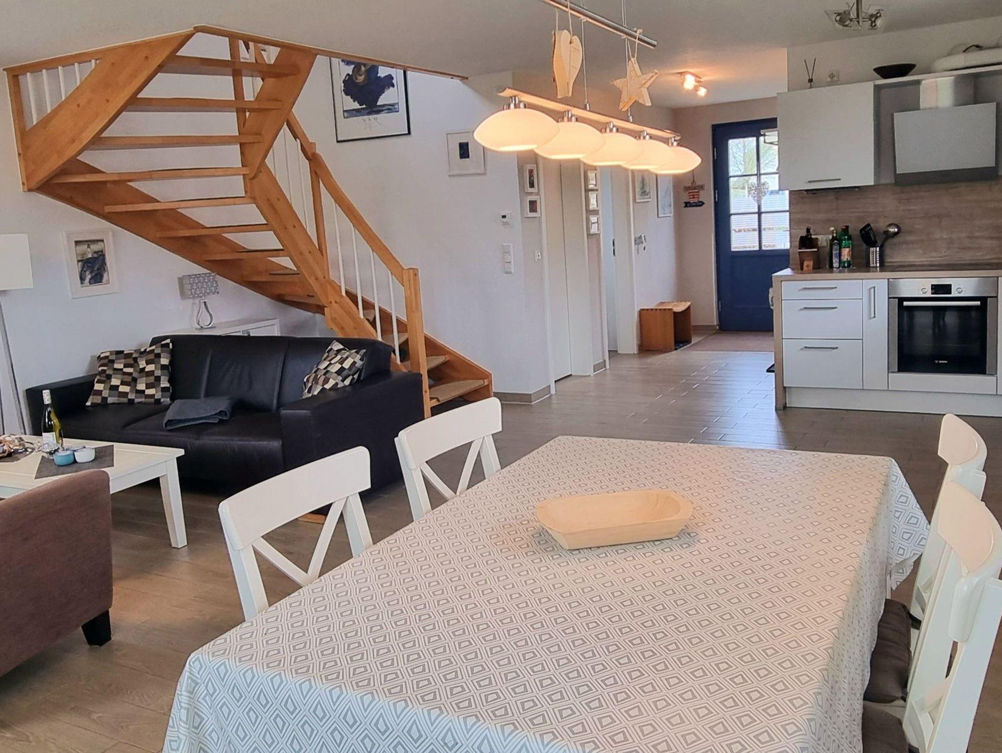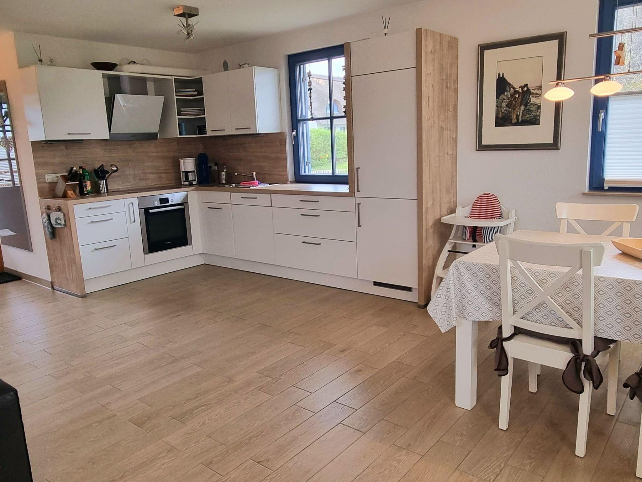 Das in 2014 errichtete Reetdachhaus mit einer Wohnfläche von 97 qm befindet sich in der neuen Ferienhaussiedlung „De Poeler Drift“ in Zierow. Das mit Echtholzmöbeln, Sprossenfenstern und Fensterläden ausgestattete Feriendomizil lädt zu jeder Jahreszeit an die mecklenburgische Ostsee ein. Ob im schönen Sommer, denn der Strand ist nicht weit, zudem gibt es einen umlaufenden Garten, aber auch in der kälteren oder auch schmuddeligen Jahreszeit, denn sowohl eine Sauna als auch ein Kaminofen sind vorhanden. Es erwartet Sie ein komplett gefliestes, mit Fußbodenheizung ausgestattetes Reetdachhaus. Eine hochwertige Innenausstattung lässt keine Wünsche offen. Das Erdgeschoss empfängt Sie mit einem großen Wohn-/Essbereich mit offener Küche und bietet ausreichend Platz für die ganze Familie. Die integrierte Küche ist voll ausgestattet mit einem hochwertigen Backofen mit Induktionskochfeld, einem Kühlschrank mit Gefrierfach, einem Geschirrspüler, Kaffeemaschine, Toaster und Wasserkocher, aber auch ein Eierkocher und Mixer sind vorhanden. Eine Ledercouchgarnitur und Sessel laden zu einem gemütlichen Abend ein. Ein Flach-TV, Blue-Ray-Player und Bluetooth-Stereoanlage bieten Unterhaltung, zudem stehen einige Bücher, Reiseführer und Spiele zur Verfügung. Im Wohnbereich steht der Kaminofen, der wohlige Wärme in der kalten Jahreszeit schenkt. Kaminholz ist mitzubringen. Der Essbereich bietet Platz für 4 Personen, ein Kinderhochstuhl ist zusätzlich vorhanden. Weiterhin befinden sich im EG ein Tageslicht-Gäste-WC, eine Sauna mit Komfortdusche und ein Hauswirtschaftsraum mit Waschmaschine, Wäscheständer, Staubsauger, Bügeleisen, Bügelbrett und Putzutensilien.
