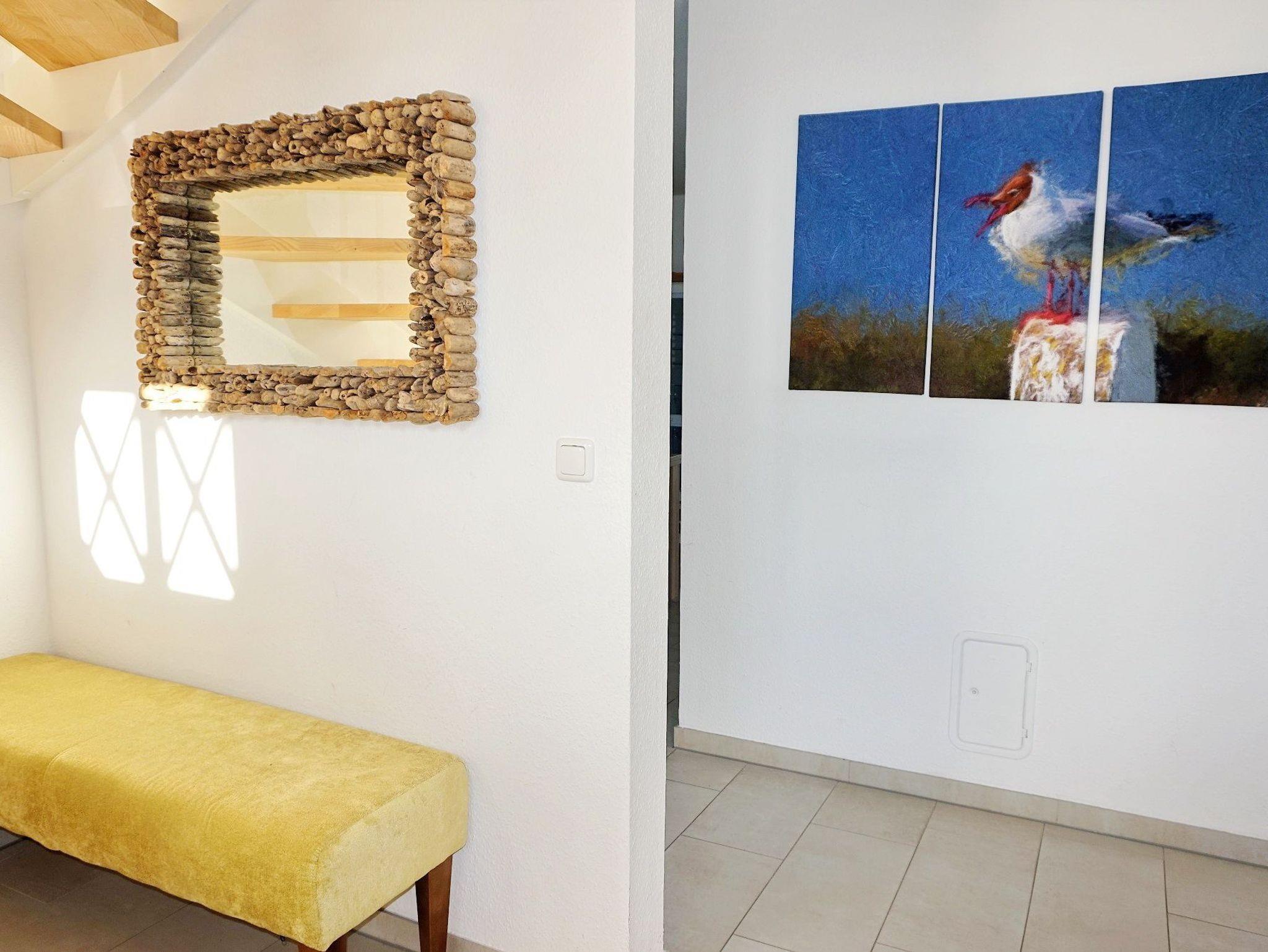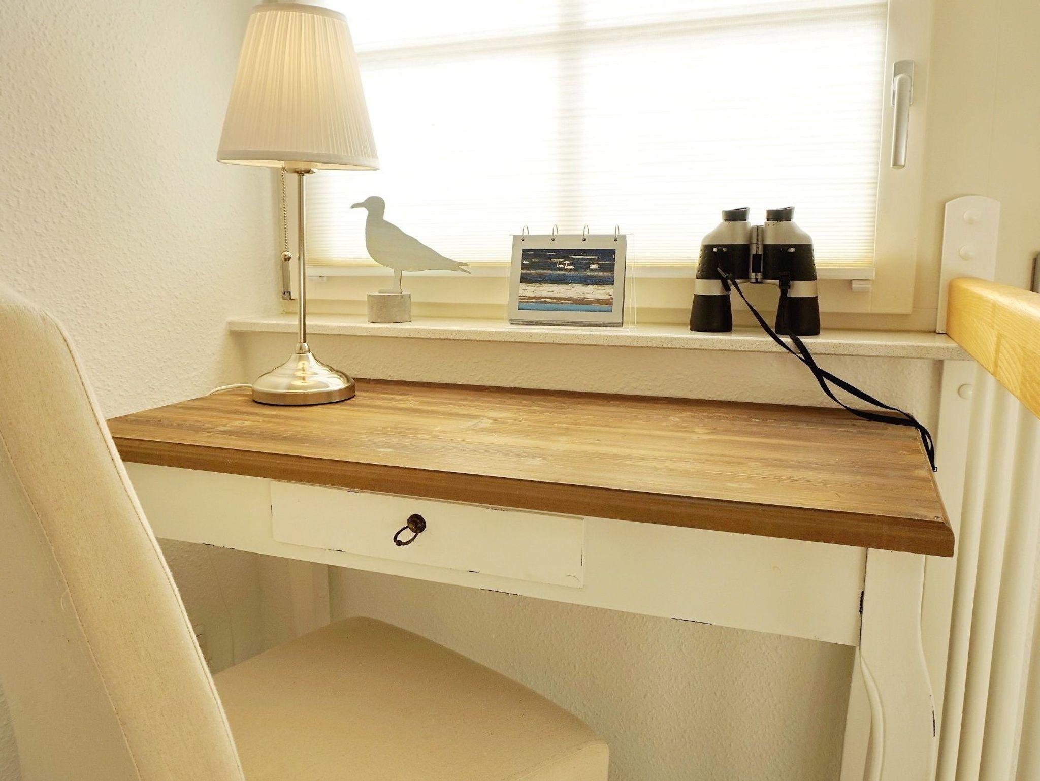 Für Urlaubsgrüße oder kurze Respons am Laptop steht Ihnen ein Schreibtisch im lichtdurchfluteten Flur zur Verfügung.