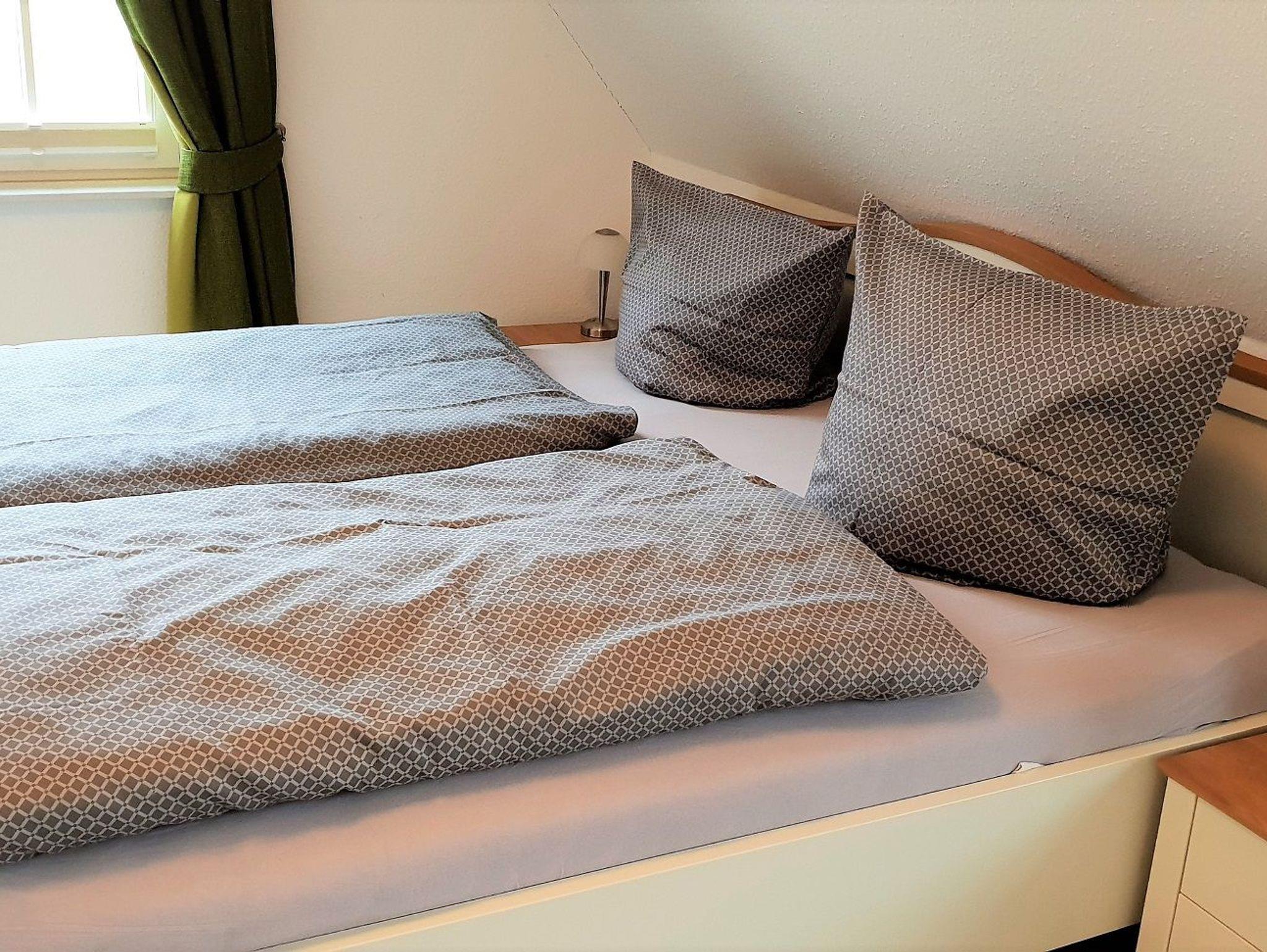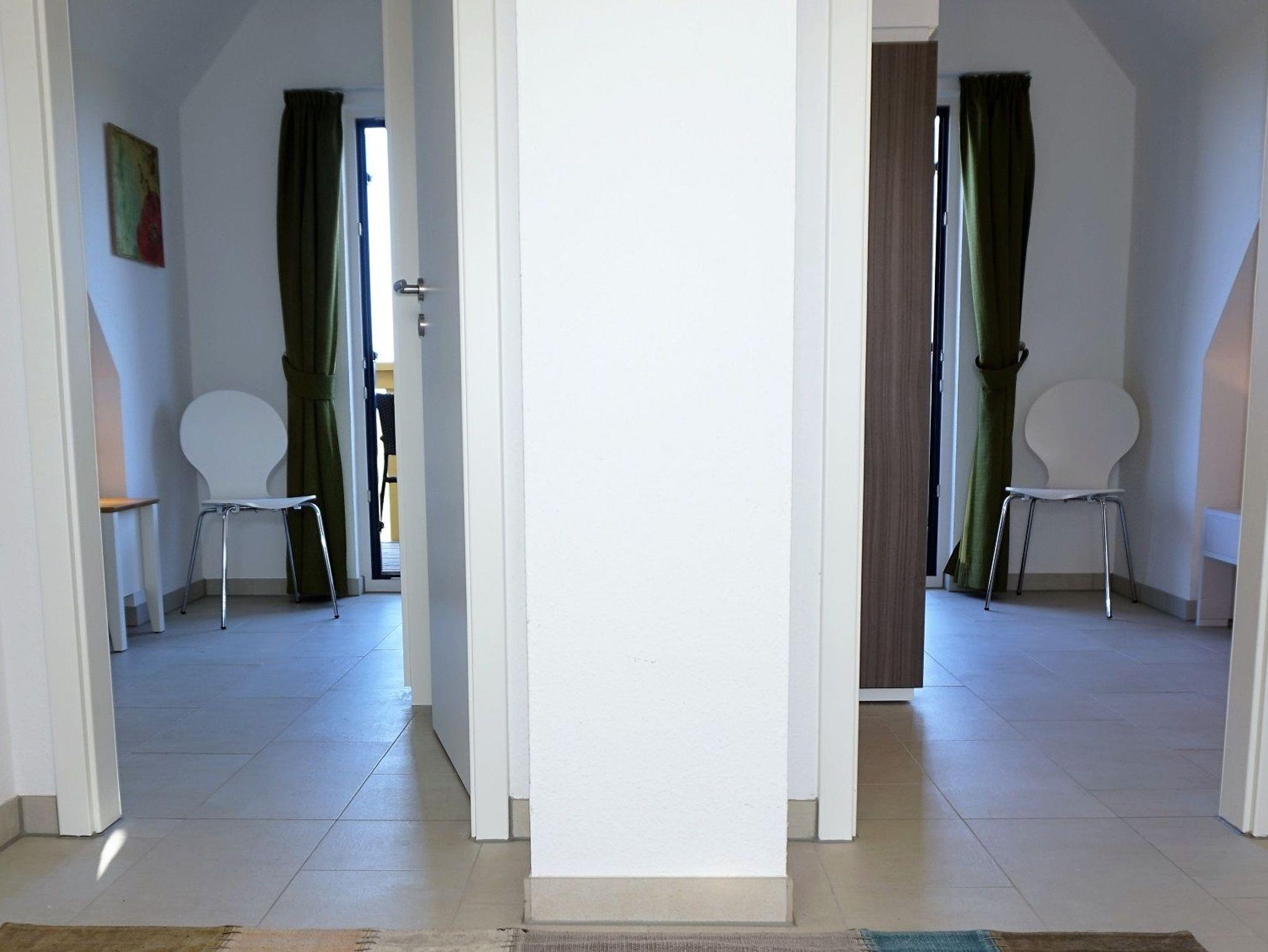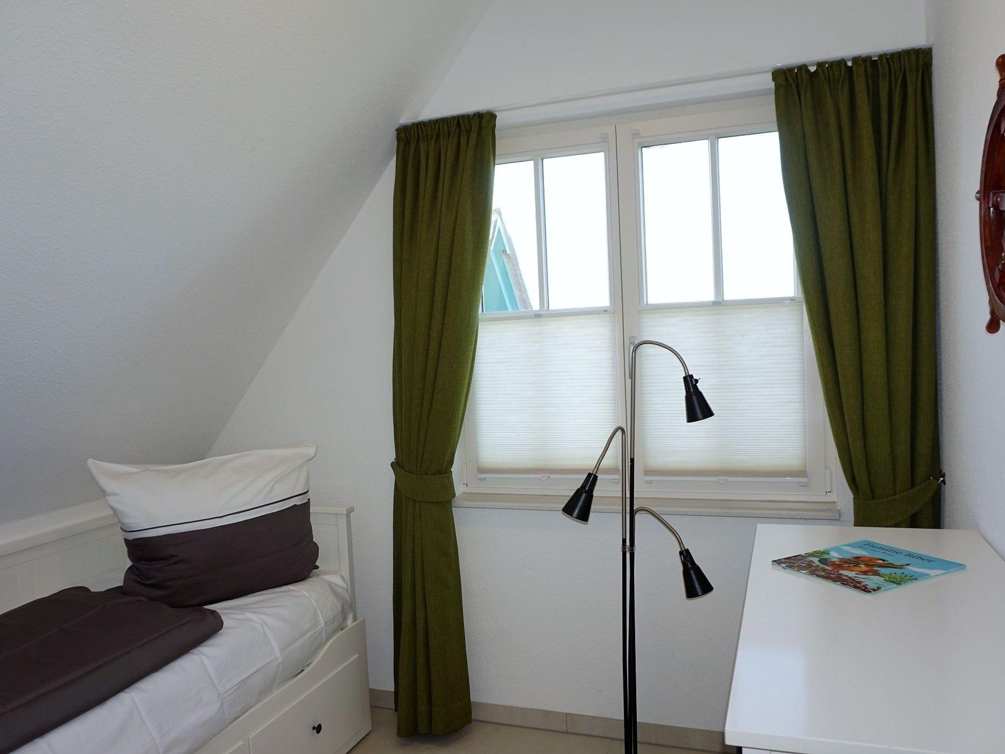 Ihr Urlaub kann direkt beginnen - frisch bezogene Bettwäsche und Handtücher liegen bereit. Im Obergeschoss empfangen Sie drei Schlafzimmer. Zwei Schlafzimmer sind jeweils mit einem Doppelbett und Kleiderschrank ausgestattet. Sie bieten direkten Zugang zum Balkon der zur Nord (Seeseite) ausgerichtet ist. Hier können Sie Ihren Kaffee am Morgen oder zu den Abendstunden den Sonnenuntergang und den Ostseeblick über die Wismarbucht beobachten. Im dritten Schlafzimmer steht ein Einzelbett mit Ausziehfunktion für 2 Personen (160x200).
