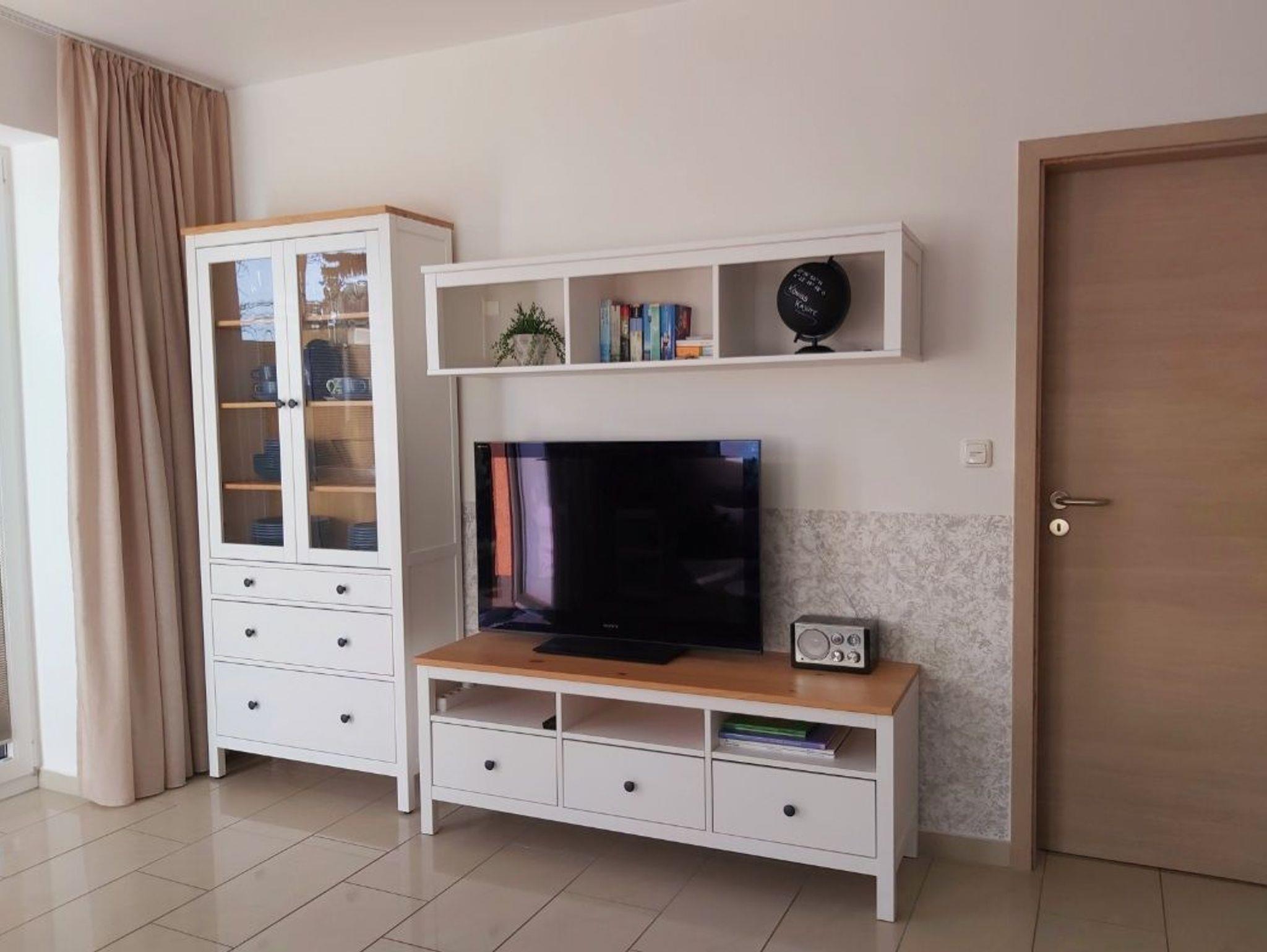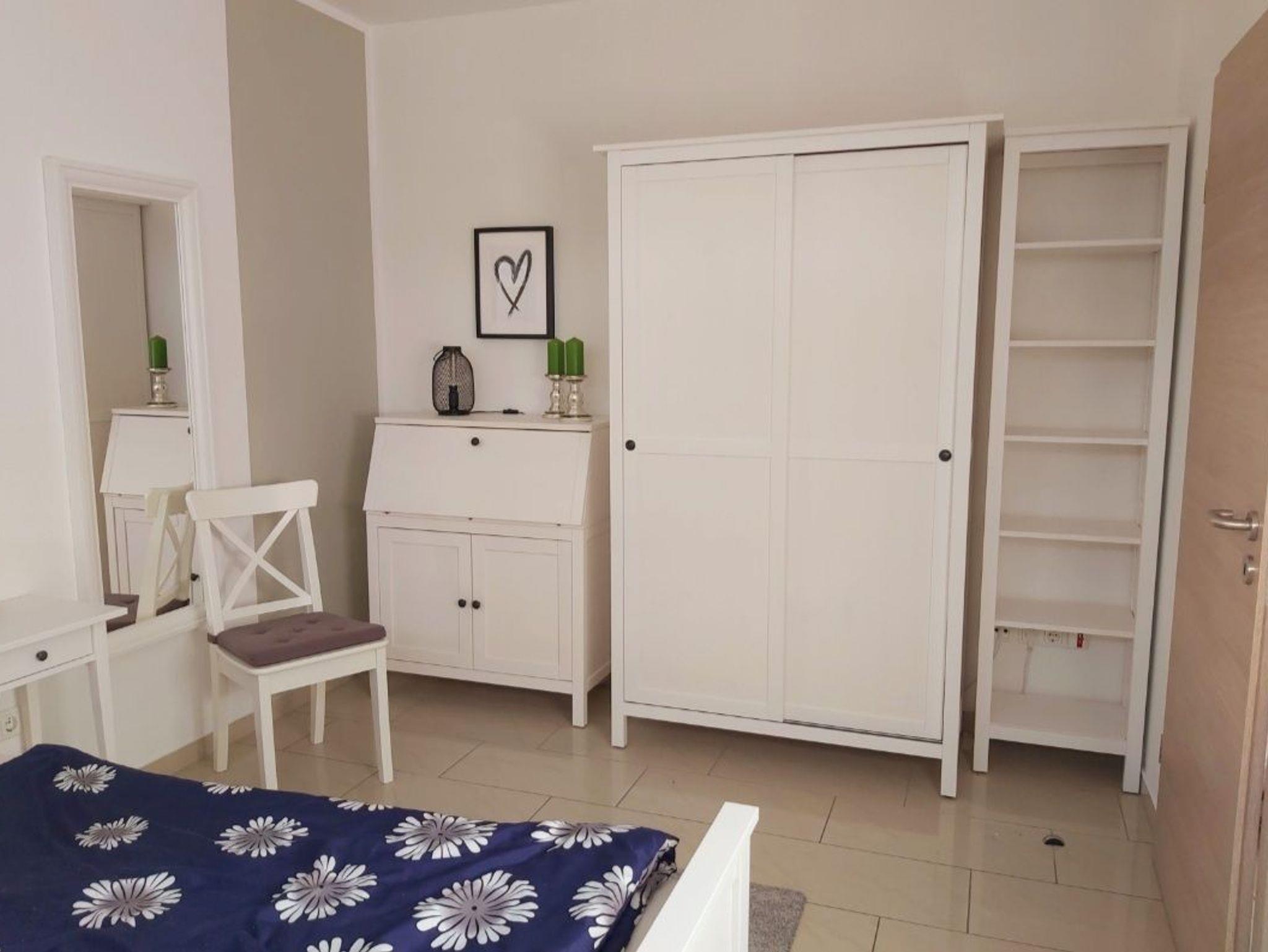 - Schlafzimmer mit Doppelbett, zusätzlichen TV, Schrank, Regal und Laptoparbeitsplatz