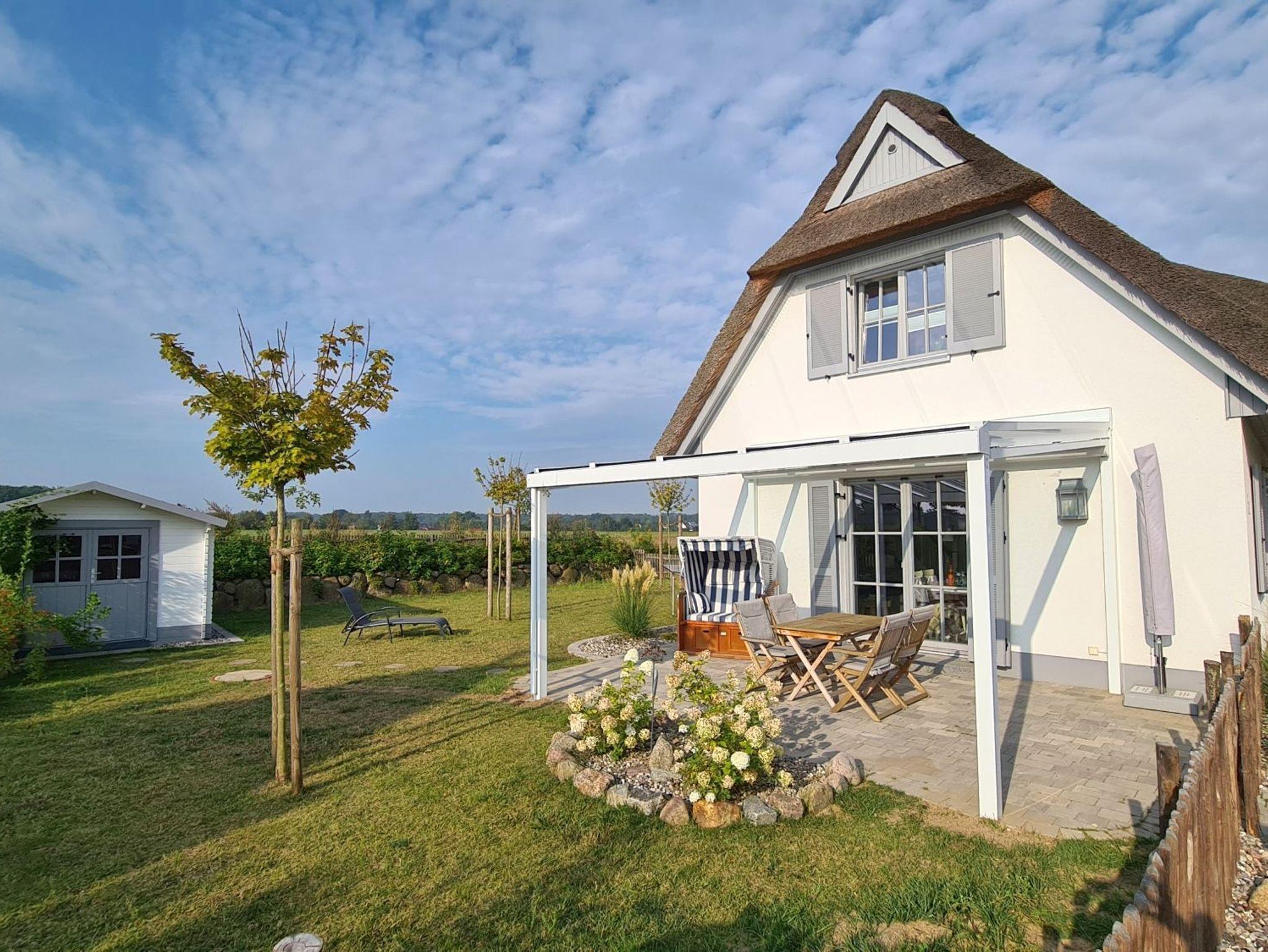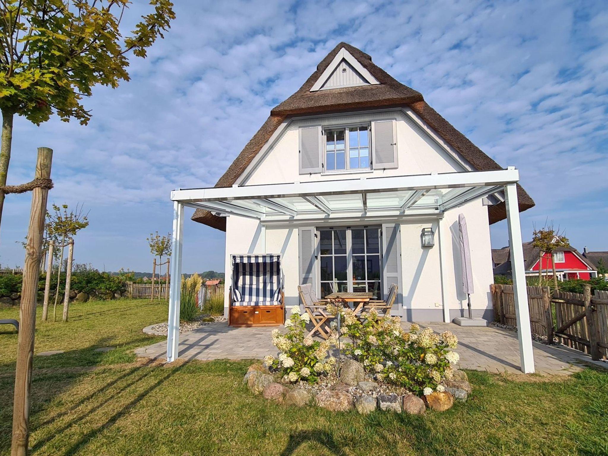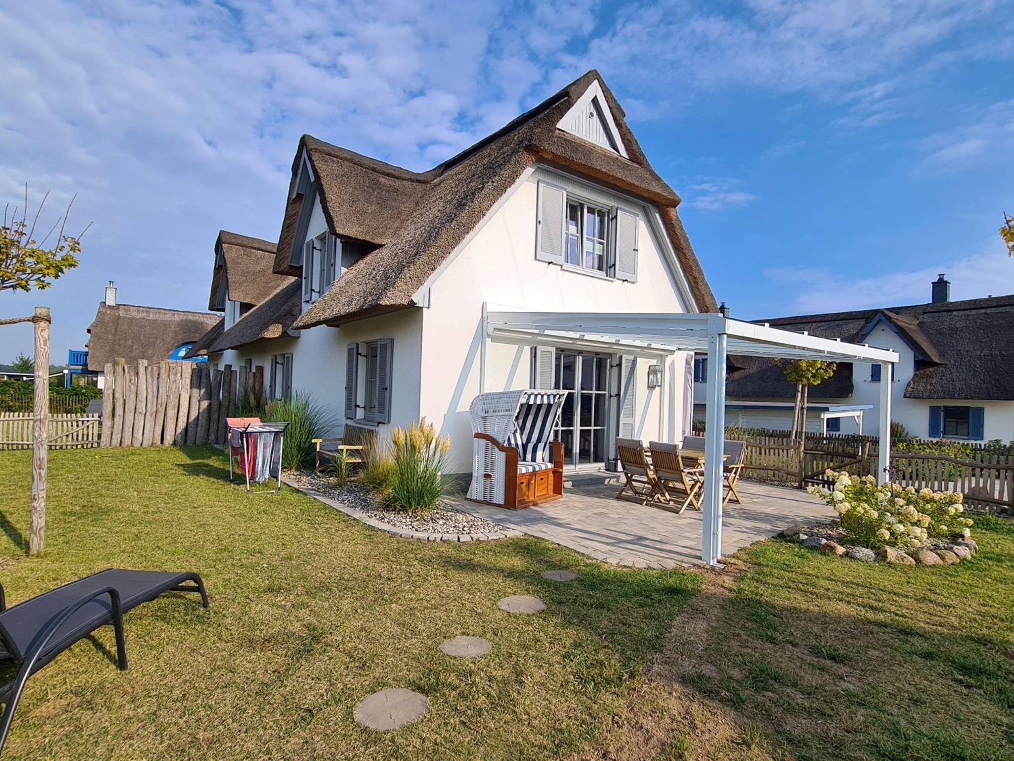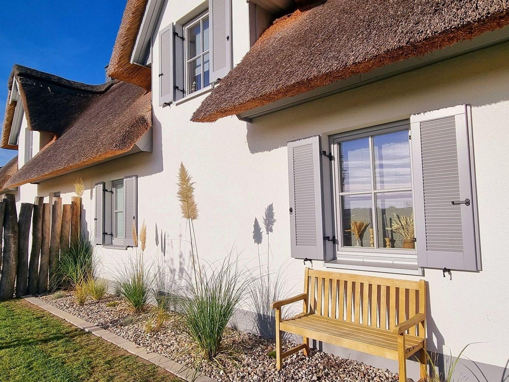 Das Reethaus Strandmuschel in Zierow bietet maritimes Flair, Sauna und eine sonnige Terrasse für entspannte Urlaubstage.