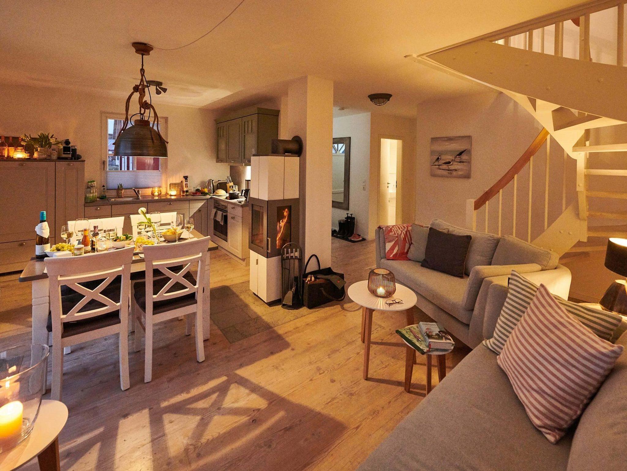 Der massive schwedische Echtholzfußboden und liebevoll ausgesuchte Details bestechen durch Ihre Einzigartigkeit. Die Küche ist modern mit vielen Extras ausgestattet und das von allen Seiten sichtbare Kaminfeuer bringt gerade an kälteren Tagen eine wohlige Stimmung ins Haus.