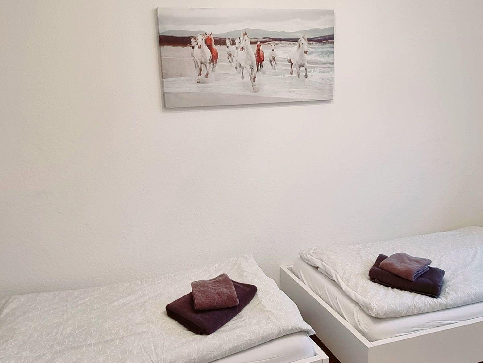 WLAN nutzen Sie kostenfrei. Im Erdgeschoss erwartet Sie der offene Wohn-/ Essbereich mit Kaminofen komplett ausgestattete Küche, ein Schlafzimmer mit zwei Einzelbetten und der Hauswirtschaftsraum mit Waschmaschine.
