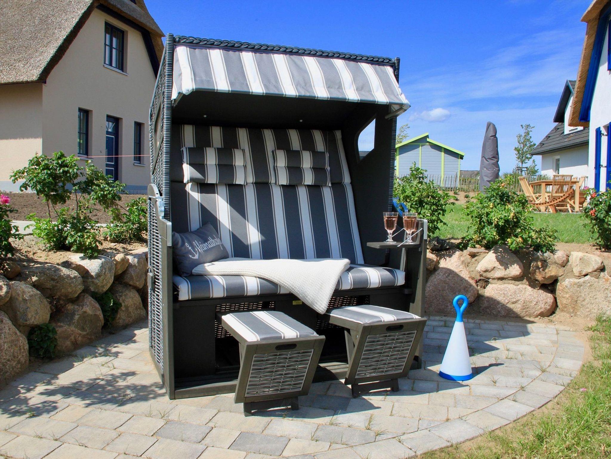 Ihr Ferienhaus bietet Ihnen Erholung und Entspannung. Genießen Sie die aufgehende Sonne bei einem frisch gekochten Kaffee auf der Terrasse (Gartenmöbel/Schirm vorhanden) oder im Strandkorb. Im Garten steht ebenfalls ein Holzkohlegrill für gemütliche Grillabende zur Verfügung. Zur Unterhaltung finden Sie im Schuppen Freizeitspiele. Mitgebrachte Fahrräder finden ein Quartier in den Fahrradständern am Schuppen. Es sind zwei Pkw-Stellplätze auf dem Grundstück vorhanden.