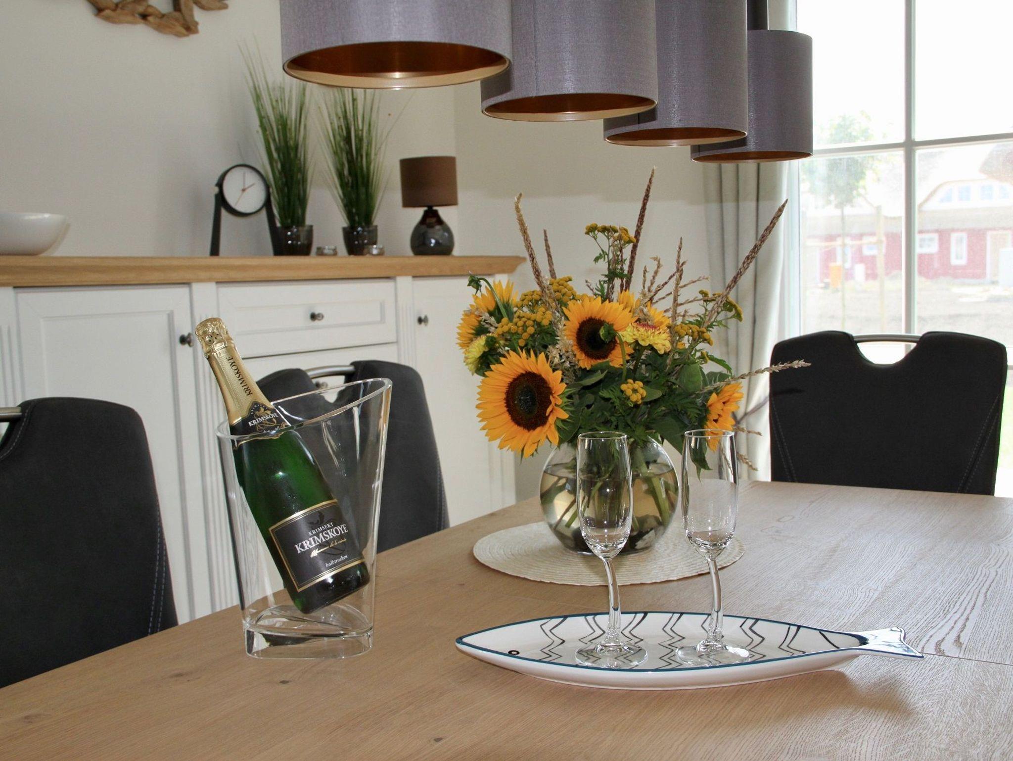 Sollten Sie Lust auf gemeinsames Kochen oder Backen verspüren, nutzen Sie die hochwertige Küchenzeile (Induktionsherd, Geschirrspüler, Kühl-/Gefrierkombination, Mikrowelle) mit sämtlichen Koch- und Backutensilien. Ein eigenes Backbuch mit bewährten leckeren Rezepten steht zum Ausprobieren bereit.