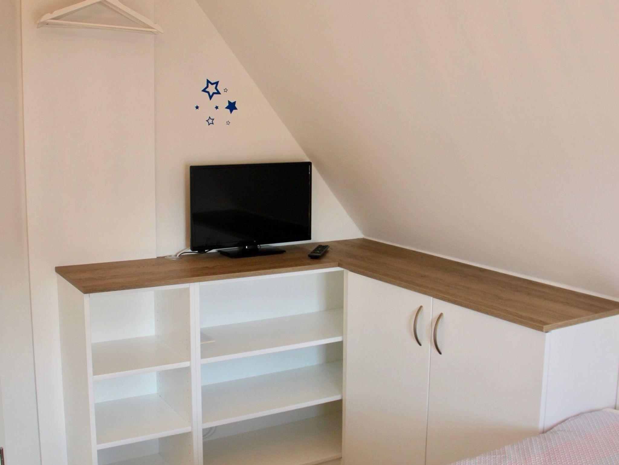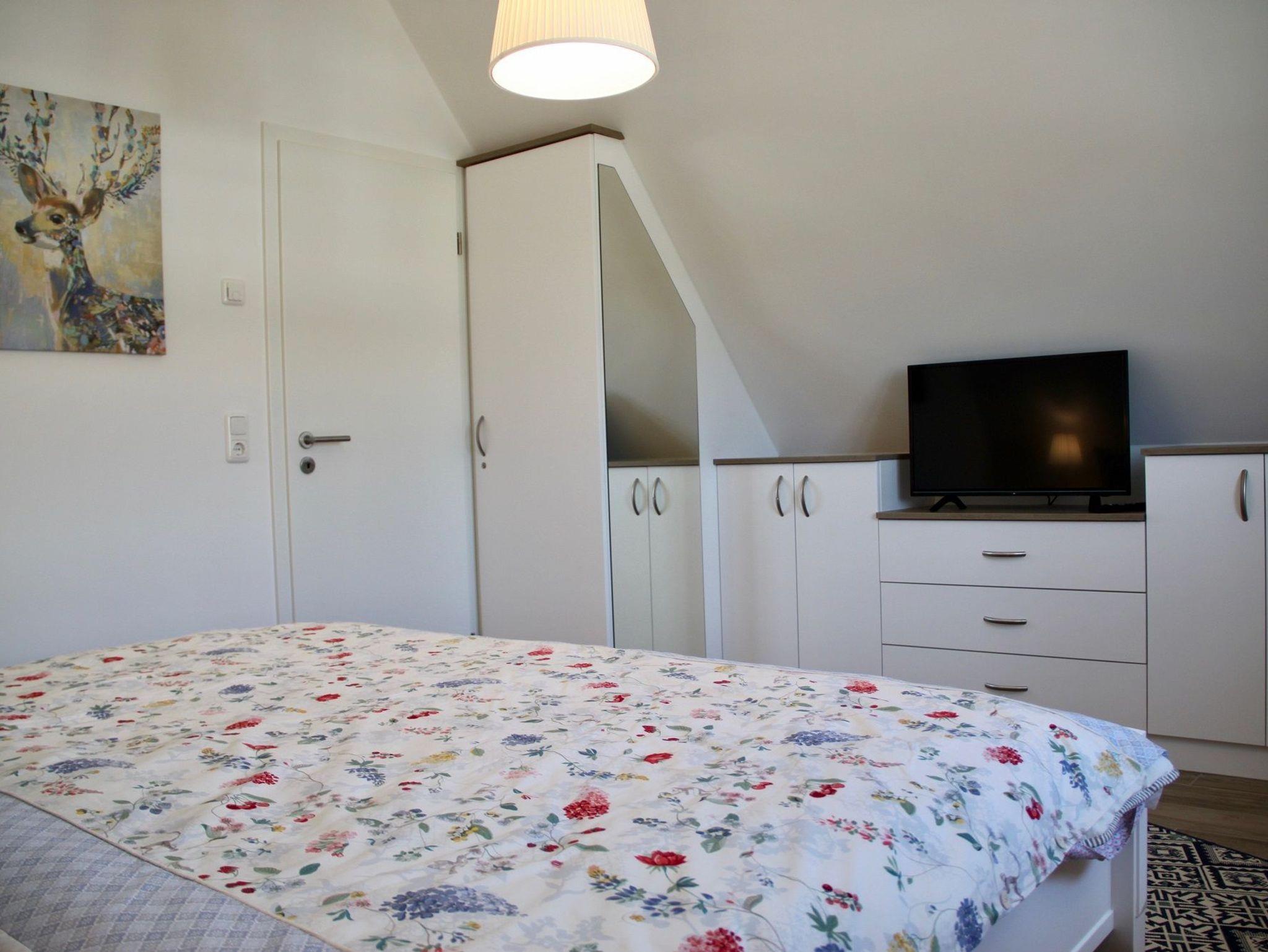 Im Obergeschoß befinden sich im großzügigen Schlafzimmer ein Doppelbett (180 x 200 cm) sowie in den beiden weiteren Schlafzimmern jeweils ein Französisches Bett (140 x 200 cm). So können nicht nur das Elternpaar, sondern auch die heranwachsenden Kinder erholsame Nächte verbringen. Jedes Schlafzimmer ist mit einem eigenen Fernseher ausgestattet.