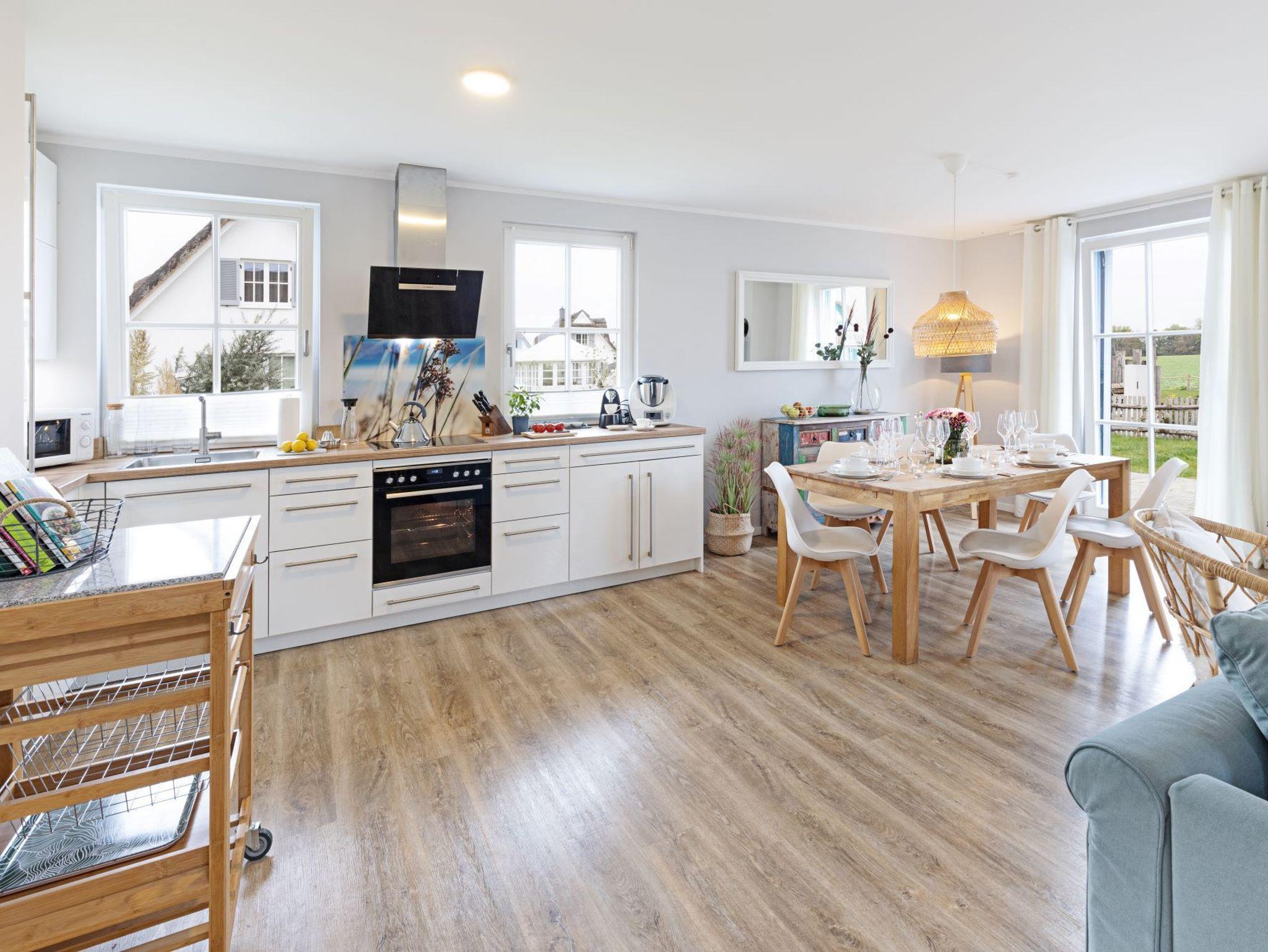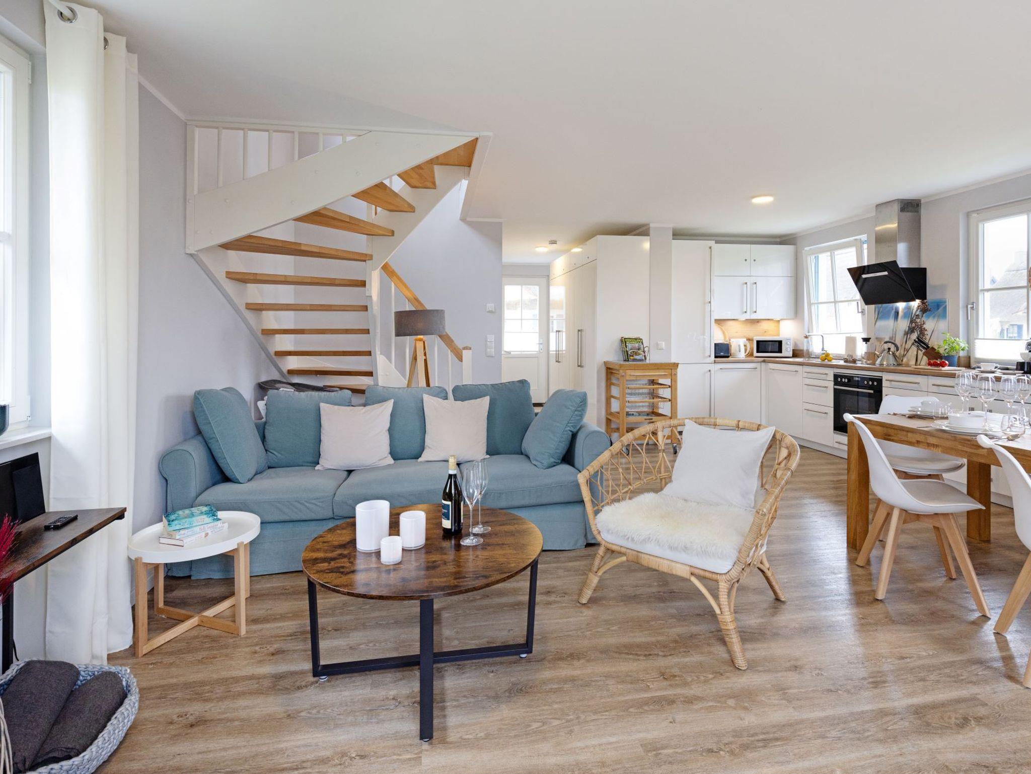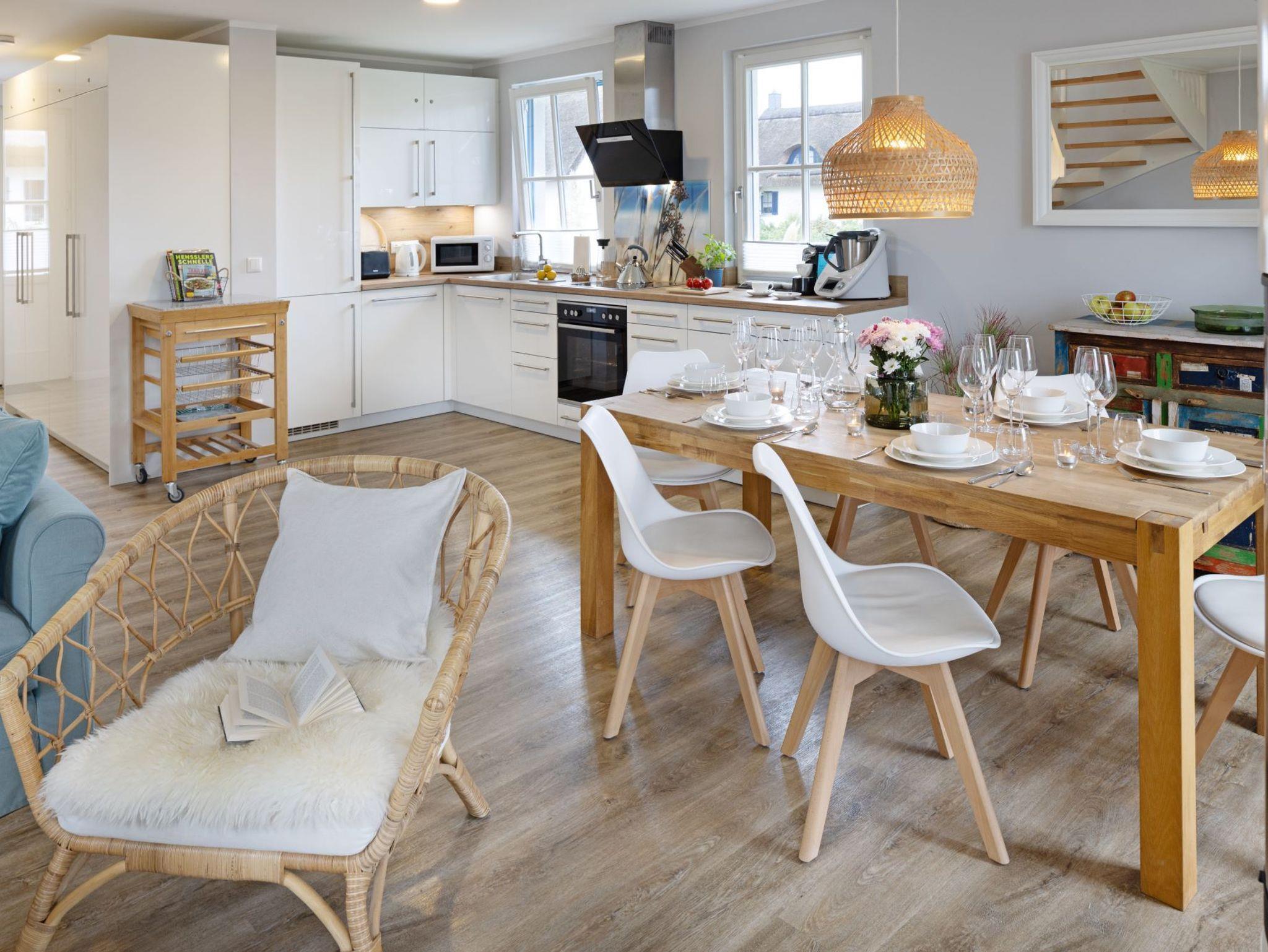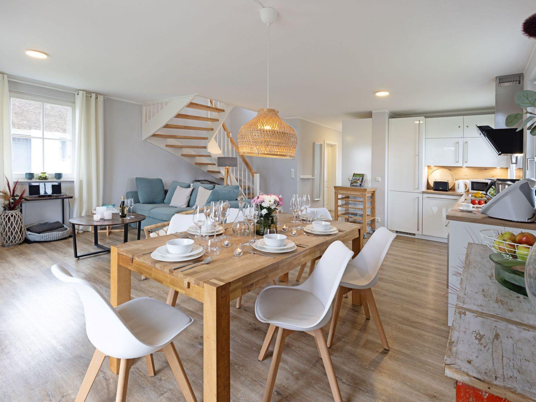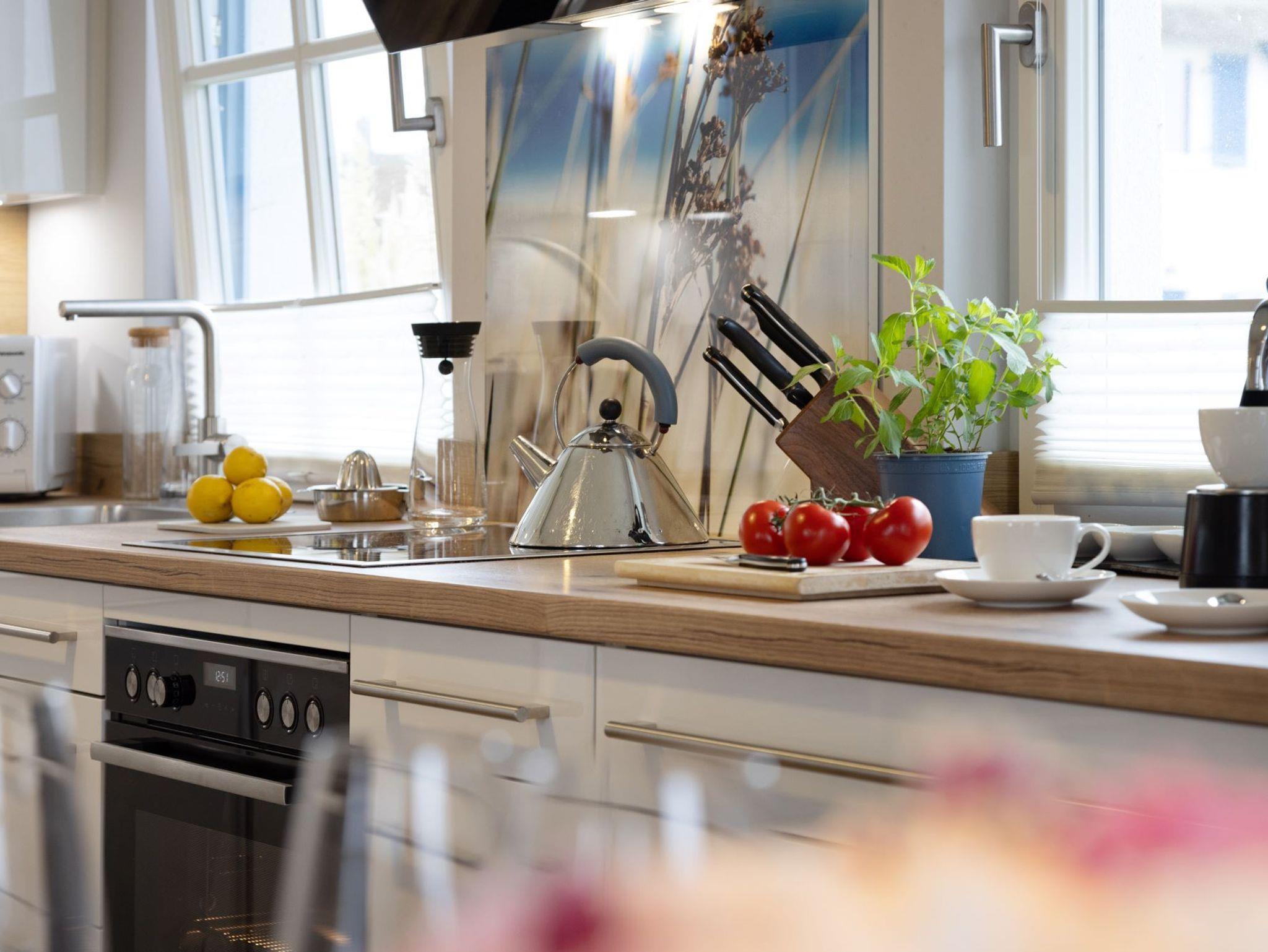 Der charmante Wohnbereich besticht durch das gemütliche Relax-Sofa und lädt zum entspannten Verweilen ein. Das hochwertige 55 Zoll-SAMSUNG-Smart-TV sorgt für Information und Unterhaltung. Genießen Sie unser kostenfreies WLAN-Internet und loggen Sie sich wie zu Hause jederzeit in Ihre bevorzugten Streamingportale von Prime, Sky, Netflix usw. ein. Für Regentage im geselligen Kreis von Freunden und Familie steht Ihnen eine Auswahl von Gesellschaftsspielen und Unterhaltungsliteratur zur Verfügung.