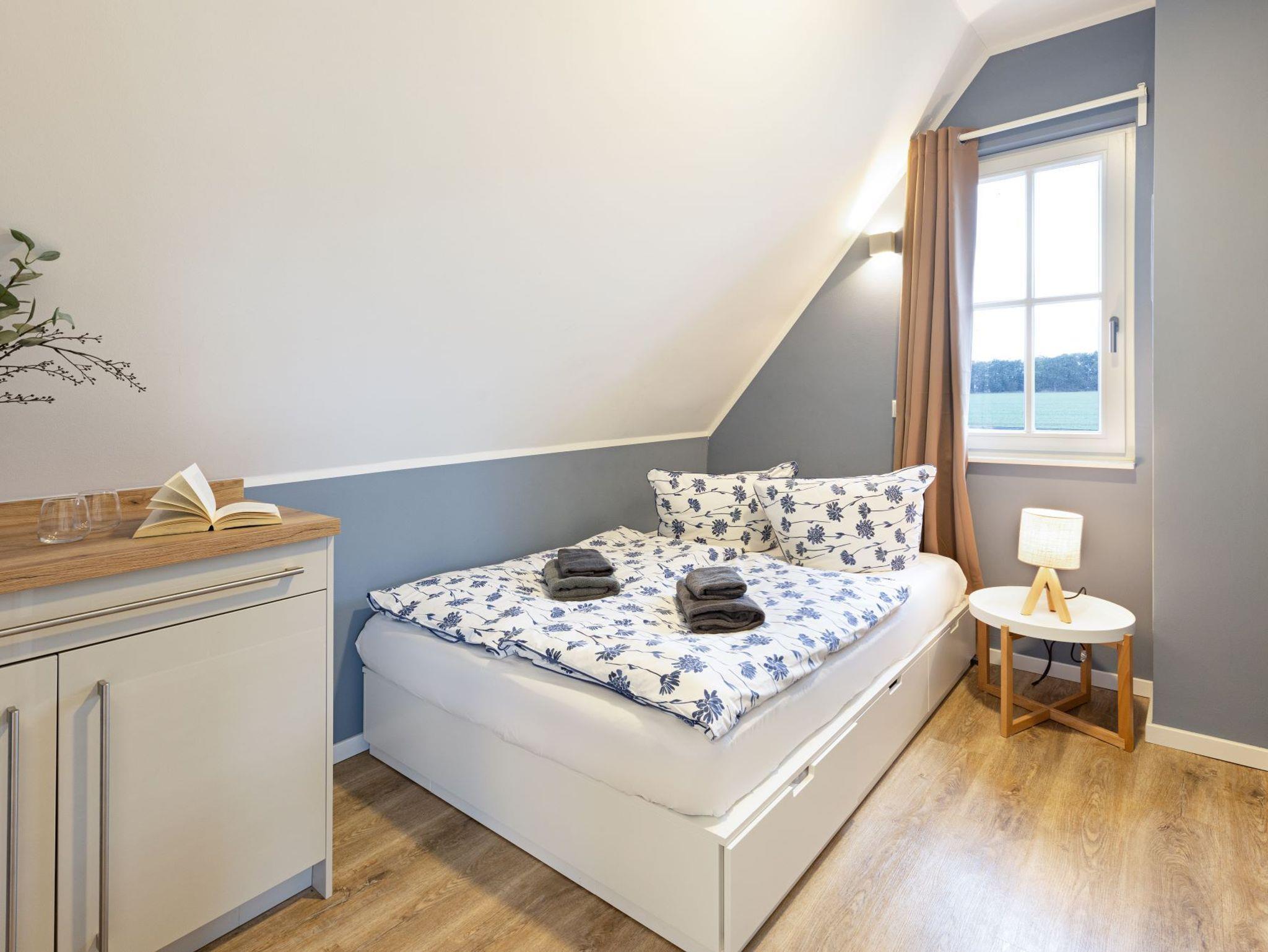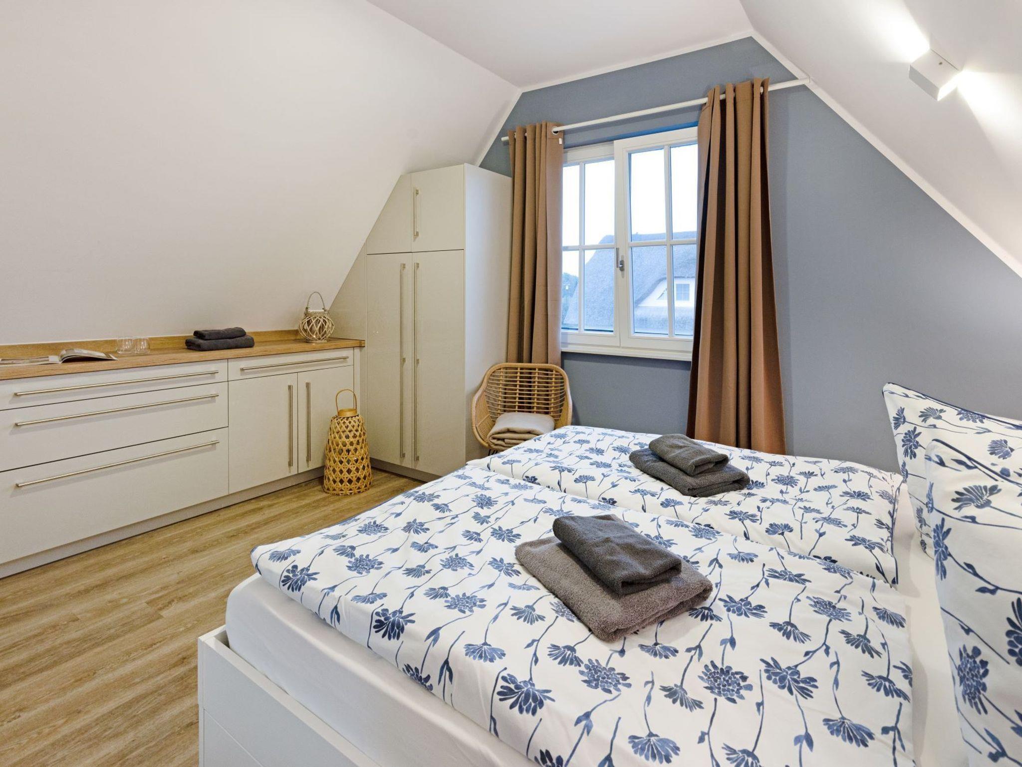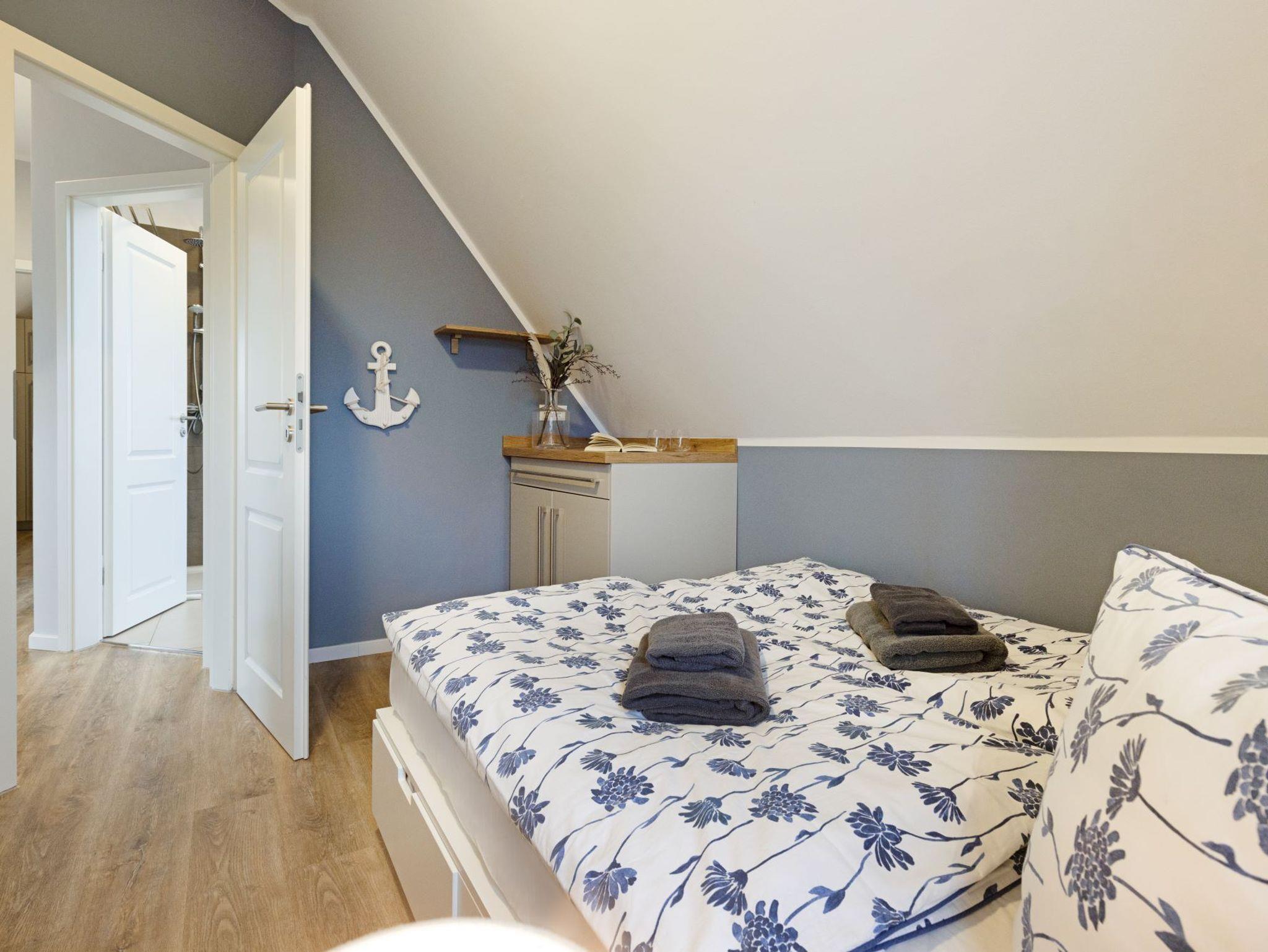 Die Schlafzimmer sind mit je einem Doppelbett (davon ein ausziehbares Einzelbett max. 170x200) sowie ausreichend Stauraum in Form von maßgefertigten Kommoden und Einbauschränken ausgestattet.
