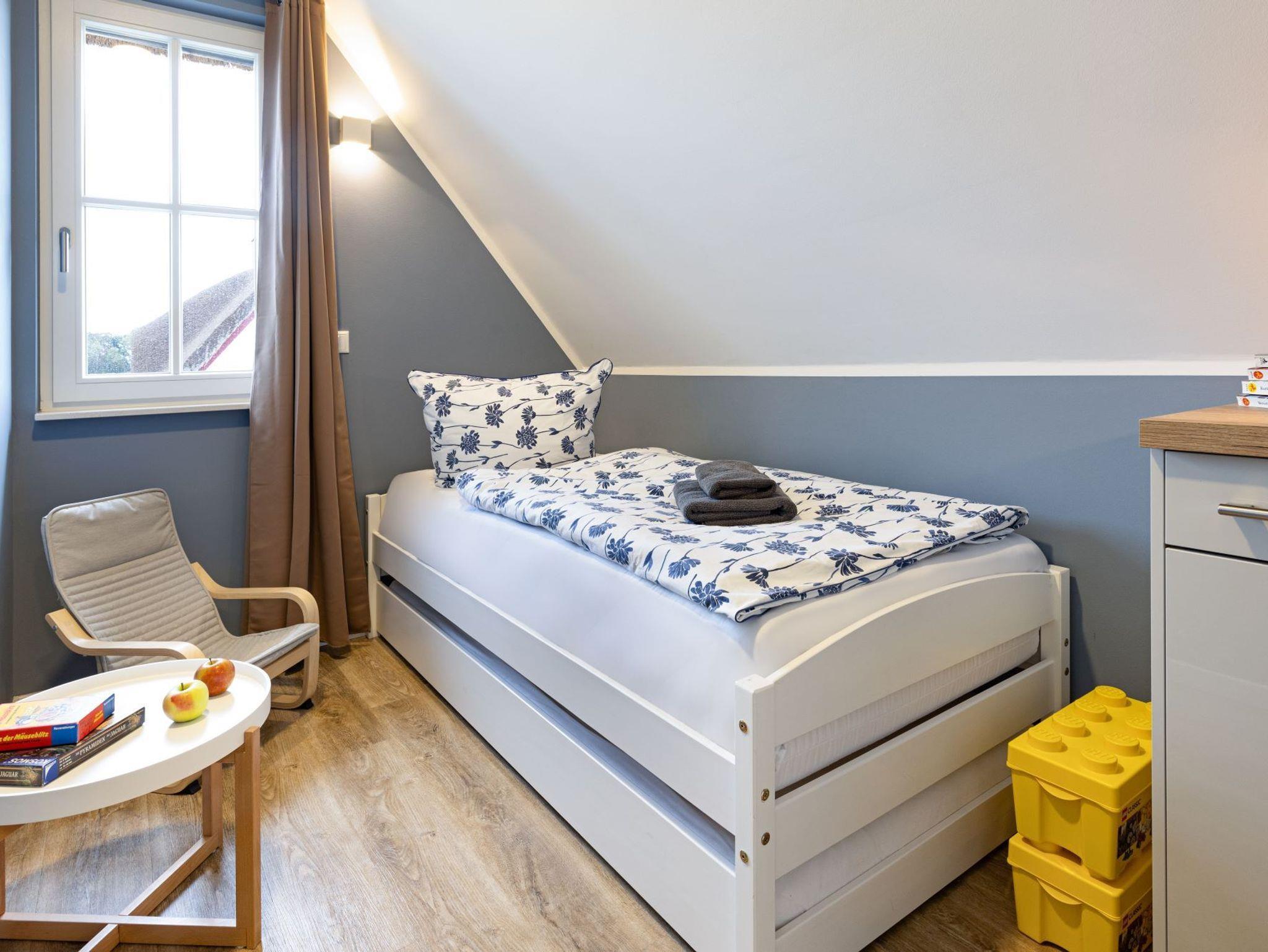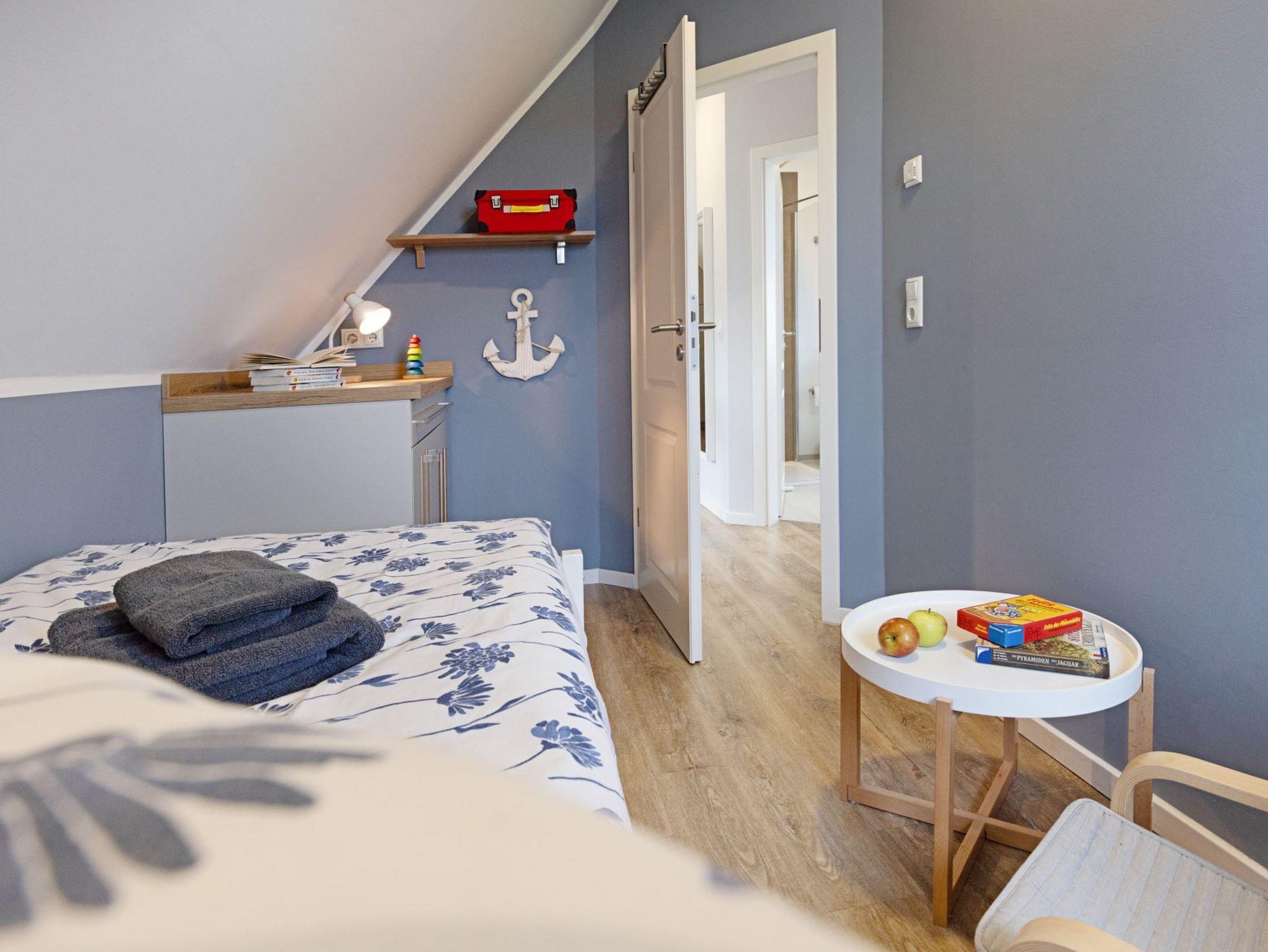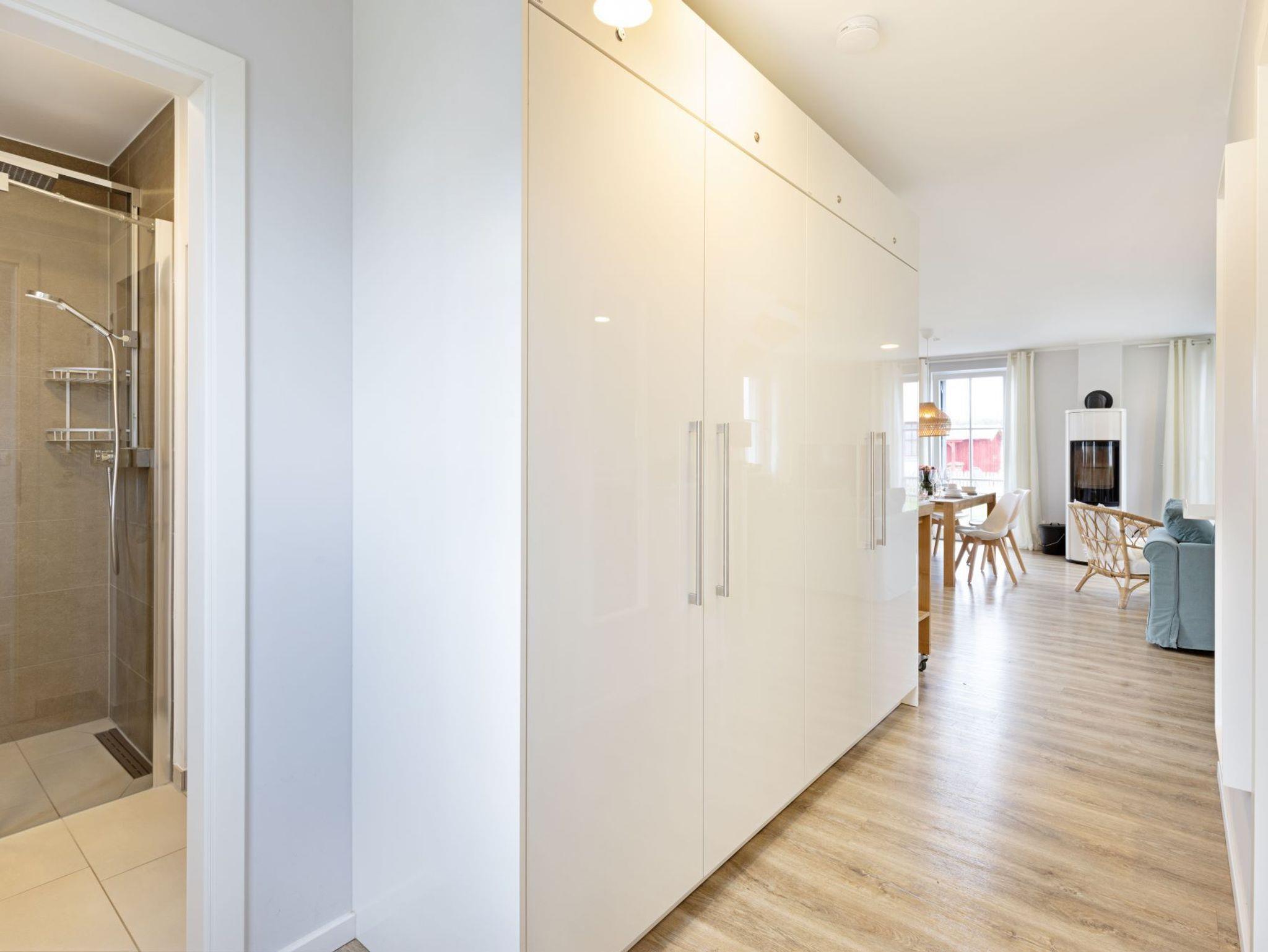 Die Schlafzimmer sind mit je einem Doppelbett (davon ein ausziehbares Einzelbett max. 170x200) sowie ausreichend Stauraum in Form von maßgefertigten Kommoden und Einbauschränken ausgestattet.