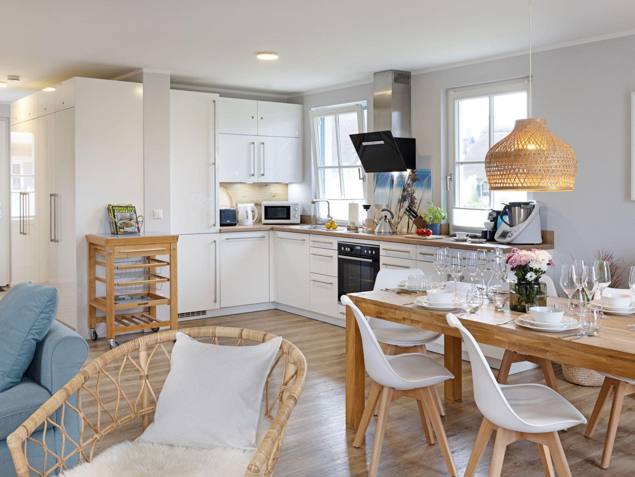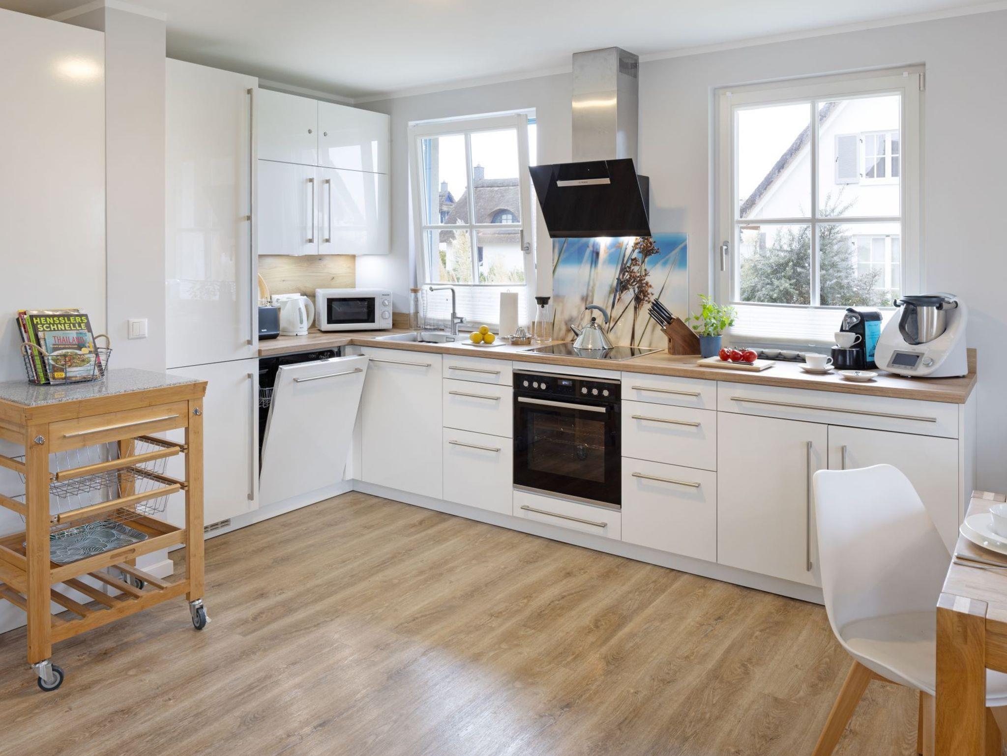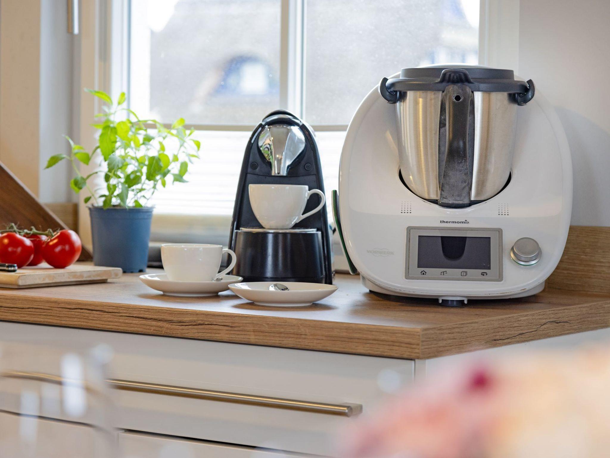 Insbesondere die Wohnküche ist mit hochwertigen Design-Markengeräten ausgestattet. Kleine Highlights sind z.B. der separate 60l-Gefrierschrank, die zusätzliche Mikrowelle, eine Nespresso-Kapselmachine als Ergänzung zur Filter-Kaffeemaschine sowie ein elektrischer Milchschaumbereiter.