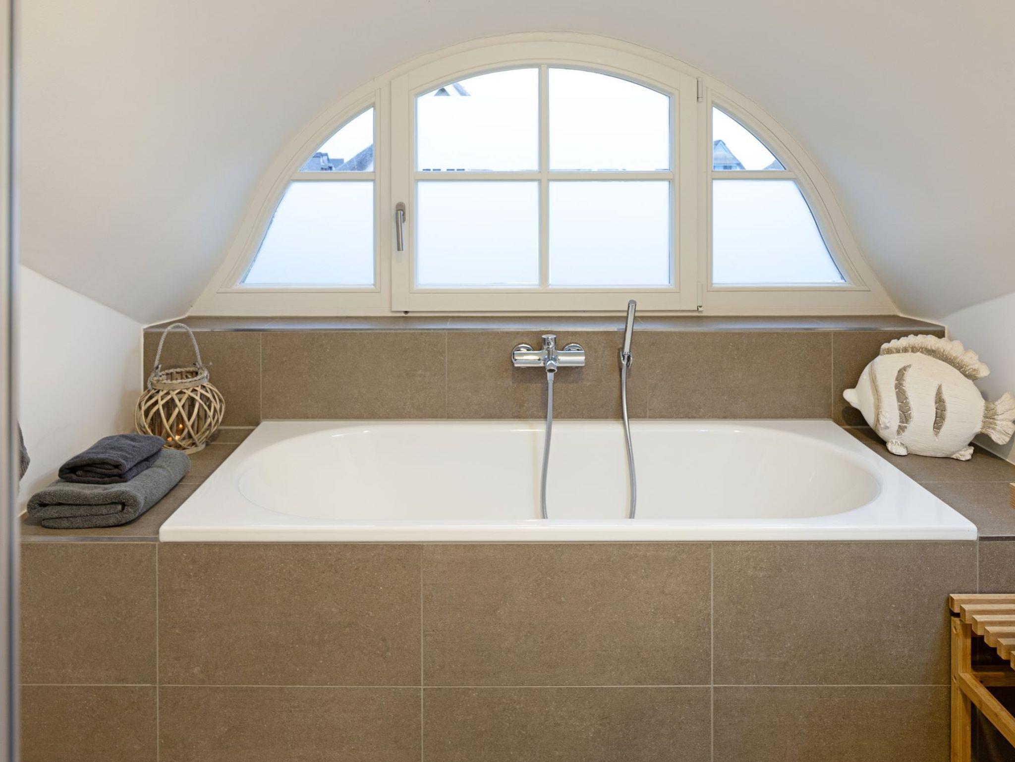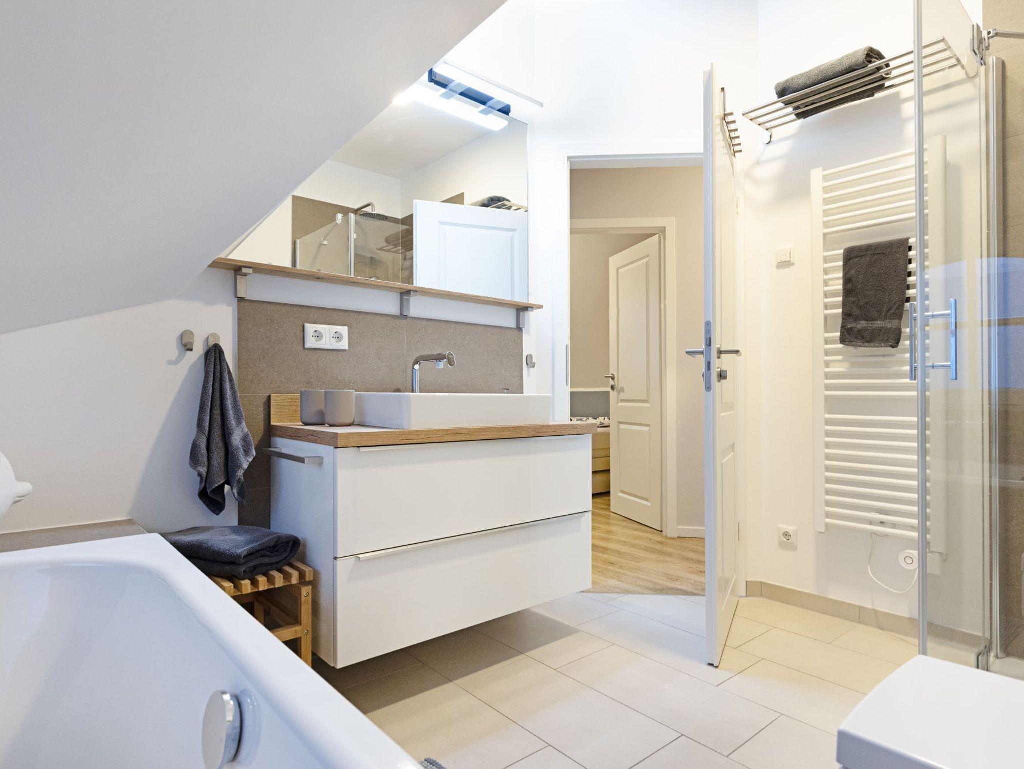 Im Obergeschoss befinden sich die 3 Schlafzimmer und das moderne Vollbad mit Fledermausgaube, Komfort-Badewanne und bodengleicher Dusche.