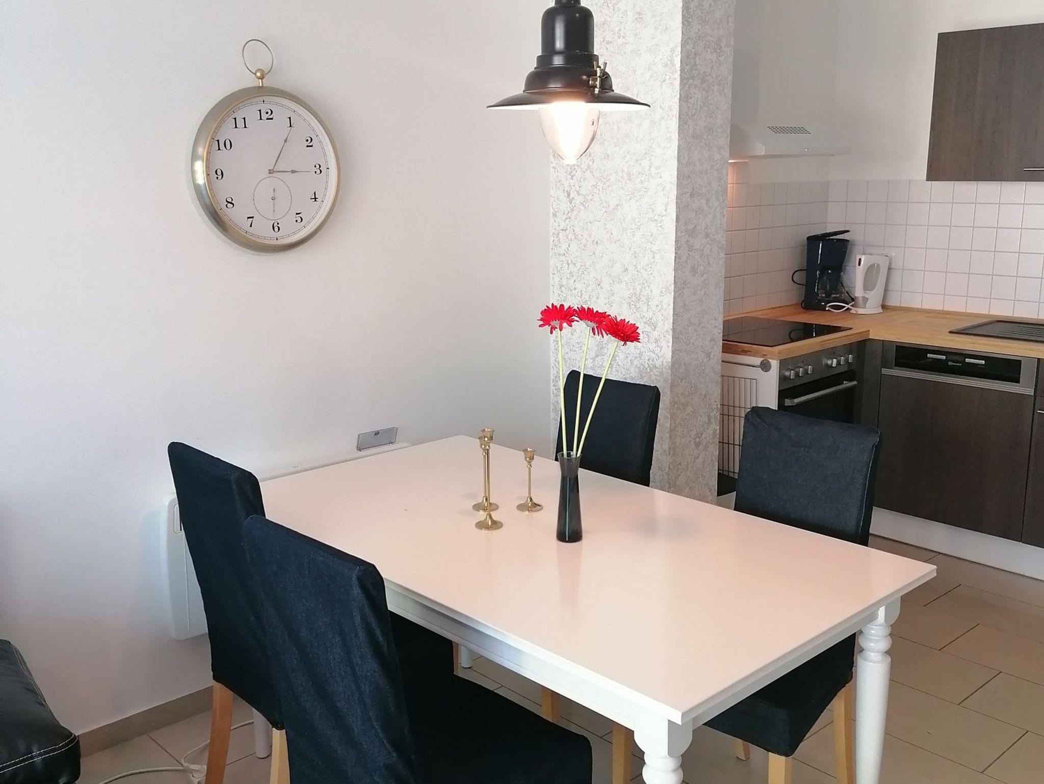 - Wohnzimmer mit Couch (mit Schlaffunktion für 2 Personen), TV, Radio, Essbereich für 4 Personen