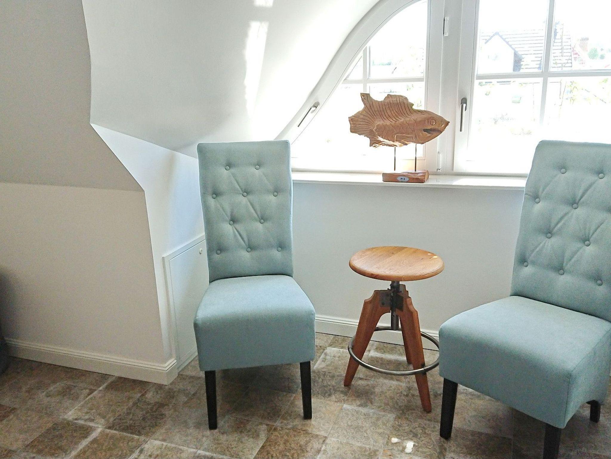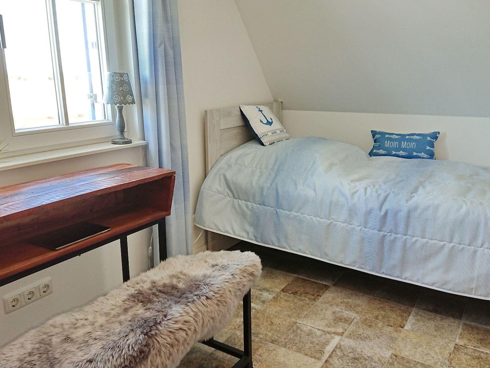 Im Erdgeschoss erwartet Sie das helle und geräumige Wohnzimmer. Es bildet eines von mehreren kommunikativen Oasen des Captains Hus. Es geht über in das gemütliche Esszimmer mit einem großen Esstisch (180x90). Dieser lädt Sie zum kulinarischen Genießen oder zum Spielen ein. Der drehbare norwegische Kaminofen bietet Ihnen bei kalter Witterung wohltuende Wärme und Wellness für die Seele. Die Küche im Erdgeschoss ist separat und sehr modern und komfortabel eingerichtet. Eine Waschmaschine, Mikrowelle, Geschirrspüler und viele weitere Extras sind hier integriert. Ein kleiner Tisch mit zwei Barhockern verführt Sie zum gemeinsamen Kochen bei einem guten Glas Wein und guten Gesprächen. Das helle Gäste-WC mit Tageslicht rundet das Erdgeschoss ab. Im Obergeschoss sind zwei Schlafzimmer und ein Duschbad farblich abgestimmt. Im ersten Schlafraum finden Sie ein Boxspringbett (200x180) und im zweiten zwei Einzelbetten (je 200x90). Beide Schlafräume bieten Ihnen viel Stauraum und Rückszugmöglichkeiten wie zum Beispiel eine alte Schulbank im zweiten Schlafraum.