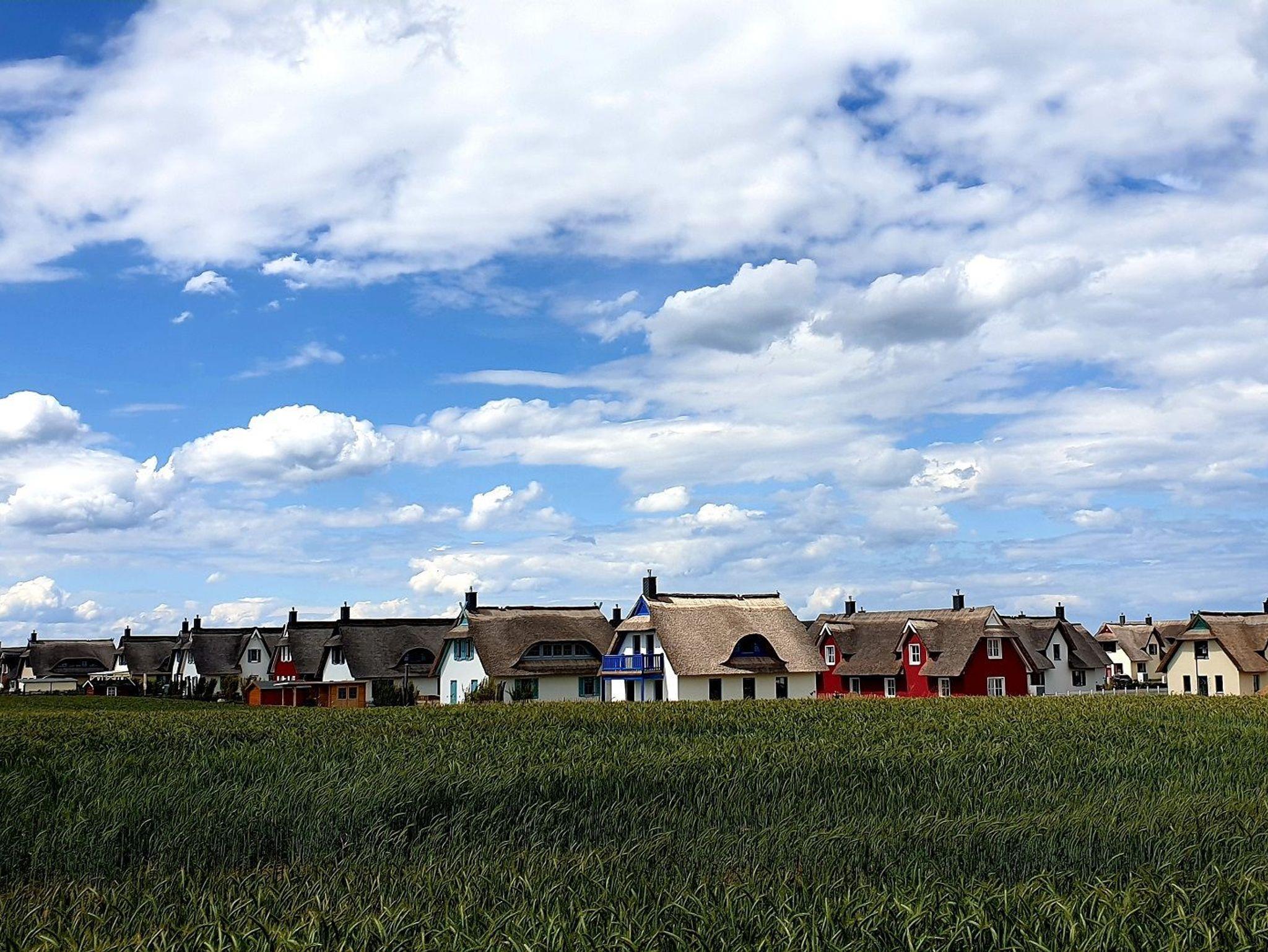 Auf der möblierten Terrasse haben Sie den ganzen Tag Sonne und Sie können den Blick über die Felder bis hin zum Erholungsort Zierow schweifen lassen. Eine gemütliche Sitzlounge lädt zum Entspannen und Bücher lesen ein. Die Terrasse ist mit einer elektrischen Markise versehen. Im Garten ist ein Grill und ein Gartenhaus zum Unterstellen Ihrer mitgebrachten Fahrräder. Im Reethaus erwartet Sie eine komfortable, hochwertige Ausstattung. Im gesamten Haus ist eine Fußbodenheizung und Fliesen verlegt. Im Erdgeschoss befindet sich das Wohnzimmer mit Kamin. Machen Sie es sich auf der großen Wohnlandschaft gemütlich - Spiele, Bücher, DVD`s, Sat-TV mit DVD sorgen für Unterhaltung. W-LAN ist kostenfrei nutzbar. Eine Waschmaschine steht im Hauswirtschaftsraum bereit. Die Küche ist separat und lädt zum Kochen ein. Der Essbereich ist hier integriert. Die Küche ist mit Geschirrspüler, Ceran-Kochfeld, Backofen, Toaster, Kaffeemaschine, Radio, Kühlschrank mit Gefrierfach und vielen Kochutensilien ausgestattet.