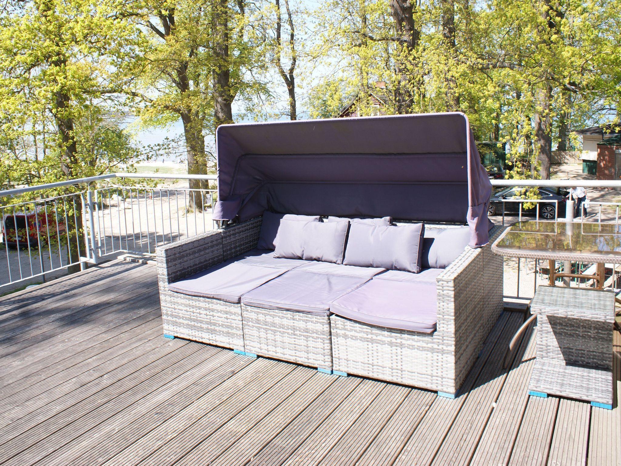 - große Dachterrasse mit Loungemöbel und Meerblick