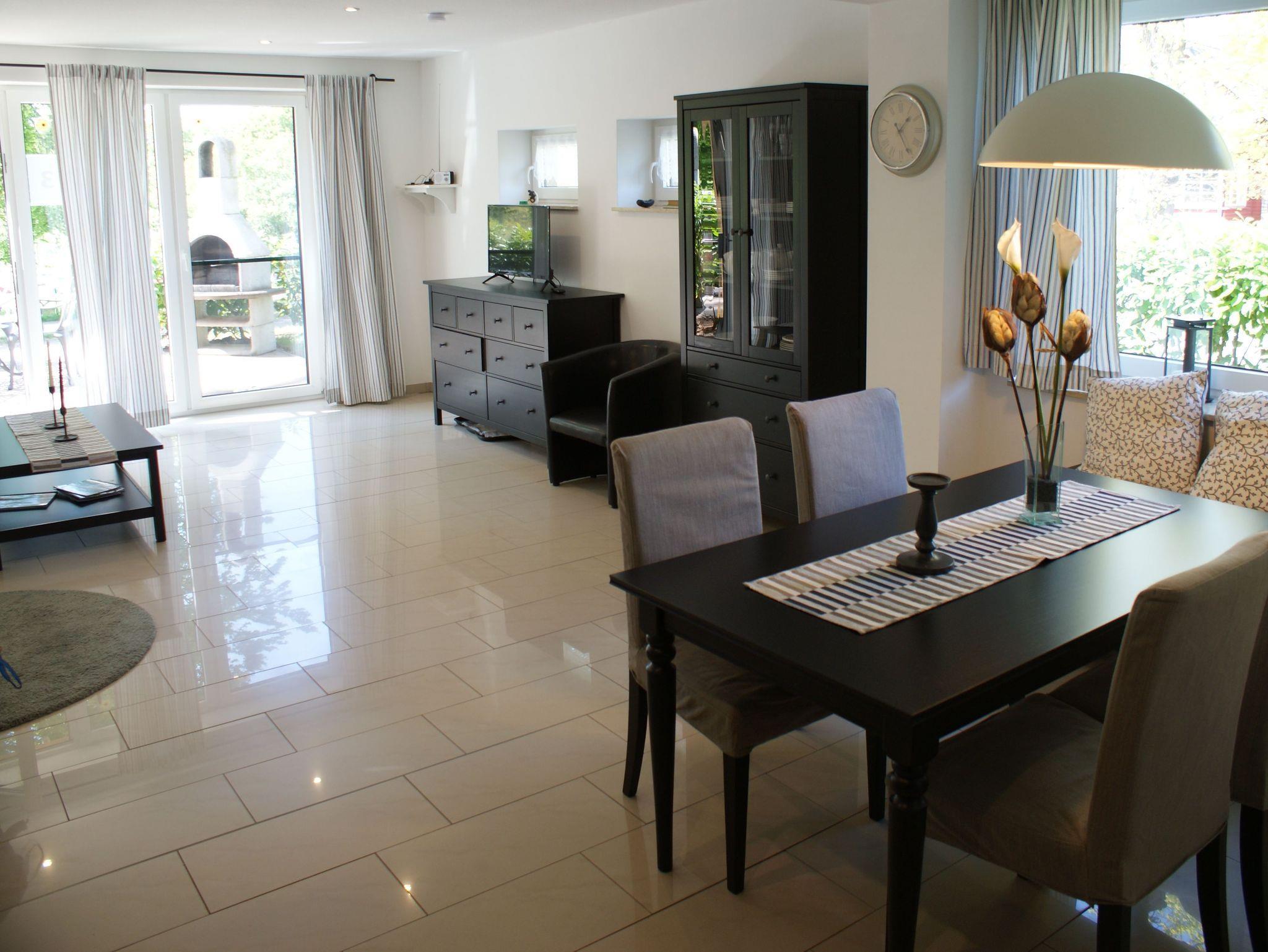 - Wohnzimmer mit Couch (mit Schlaffunktion für 2 Personen), TV, Radio, Essbereich für 4 Personen