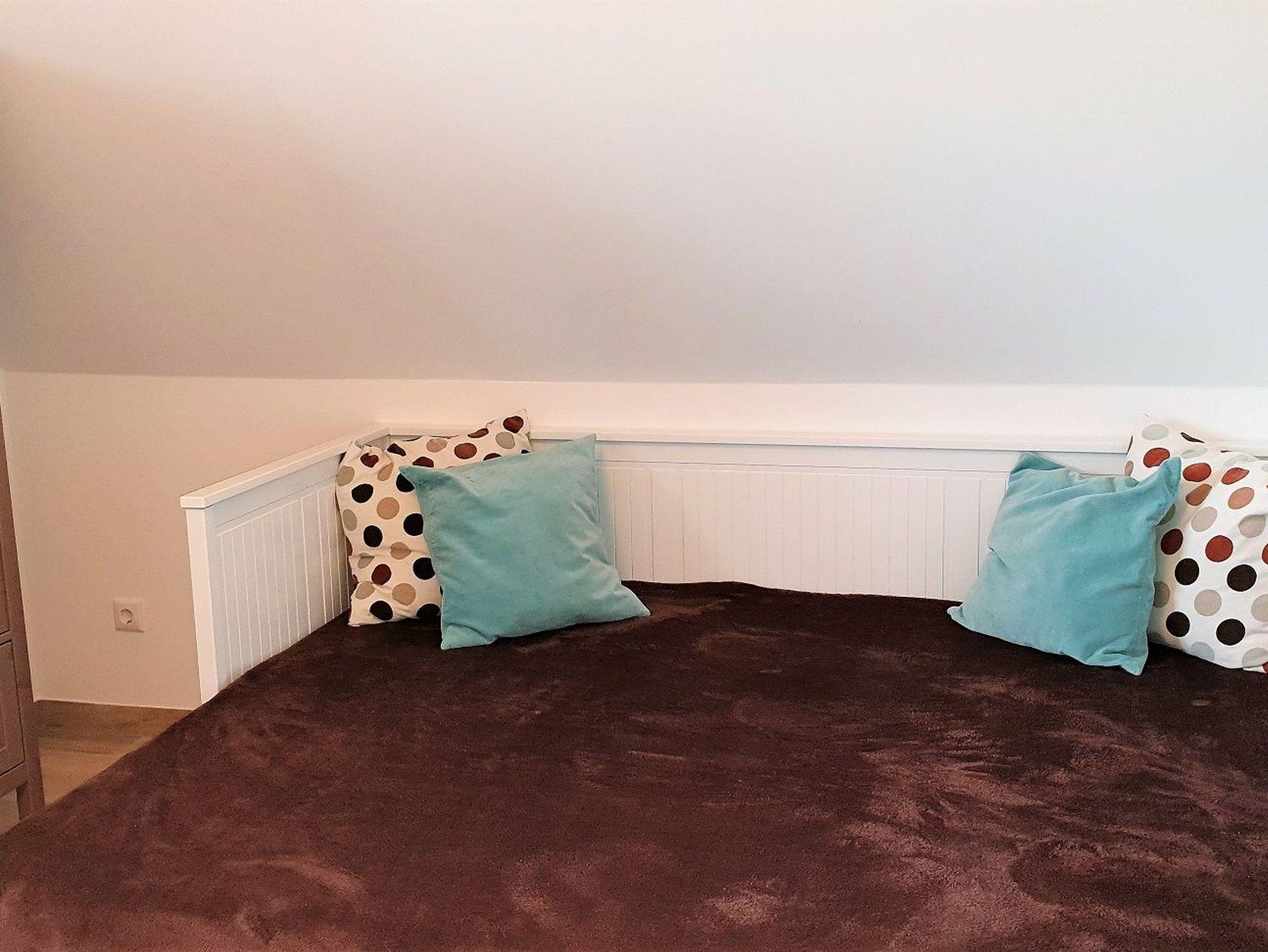 Das große 2m x 2m Doppelbett in Komforthöhe sorgt für erholsamen Schlaf.