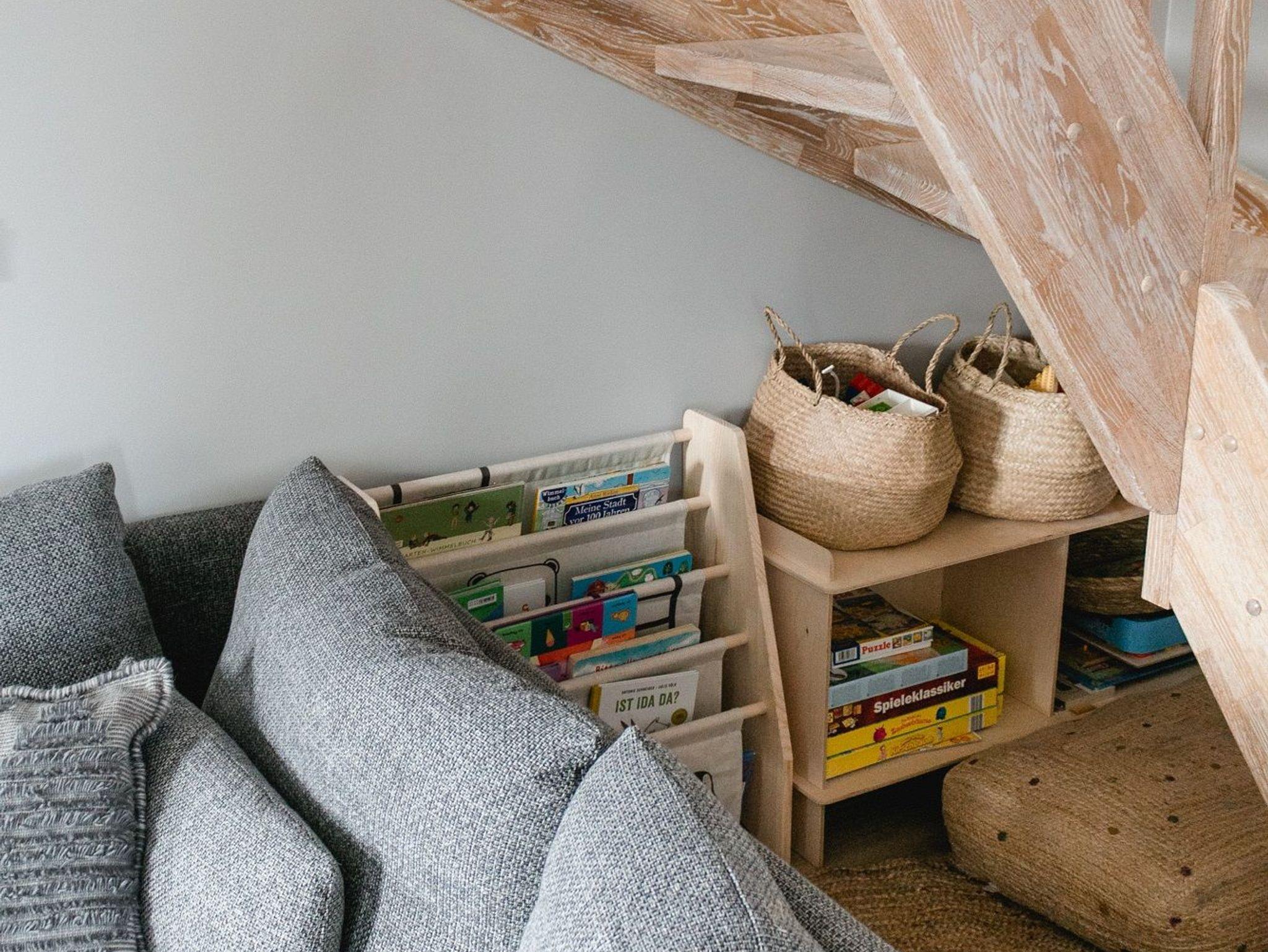 Besonders für unsere kleinen Gäste ist die liebevoll mit ausgesuchten Kindermöbeln eingerichtete Spielecke unter der Treppe ein ideales Versteck und bietet eine große Auswahl an Büchern, Puzzles, Spielen, Bauklötzen, Lego etc. für verschiedene Altersklassen. Auch Malbücher und Stifte sind vorhanden.