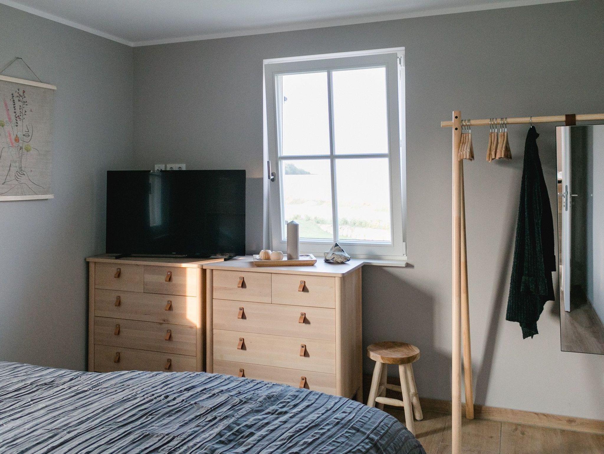Vom Wohnzimmer abgehend gelangen Sie in ein geräumiges Schlafzimmer mit traumhaftem Blick auf die umliegenden Felder. Hier können Sie aus dem gemütlichen 1,80m Doppelbett den Sonnenaufgang genießen. Das Schlafzimmer verfügt ebenfalls über einen Smart-TV mit Satellitenanschluss.
