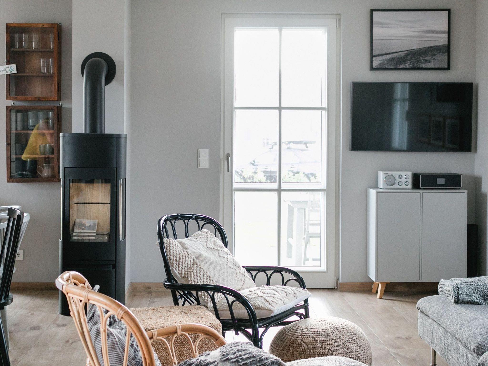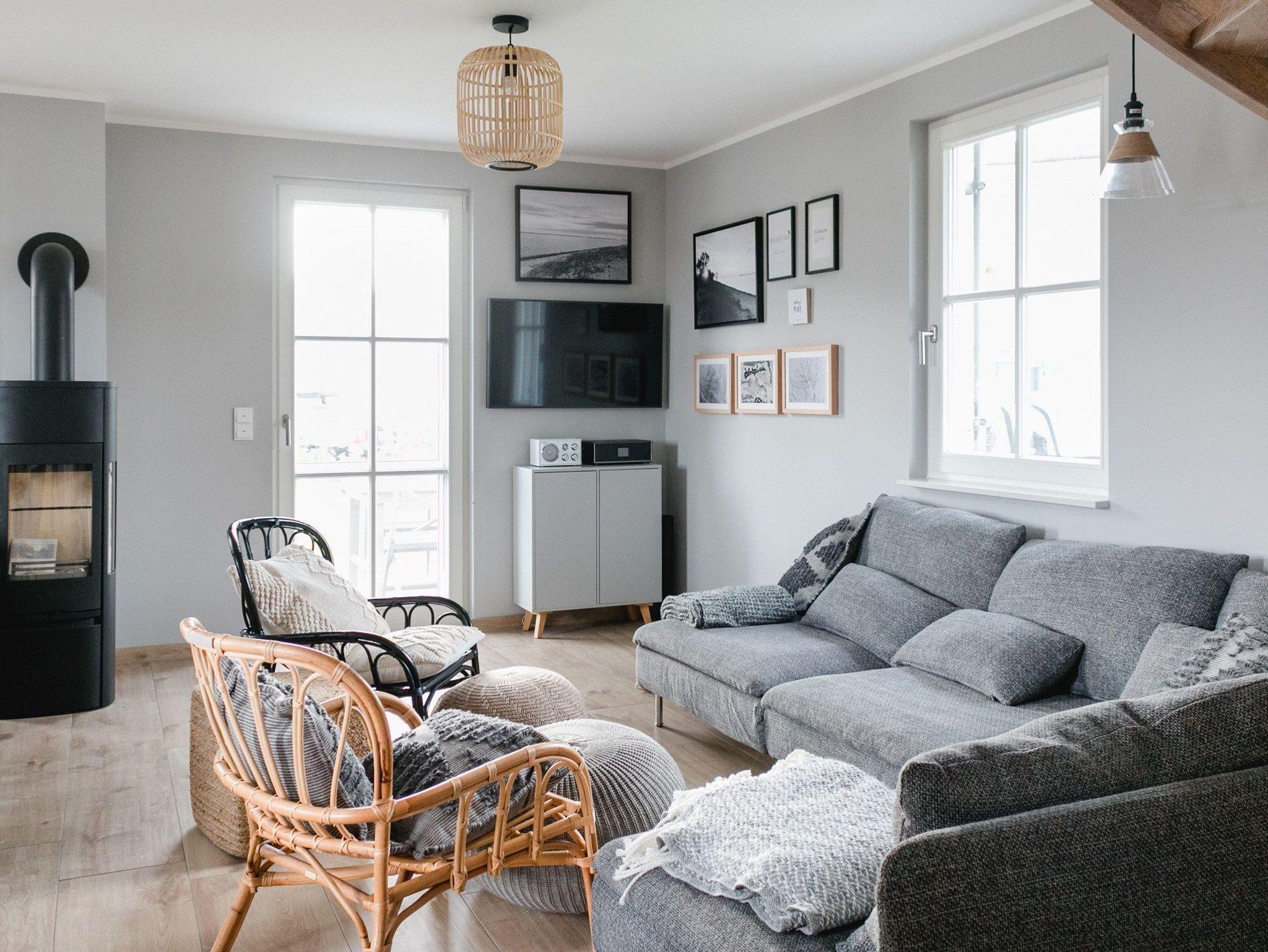 Der gemütliche Sitzbereich bildet mit einem großen Sofa mit extra Sitztiefe, bequemen Korbsesseln und Sitzpoufs die Basis für entspannte Abende. Smart-TV und Blue-Ray Player sind selbstverständlich vorhanden.
