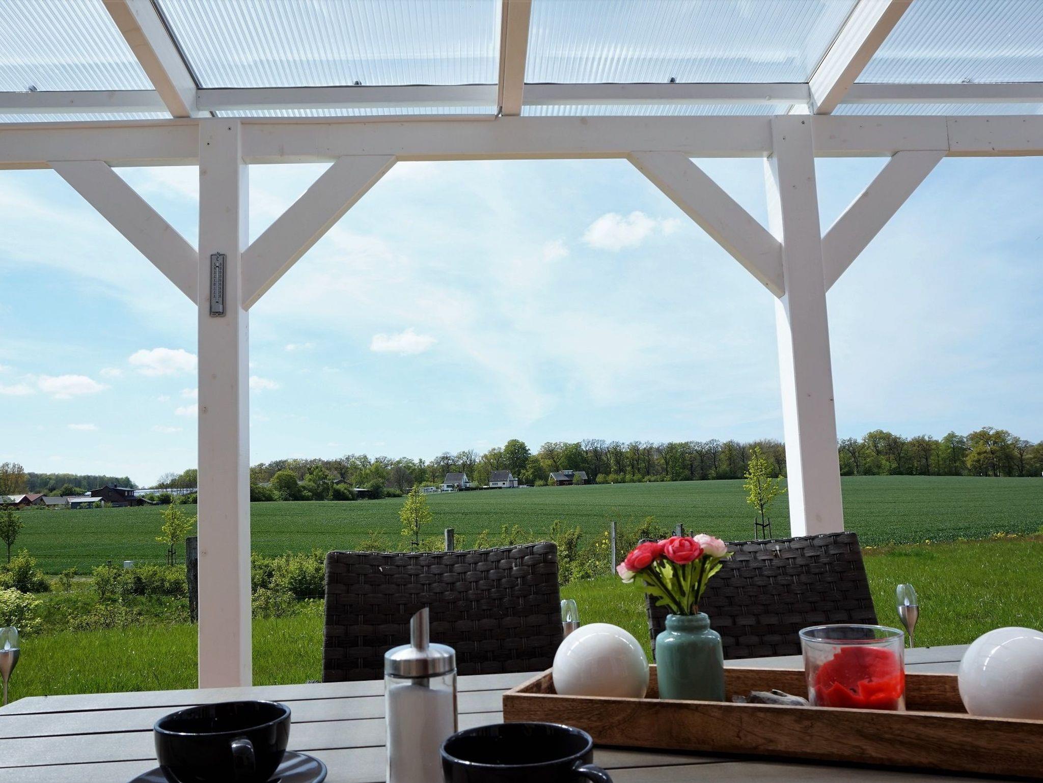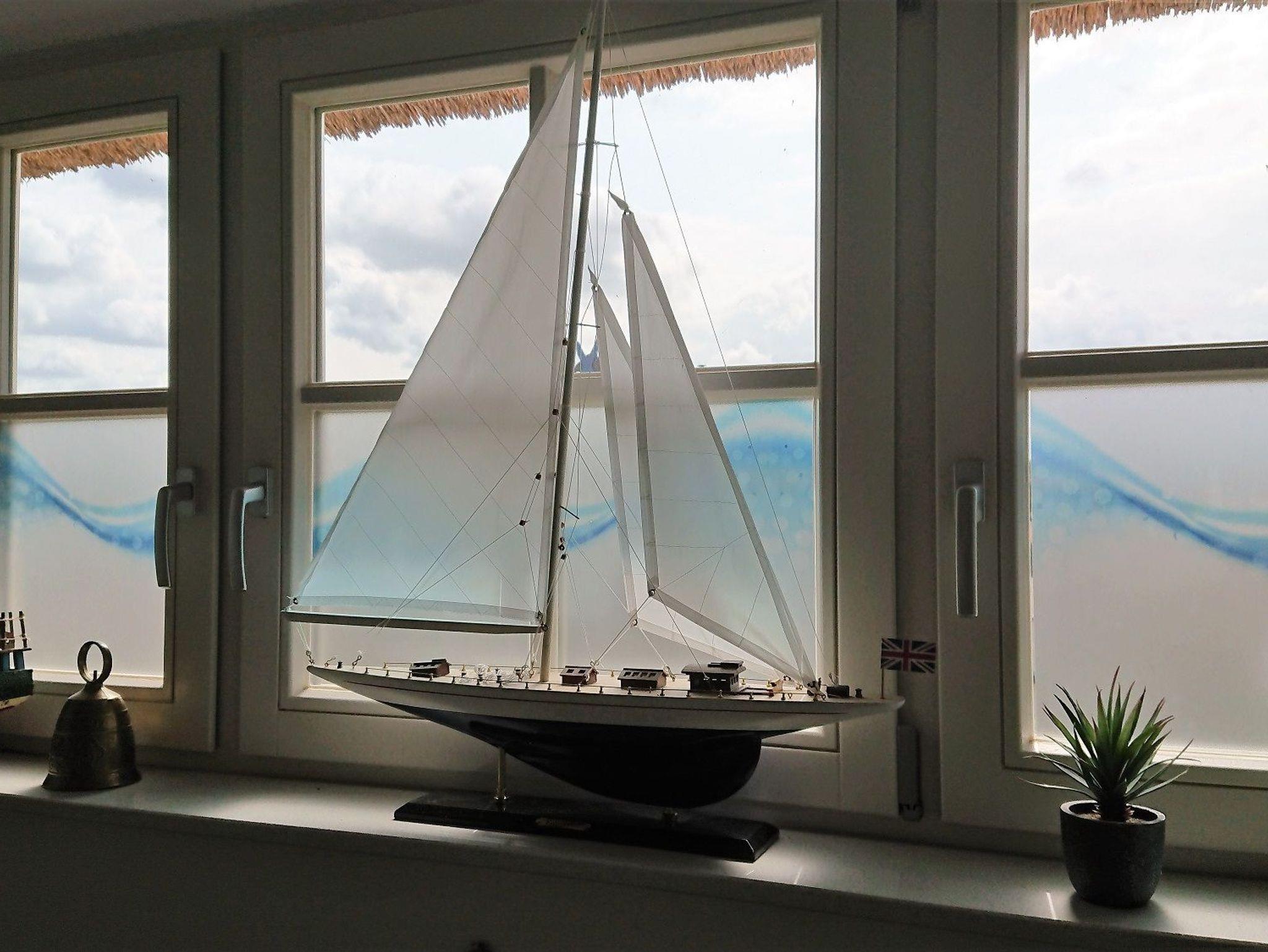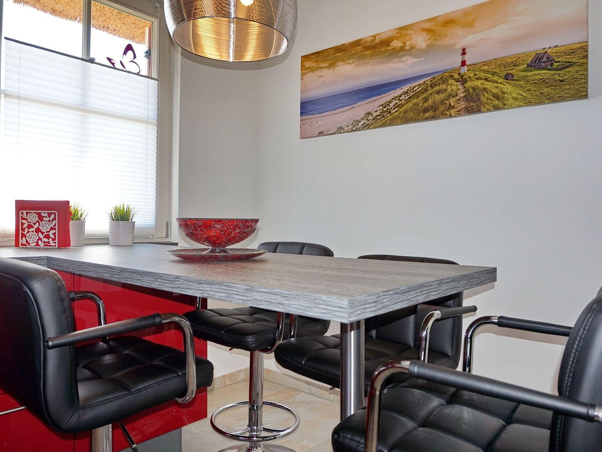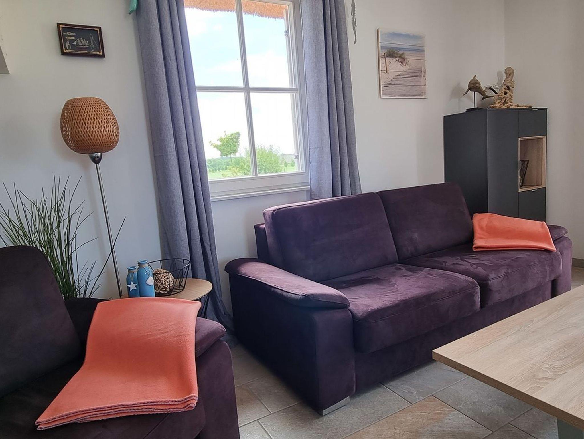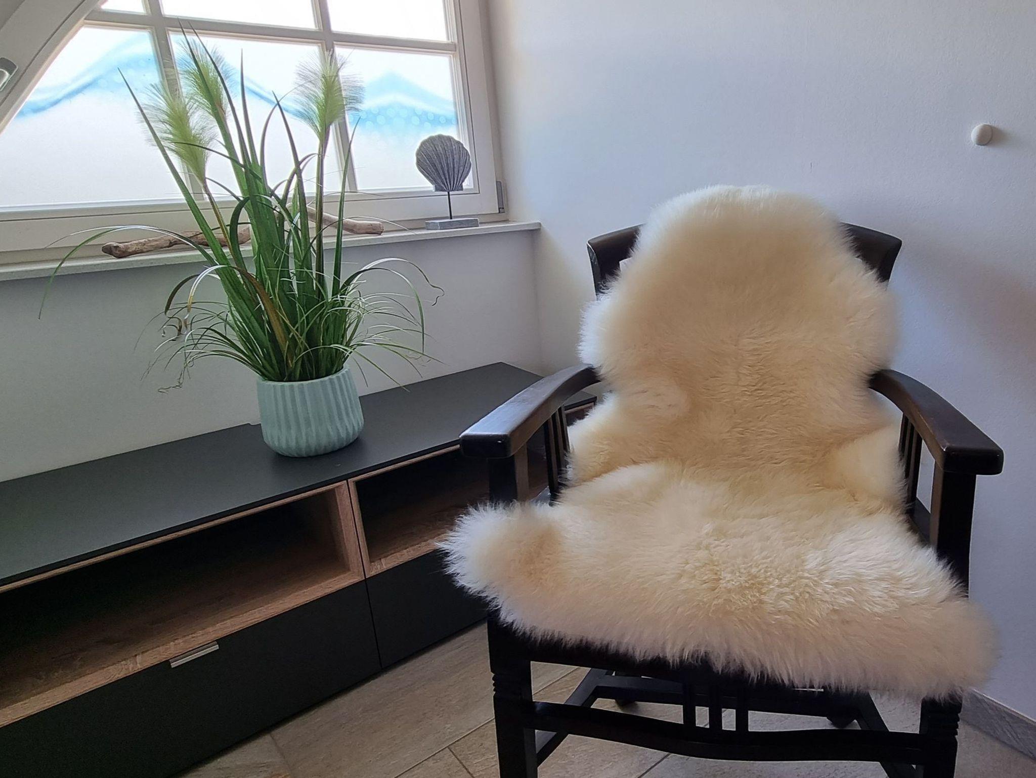 Das Ferienhaus Schwarze Perle befindet sich am Rand des Reethausgebietes De Poeler Drift im Erholungsort Zierow. Es ist modern und schick eingerichtet und bietet einen direkten Zugang zum Naturstrand über den Weg am Haus. Dies ermöglicht den Gästen, die Ruhe und Schönheit der Umgebung zu genießen. Die überdachte Terrasse bietet einen herrlichen Blick über die umliegenden Felder und Wiesen und lädt zum Entspannen in der Sonne ein. Die Einrichtung des Hauses ist gehoben und die separate Küche ist mit modernen Hochglanzmöbeln und Küchengeräten ausgestattet. Ein Essbereich mit Barhockern bietet eine gemütliche Möglichkeit, den Tag zu beginnen. Der großzügige Wohnbereich mit Zugang zur sonnigen Terrasse bietet viel Platz und ein Kamin sorgt für wohlige Wärme an kalten Tagen. Zwei große Sofas und ein Essbereich vervollständigen das farblich abgestimmte Ambiente des Raumes. Im gesamten Haus ist eine Fußbodenheizung verlegt. Im Erdgeschoss befindet sich auch ein zweites Bad mit Wellness-Dusche, WC und Sauna, ideal zum Entspannen nach einem langen Strandspaziergang. Im Obergeschoss gibt es zwei Schlafzimmer. Das sogenannte Kinderzimmer ist mit einem ausziehbaren IKEA-Kojenbett ausgestattet, das Platz für zwei Personen bietet. Das zweite Schlafzimmer verfügt über ein Boxspringbett, ausreichend Stauraum und einen Fernseher. Für Familien mit kleinen Kindern stehen ein Kinderreisebett und ein Kinderhochstuhl zur Verfügung. Auf Wunsch kann ein Wäschepaket dazu bestellt werden. Das helle und moderne Vollbad mit Badewanne und Echtglasdusche befindet sich zwischen den beiden Schlafzimmern. Alle Fenster sind mit Fliegengittern und Rollos/Vorhängen ausgestattet, um optimalen Schutz vor Insekten und Sonneneinstrahlung zu bieten. Für mitgebrachte Fahrräder steht ein Abstellschuppen zur Verfügung und zwei Parkplätze befinden sich direkt vor dem Haus.