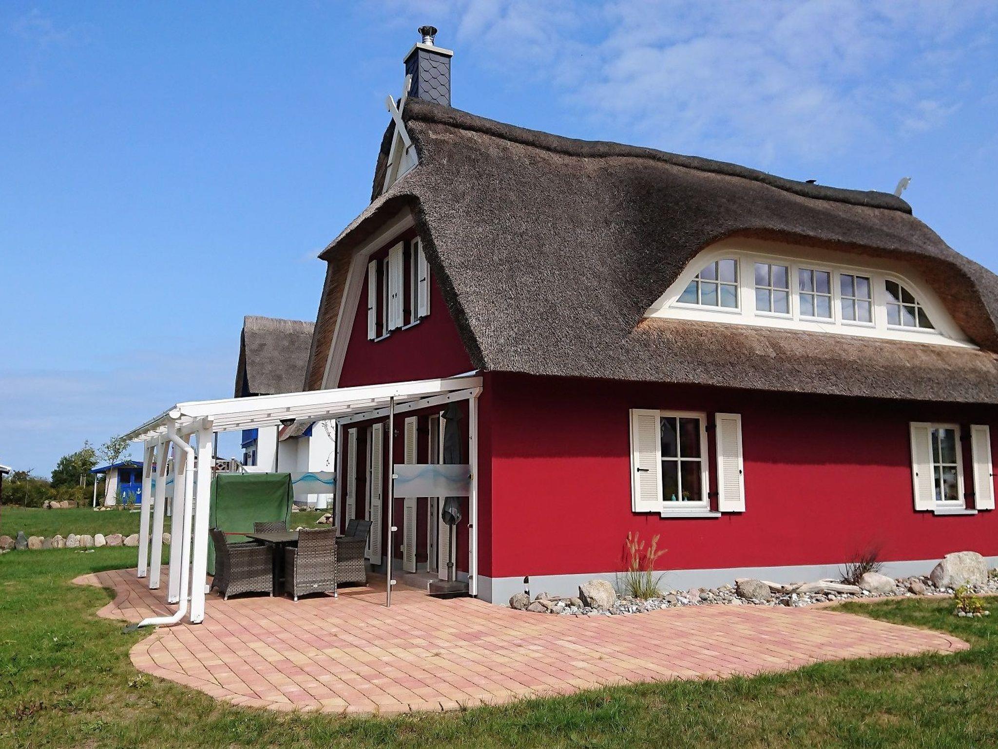 Modernes Reethaus Schwarze Perle in Zierow mit Sauna, Kamin und direktem Zugang zum Naturstrand.