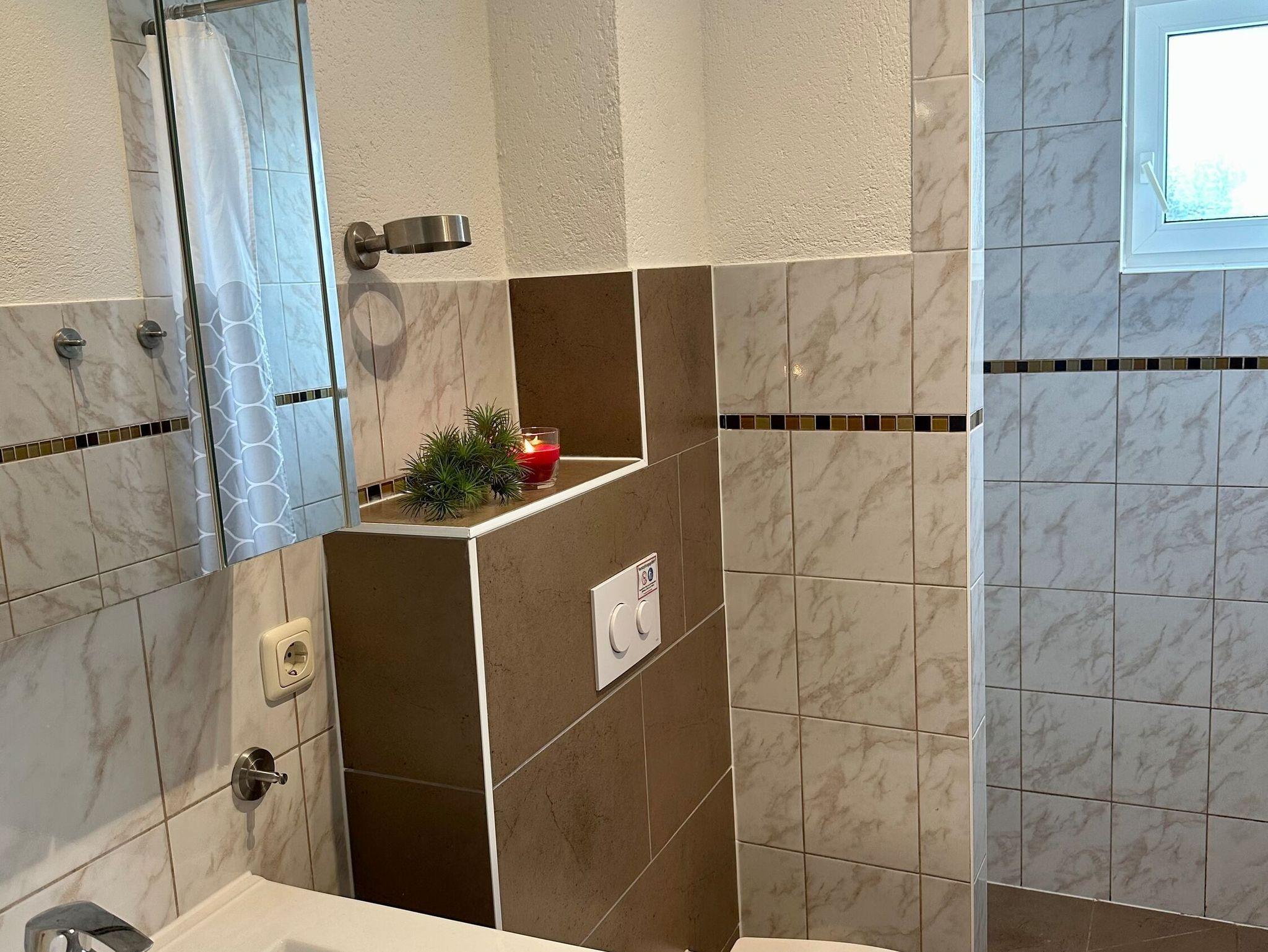 - Duschbad mit Dusche, WC, Spiegel, Ablage, Fön