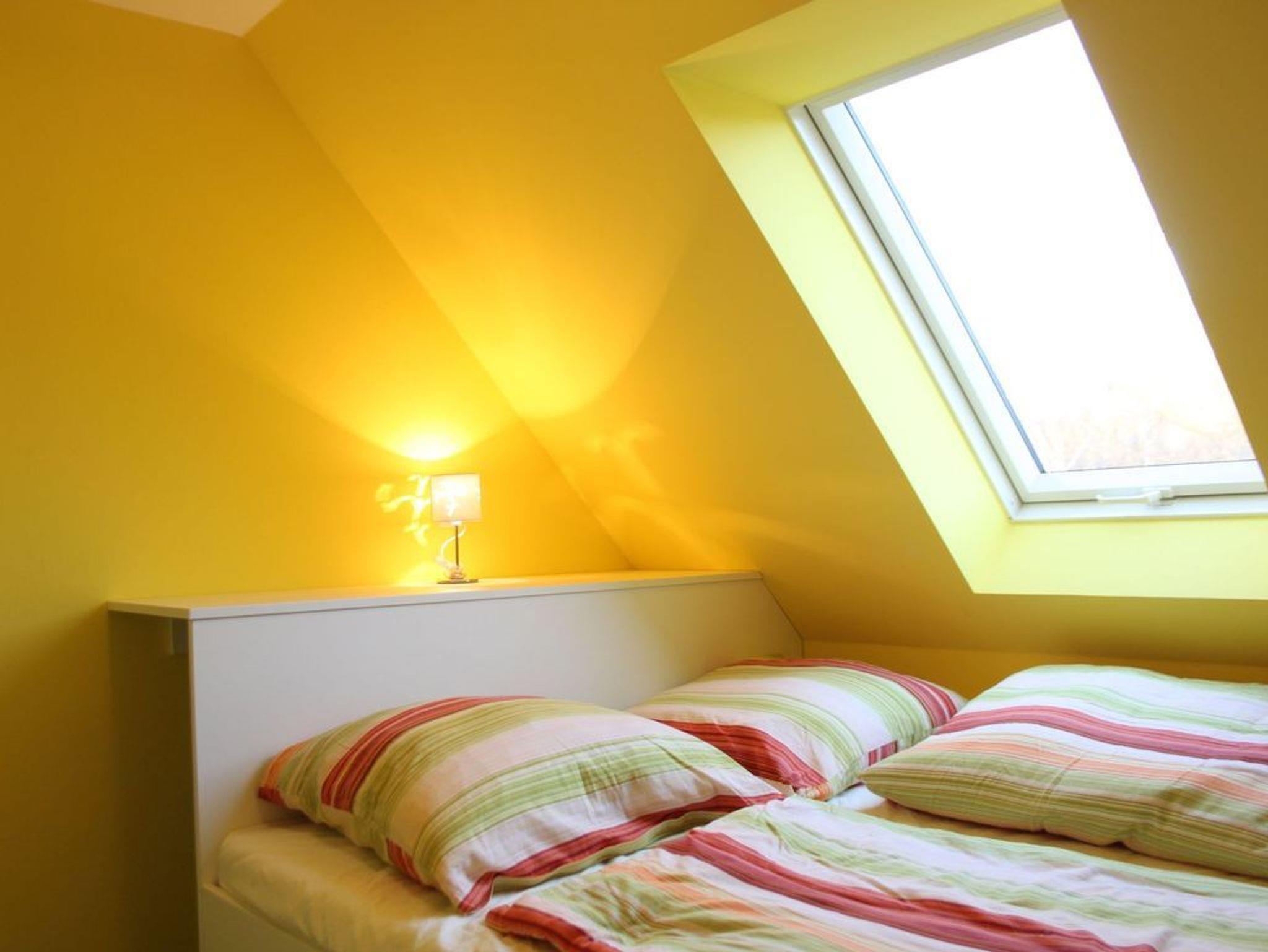 Das Schlafzimmer 01 bietet bis zu 3 Personen Platz. Ein Doppelbett (1,60 m x 2,00 m), gemütlich eingepasst unter einer Dachschräge lädt Sie zum Träumen ein. Die praktische eingebaute Nische hinter dem Bett bietet Stauraum für sperrige Koffer und Taschen und gleichzeitig eine Ablage für Ihre Abendlektüre. Darüber hinaus ist in diesem Schlafzimmer 1 noch Platz für 1 Kinderreisebett (im Haus vorhanden). Ein Schrank ist in diesem Zimmer nicht vorhanden. Genießen Sie gleich morgens den Blick durch das Dachliegefenster auf die angrenzenden Wiesen und Wälder, so kann einem guten Start in den Tag nichts mehr im Wege stehen.