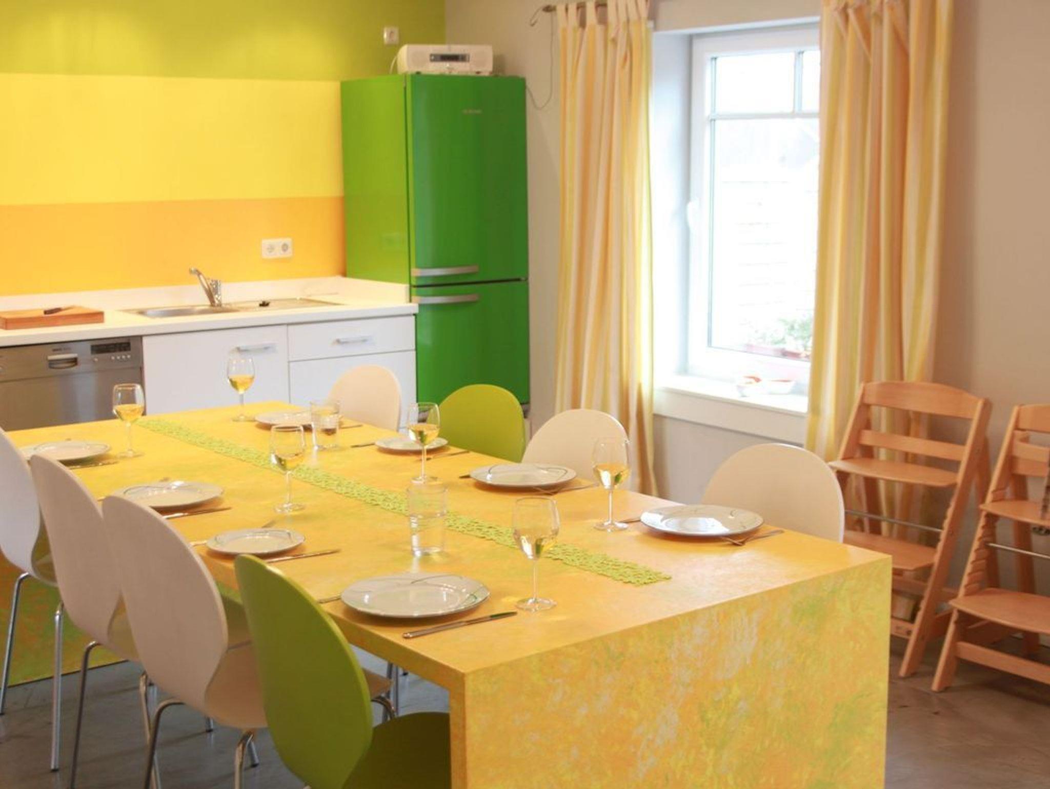 Die freundlich gestaltete Wohnküche lädt geradezu zum Kochen ein. Gemeinsam können die Mahlzeiten an der Küchenzeile zubereitet werden. Als Hilfsmittel stehen Ihnen ein Geschirrspüler, ein Kühlschrank, ein Gefrierfach,ein Herd, ein Backofen und zahlreiche Küchenutensilien für den täglichen Bedarf zur Verfügung. Schmecken lassen können Sie es sich dann alle gemeinsam an dem großzügigen Esstisch, welcher bis zu 9 Personen bequem Platz bietet. Darüber hinaus sind im Ferienhaus Ole zwei Kinderhochstühle und ein Kindertisch mit 2 Stühlen für die kleinen Urlauber vorhanden.