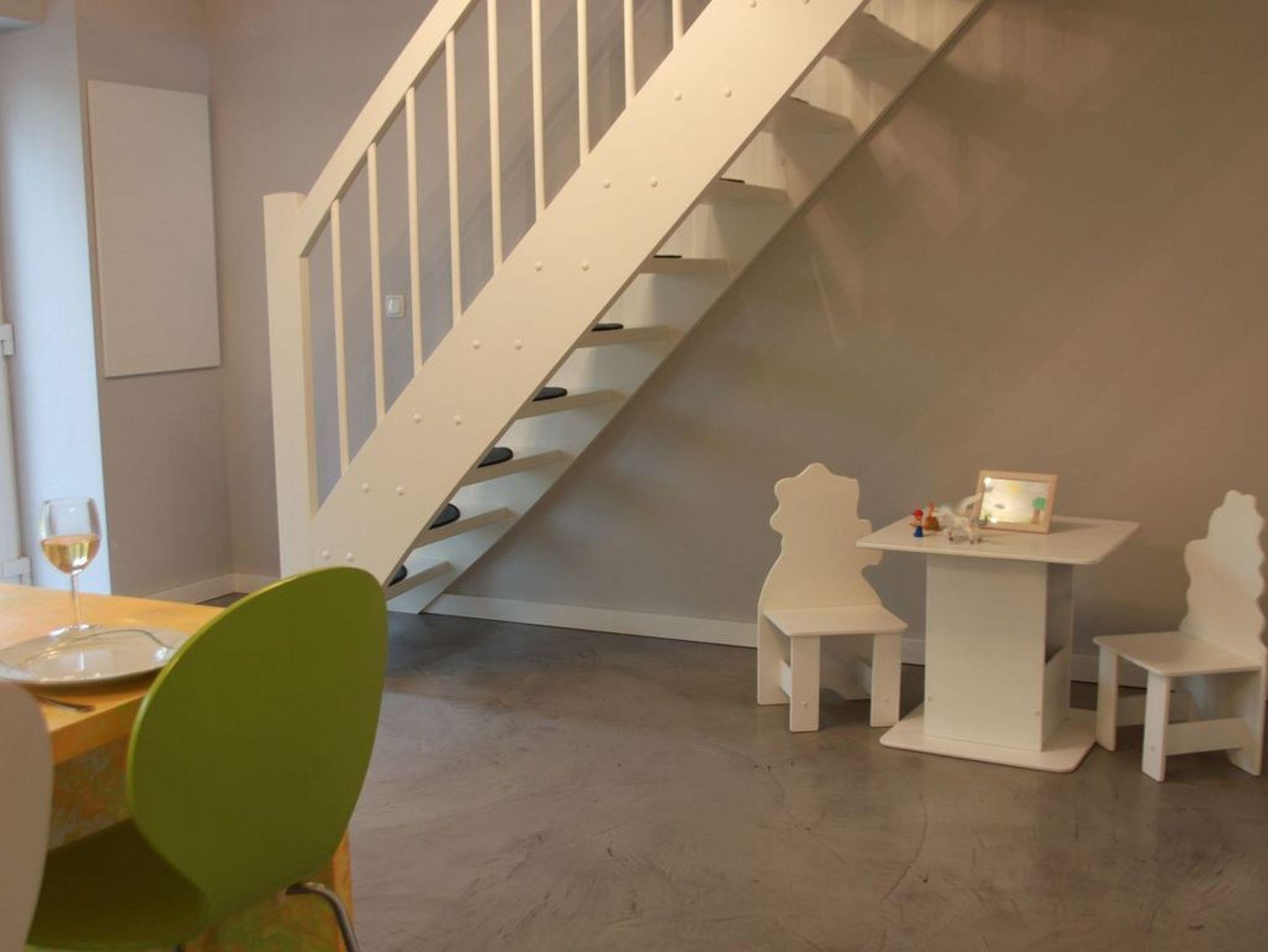 Unter der Treppe, die in das Obergeschoss führt haben wir eine Kinderspielecke eingerichtet. Hier können die Kinder malen, basteln und spielen.