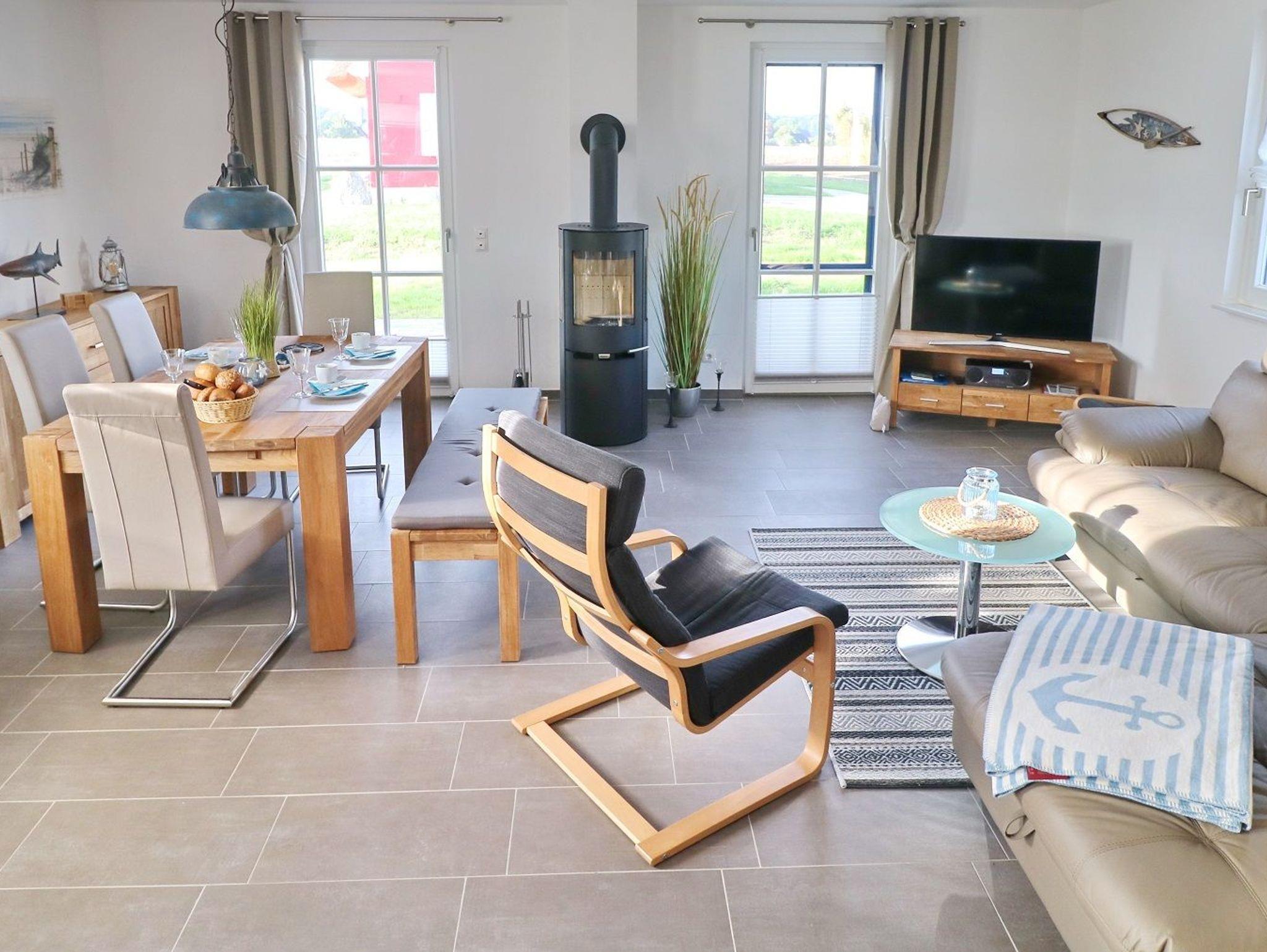 Modernes Reethaus Koje 15 in Zierow mit Sauna, Kamin und großem Garten für entspannte Familienferien.