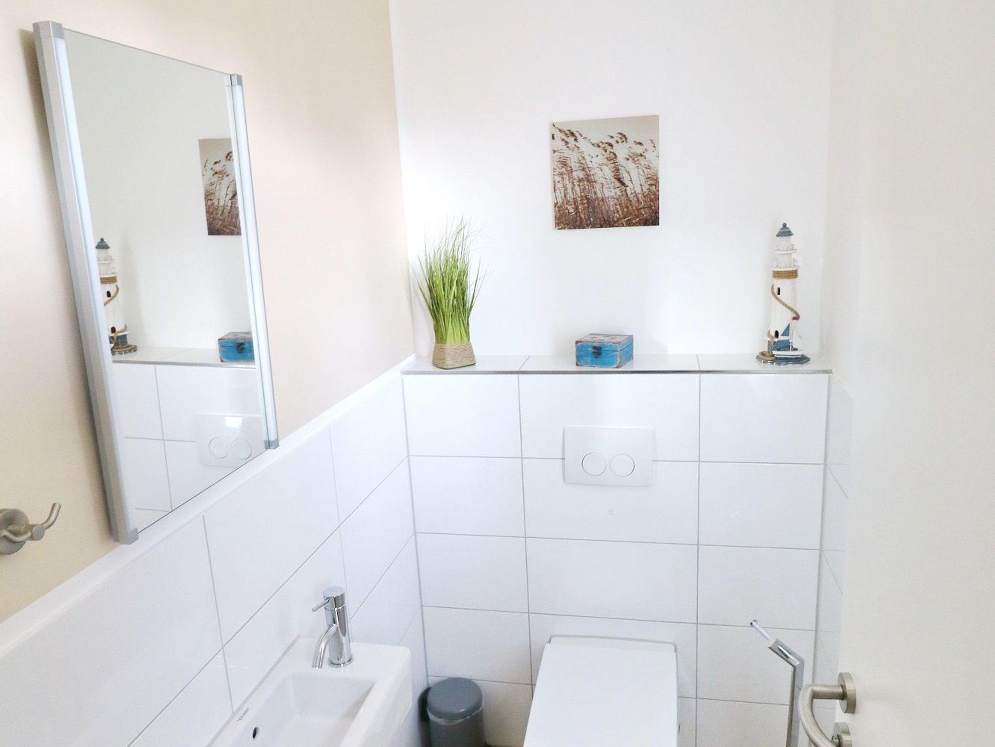 Im großen Wohn- und Essbereich befindet sich die modern ausgestattete integrierte Küche, der Essbereich und die Sofalandschaft direkt am Kamin. Eine Fußbodenheizung ist im gesamten Haus verlegt. An kalten Tagen können Sie nach einem langen Spaziergang oder Radtour in der Sauna mit Wellnessdusche relaxen. Ein Gäste-WC mit Tageslicht befindet sich ebenfalls im Erdgeschoss. Der Hauswirtschaftsraum ist mit einem Waschtrockner ausgestattet.