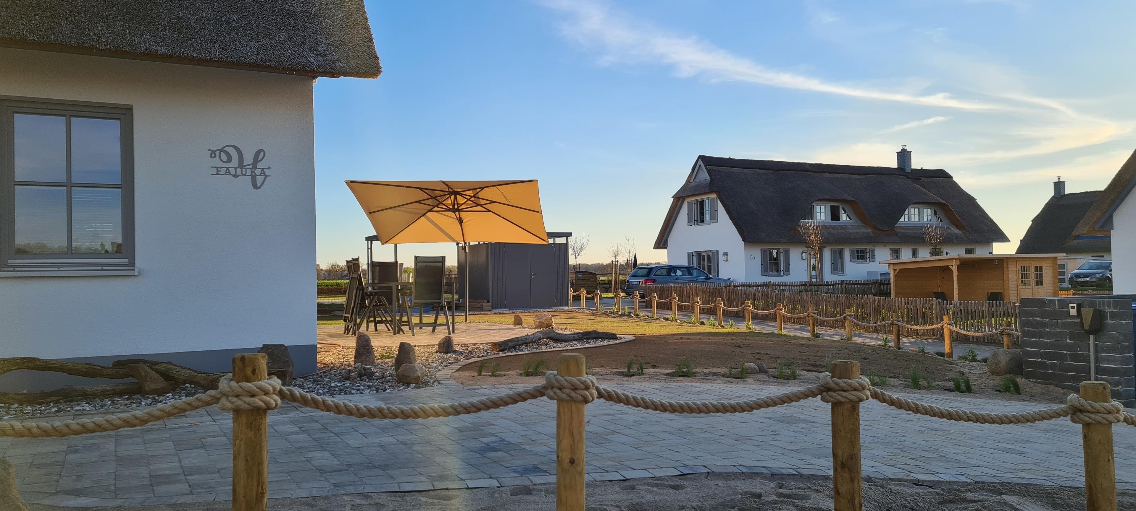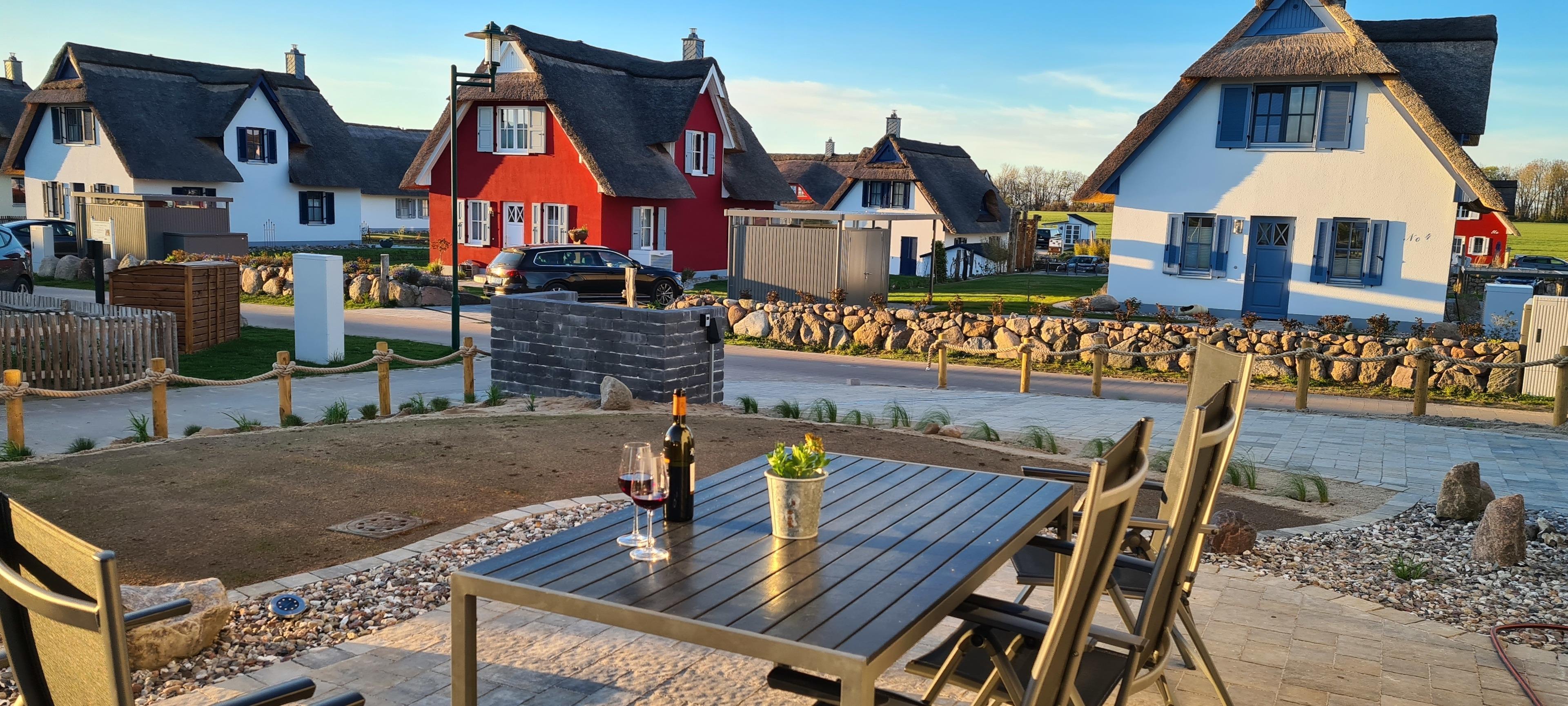 Charmantes Reetdachhaus bei Zierow an der Ostsee mit moderner Ausstattung und Terrasse, ideal für Familienurlaub.