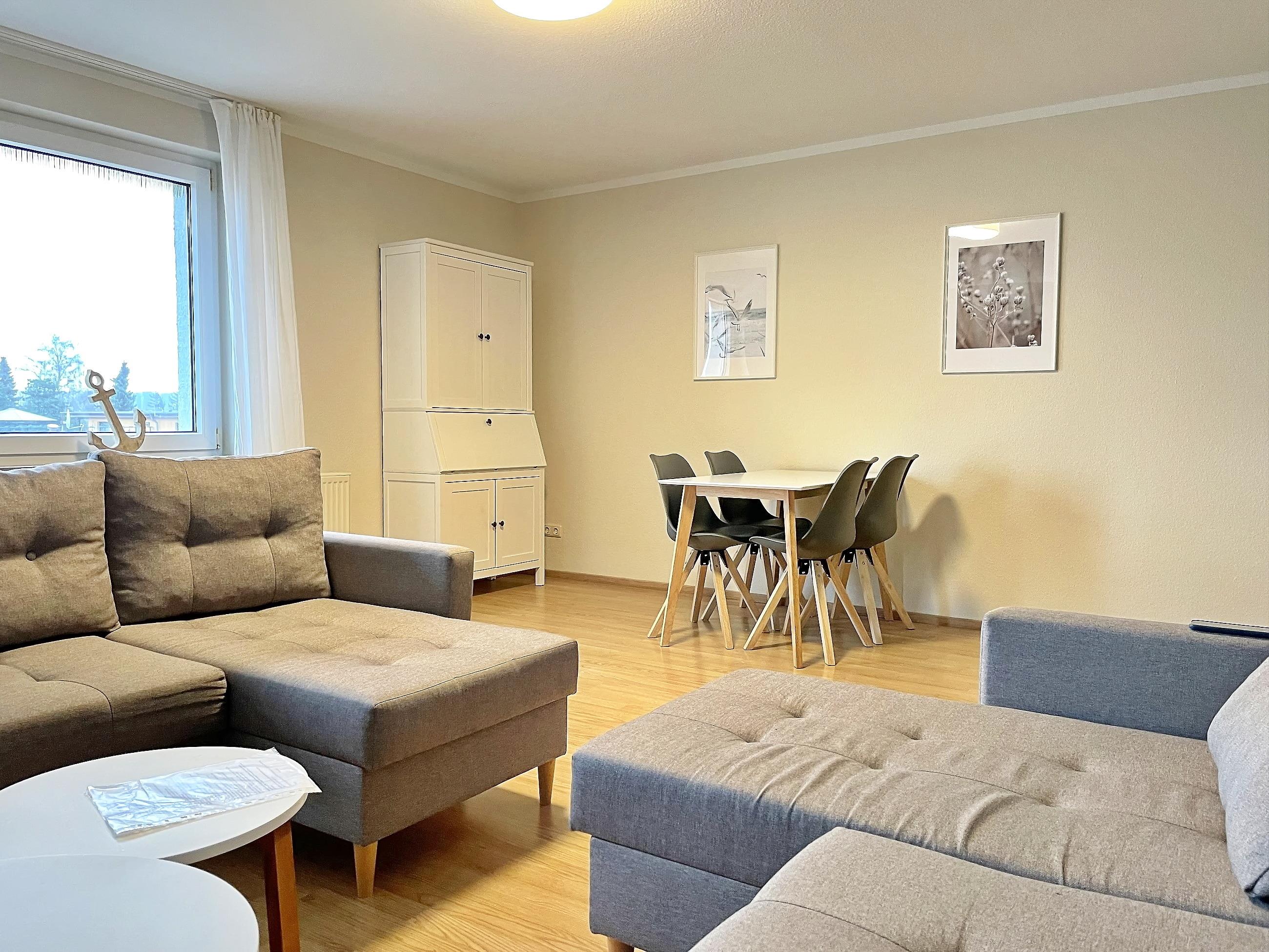 Unsere Ferienwohnung Meerblick - WE 33 (98qm) liegt im 1. Obergeschoß eines Apartmenthauses. Vom möblierten Balkon aus können Sie den traumhaften Blick auf das Meer, bis zur Insel Poel, genießen. Das große Wohnzimmer, mit Balkonzugang, hat eine gemütliche Sitzecke, von wo aus man ebenfalls auf die Ostsee blicken kann. Das Apartment hat 2 Schlafzimmer ( 1 x mit Doppelbett, 1 x mit zwei Einzelbetten ). Ein Kinderreisebett und ein Kinderhochstuhl sind ebenfalls vorhanden. Ein Flachbildfernseher und eine Musikanlage sorgen für Unterhaltung. Die separate Küche wurde 2016 komplett erneuert und ist vollständig eingerichtet: Kühlschrank, Tiefkühlfach, Cerankochfeld, Backofen, Geschirrspüler, Mikrowelle, Kaffeefilter- / Kaffeepadsmaschine, Toaster, Wasserkocher und komplettes Geschirr. Sie hat eine großzügige Sitzecke in der man gemütlich beim Essen zusammen sitzen kann.