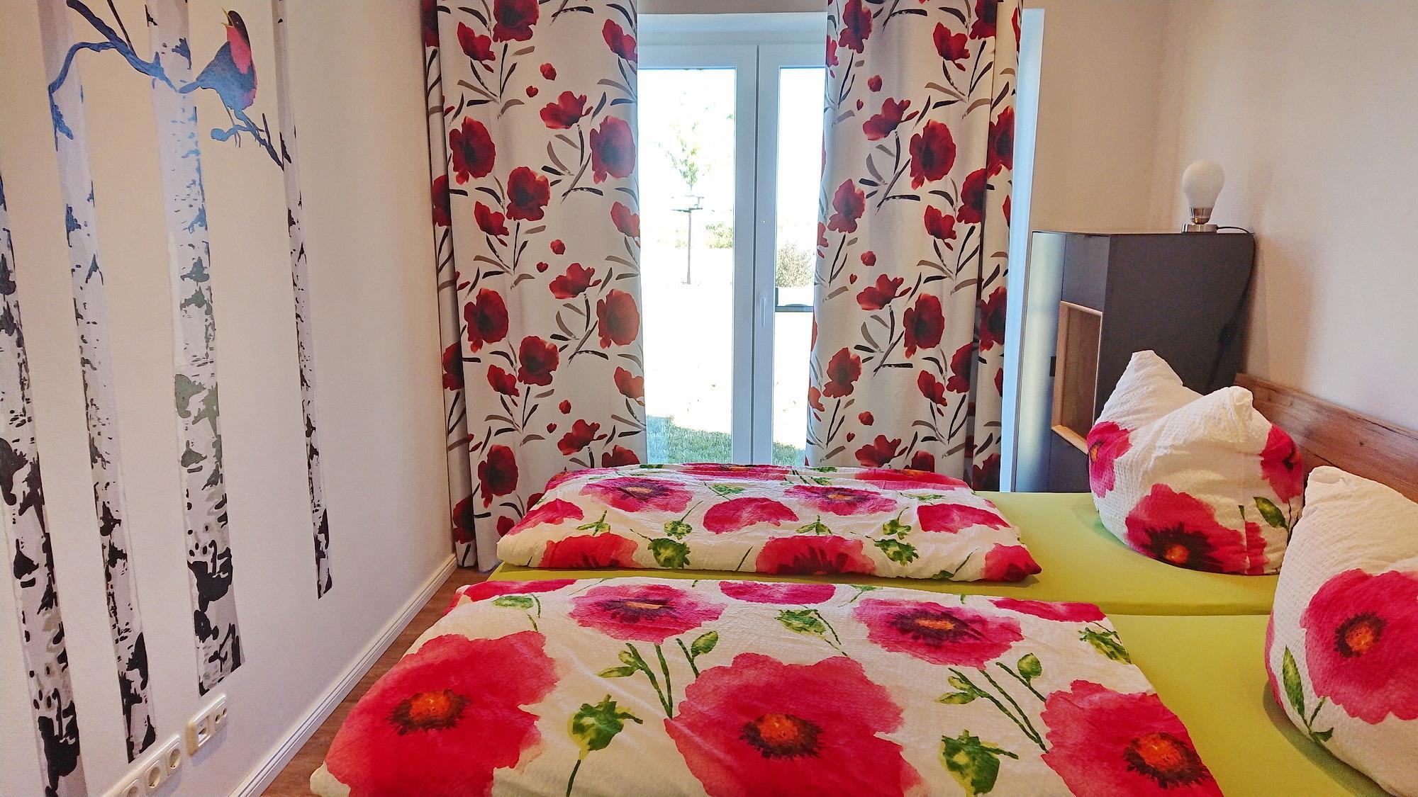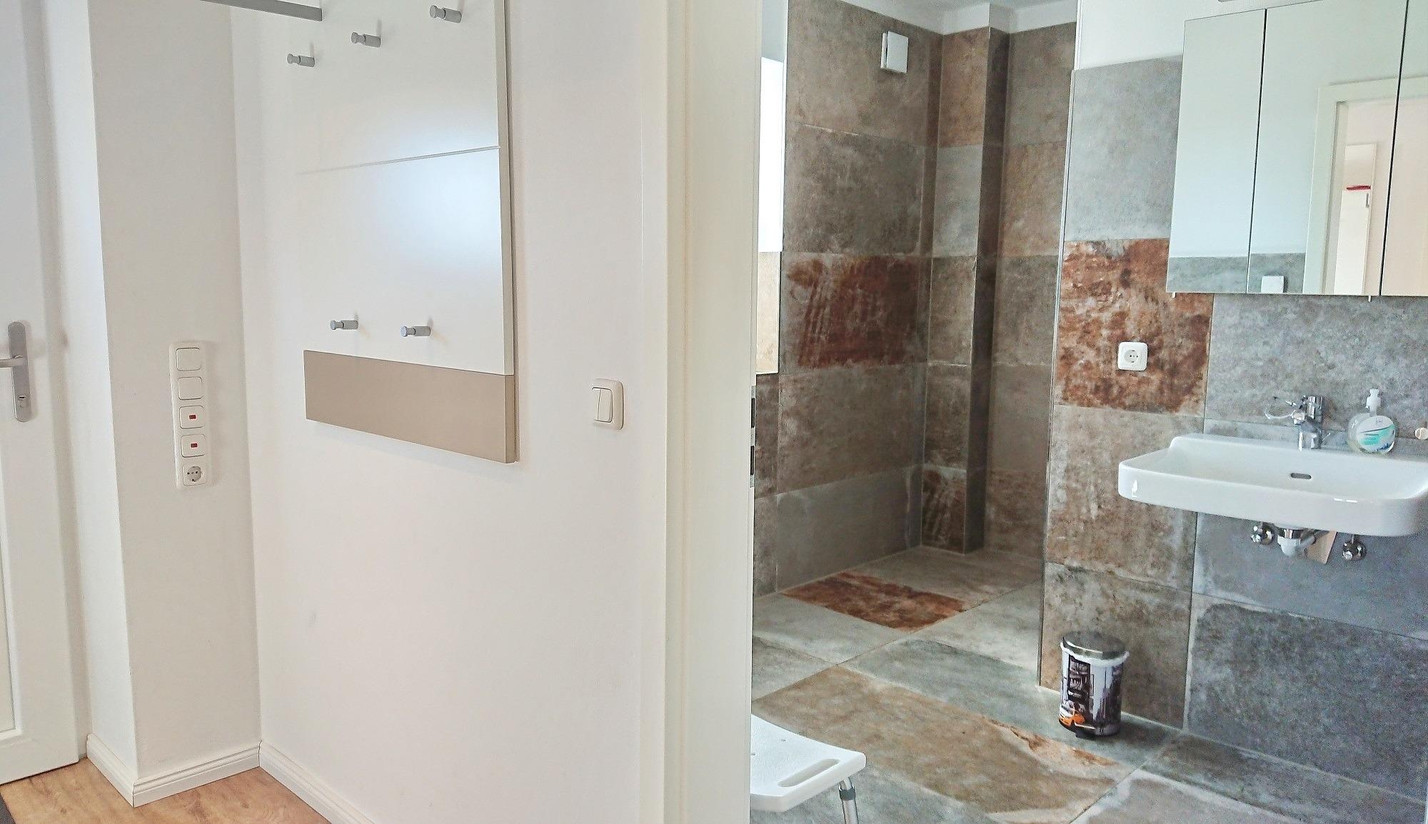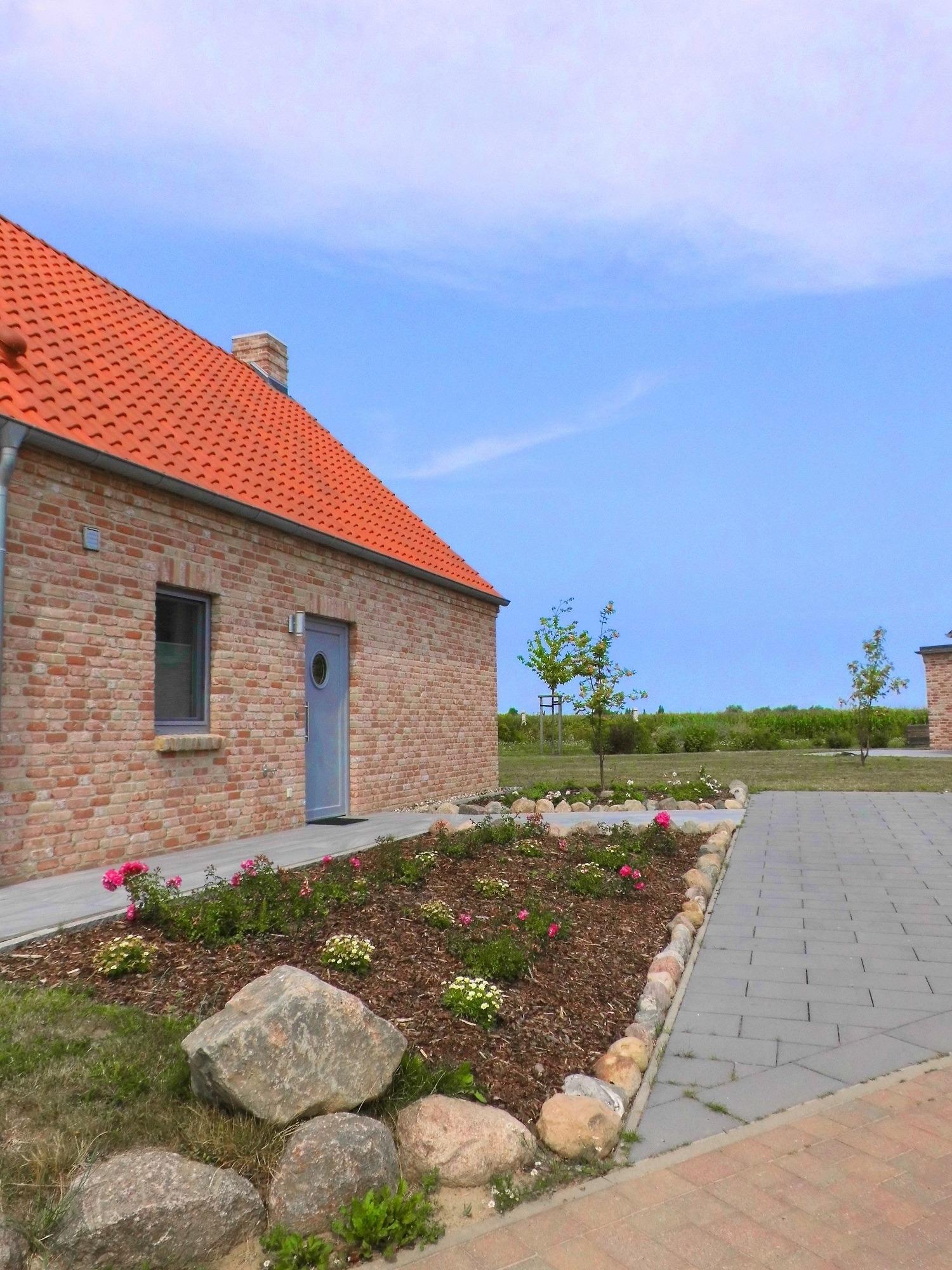 Das im Dezember 2016 fertiggestellte Ferienhaus "Fantasie" bietet auf 104 qm eine hochwertige Ausstattung mit 3 Schlafzimmern, 2 Bädern und einem großzügigen Wohn-Essbereich mit integrierter Einbauküche. In allen Räumen befinden sich Insektenschutzgitter und Fußbodenheizung (Erdwärmepumpe). Das behindertengerechte Erdgeschoss gibt auch einem gehbehinderten Familienmitglied die Möglichkeit, das Ferienhaus zu nutzen. Die Zimmertüren haben hier eine Durchgangsbreite von 94 cm, das Doppelbett (180 x 200 cm) im Schlafzimmer ist auf einer Seite mit einem separaten elektrisch höhenverstellbaren Lattenrost (Einlegerahmen "Lippe IV" der Firma Burmester) ausgestattet und kann bequem von einem Rollstuhl (kein E-Rollstuhl) oder Gehwagen angefahren werden. Das große Badezimmer verfügt über einen unterfahrbaren Waschtisch, eine 130 cm breite barrierefreie Dusche und ein WC mit einem Wandgriff auf der einen und einem schwenkbaren Griff auf der anderen Seite. Der Küchentisch im Wohn-Essbereich ist ebenfalls unterfahrbar. Die Einbauküche ist hingegen nicht behindertengerecht ausgestattet.