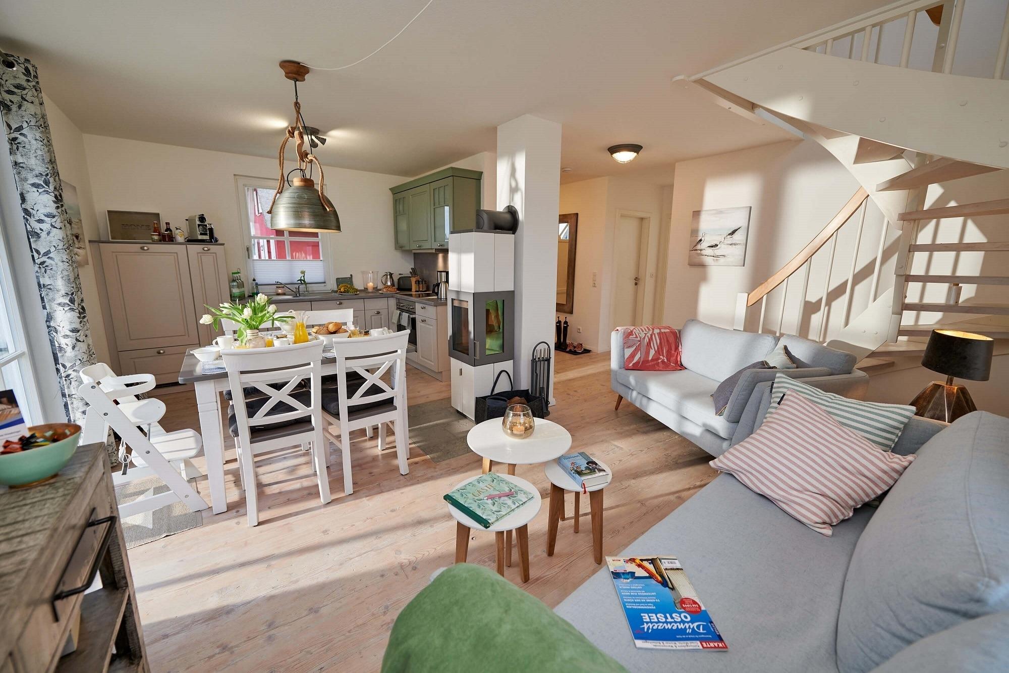 Der massive schwedische Echtholzfußboden und liebevoll ausgesuchte Details bestechen durch Ihre Einzigartigkeit. Die Küche ist modern mit vielen Extras ausgestattet und das von allen Seiten sichtbare Kaminfeuer bringt gerade an kälteren Tagen eine wohlige Stimmung ins Haus.