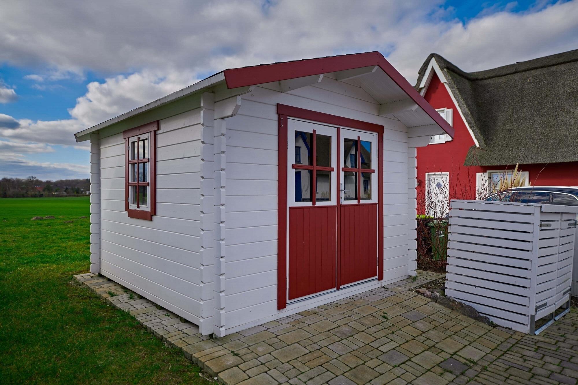 Im abschließbaren Schuppen befindet sich ein StandUpPaddle und eine Elektrogrill von Weber zur Nutzung.